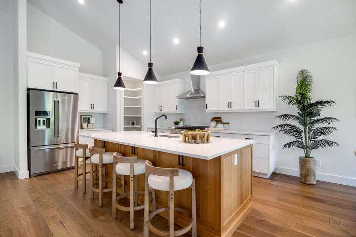 The current list price reflects a $100,000 price reduction. This thoughtfully designed 4-BR, 3-Bath, 3 Car Garage residence combines modern comfort with timeless craftsmanship. The vaulted ceilings create a sense of spaciousness and light that is perfectly complemented by engineered hardwood floors.(See More..)