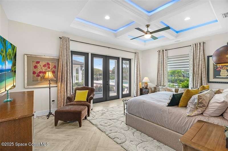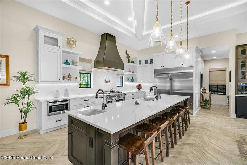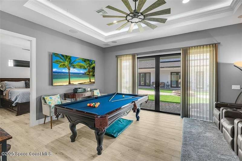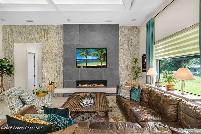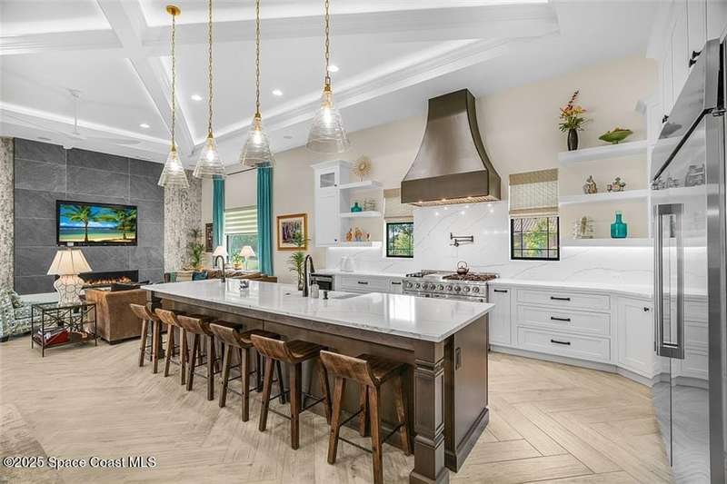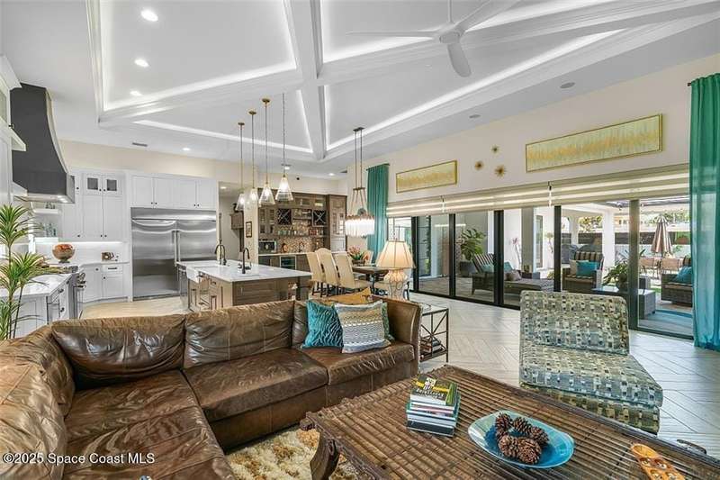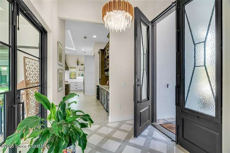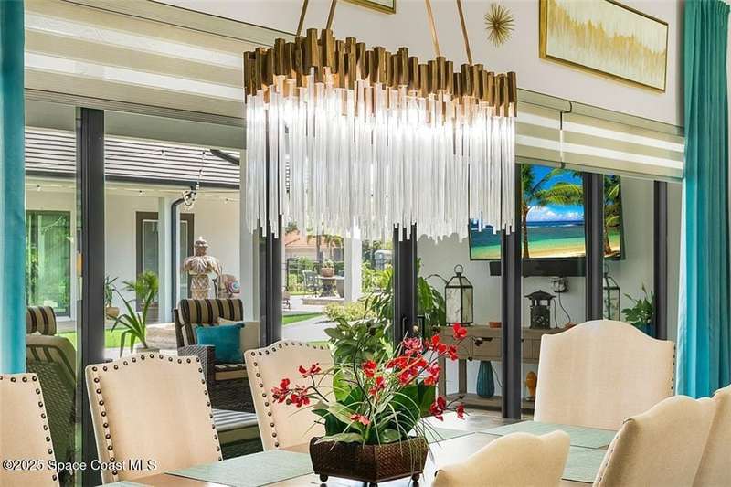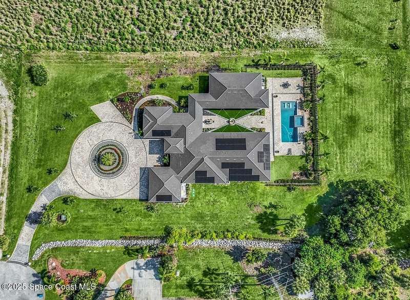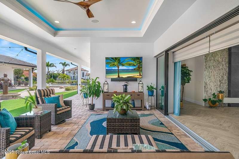 West Indies-style estate on 1.61 acres in Merritt Island! This custom home offers a chef's kitchen with 12-ft island, hidden pantry, wet bar, and luxury finishes. Main house has the primary suite and a private in-law suite with a separate 2-bedroom casita and game room. Solar heated saltwater pool and spa, EV charger, 3-car garage, high impact windows, trey ceilings, and three zoned Sonos audio system. Partial Banana River views, smart lighting, and expansive courtyard create the perfect indoor-outdoor lifestyle. Ideal for entertaining or multigenerational living. RMSZAPP/SUB2ERR.
