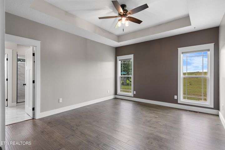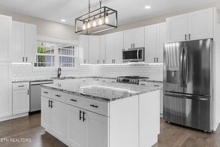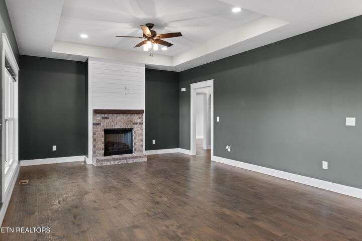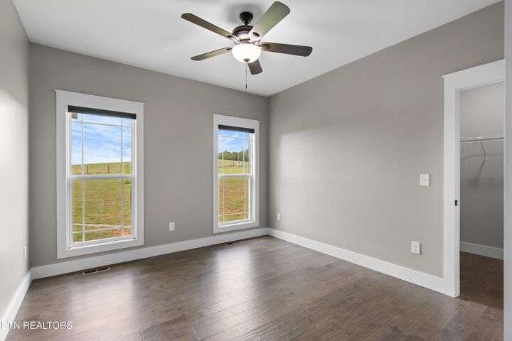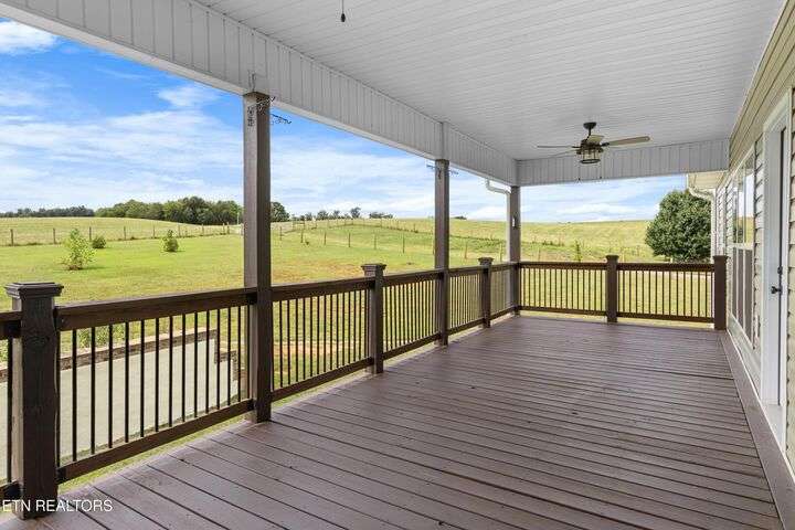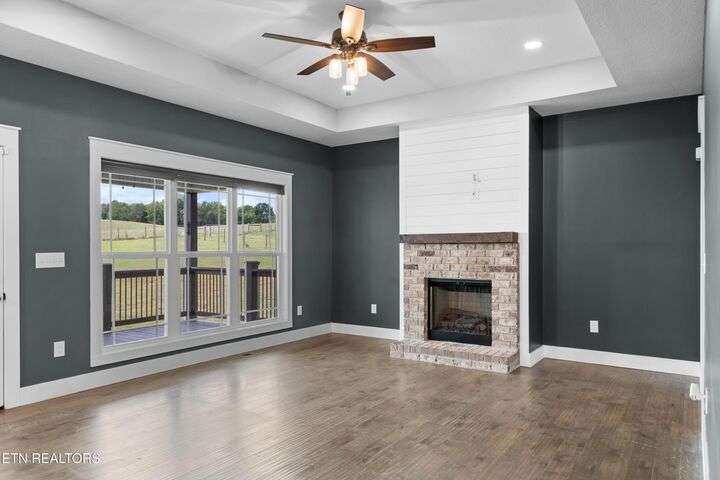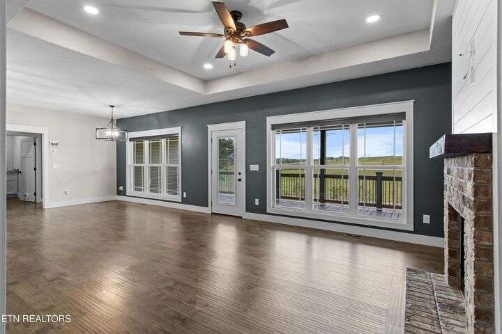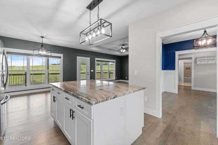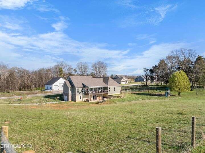 Luxury Living Without the HOA Fees - Craftsman Basement Rancher on a Double Lot Set on a desirable double lot totaling 1.63 acres, this 4 bedroom, 3 bathroom, 3254 sq ft, Craftsman-style basement rancher offers timeless design, modern convenience, and unmatched space—all in the sought-after Lakeside Meadows community and with no HOA fees. Eligible buyers may also take advantage of an assumable VA loan at just 4.65%—a valuable opportunity in today's market. The open-concept main level is ideal for both everyday living and entertaining. A tray ceiling and striking floor-to-ceiling brick gas fireplace with shiplap detail provide a warm yet elegant focal point in the living room. Just off the foyer, a versatile flex room can serve as a home office, dining room, or study. The gourmet kitchen shines with stainless steel appliances, a gas range, soft-close cabinetry, and an oversized marble-granite island that offers abundant workspace, storage, and seating. The Owner's Suite is a relaxing retreat, complete with a tray ceiling, spacious walk-in closet, and spa-inspired ensuite featuring dual vanities, a tiled shower, and sleek Euro glass door. Two additional bedrooms—each with walk-in closets—share a well-appointed bathroom with dual vanities and tiled tub/shower combo. A laundry room with built-in cabinetry, utility sink, and included washer and dryer makes daily living easy. Step outside to the expansive covered porch and enjoy wide-open countryside views with no backyard neighbors—perfect for quiet mornings, sunset evenings, or hosting friends. The finished basement adds over 1,200 sq ft of flexible space, ideal for a media room, in-law suite, or multi-generational living. Built on a poured-wall foundation, this level also includes a covered patio for outdoor enjoyment. Additional highlights include a whole-home Generac generator, security system, two-car main-level garage, plus a separate one-car basement garage—great for a workshop, extra storage, or a boat. Recent interior updates, including fresh paint, enhance the move-in-ready appeal. With 1.63 acres, the double lot offers extraordinary opportunities—whether for added privacy, a guest home, large garage, or future plans. Located just minutes from Tellico Lake, golf, marinas, shopping, and restaurants—with easy access to I-75, Maryville, Turkey Creek, and McGhee Tyson Airport—this home blends peaceful living with everyday convenience. Schedule your private showing today and experience the value of a double lot in East Tennessee.