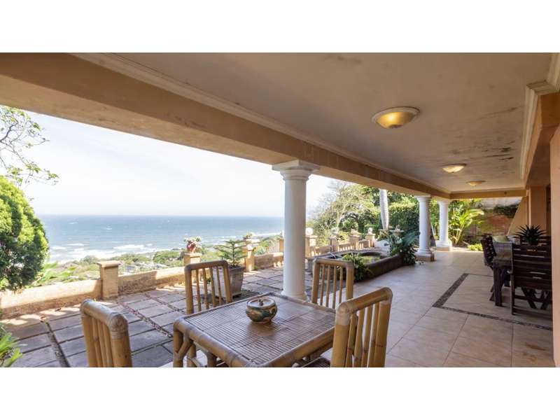 Immerse Yourself in Panoramic Ocean Vistas from this Sprawling 4-Bedroom Haven Wake up to the endless azure embrace of the ocean, beckoning from your private sanctuary. This expansive home, perched on a generous stand, offers unparalleled ocean views from every turn, inviting you to soak in the breathtaking beauty of nature. Upstairs, four sun-drenched bedrooms await, each framing the mesmerizing seascape through their private sunrooms. The master suite boasts a walk-through wardrobe that lead to a full en-suite bathroom, your personal oasis of tranquility. Three additional bedrooms, nestled comfortably together, share two well-appointed bathrooms, ensuring everyone enjoys privacy. Downstairs, generous living areas invite you to gather and connect. A spacious dining area, lounge, and formal sitting room flow seamlessly, all bathed in natural light and ocean breezes. Sliding doors open onto a vast covered patio, where the breathtaking views continue, becoming the backdrop for alfresco gatherings and endless moments of relaxation. The heart of the home beats in the well-equipped kitchen. Adjacent pantry space keeps everything organized, while a conveniently located guest loo adds practicality. This excellent property further offers a fully self-contained flatlet which could be an income earner, or comfortably accommodate guests. A double carport and ample storage space cater to your everyday needs, and the expansive stand provides endless possibilities for extensions and improvements, be it a sparkling pool, lush gardens, or a deck to maximise the views available. This is more than just a home; it's a canvas for your dreams, painted with the vibrant hues of the ocean and bathed in the golden glow of endless possibilities. Come, claim your slice of paradise and let the rhythm of the waves guide you to a life of serenity and wonder.