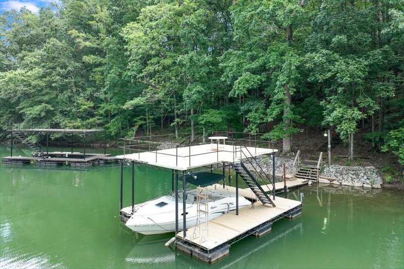 Experience tranquility and the feeling of a daily vacation in this warm and inviting lakeside home with a private, single slip dock with a party deck. Welcome to this beautifully maintained 3 bedrooms, 4 baths lake home with 2 covered decks, a finished basement, new roof (2025), gorgeous landscaping, and peaceful lake views where your dream, lakefront lifestyle becomes a reality. The charming gourmet kitchen features a slate floor, granite countertops, custom cabinetry, an island with a maple countertop and bar sink, a 4 burner gas range with griddle, a cozy breakfast area, and a roomy pantry, making it a chef's delight. The adjacent dining area provides the perfect setting for both intimate family dinners and festive gatherings with friends. The family room invites relaxation with its cozy stone gas fireplace, built-ins, and doors that open onto a covered wrap around deck-perfect for summer barbecues, and outdoor entertaining. The main level also boasts a luxurious primary suite with 2 spacious closets, a spa-inspired ensuite bath with a 5 head shower, an elegant, clawfoot soaking tub, and a custom window. An additional guest bedroom and adjoining full bath will comfortably accommodate weekend guests or family. Upstairs, a full bath and a versatile flex area provides ample space and storage for family, guests, or a home office. The finished basement offers even more living area, additional office space, along with a convenient, large laundry room, full bath and a second covered deck. The double car garage contains a work bench and shelving for tools and hobbies. The outdoor living spaces are truly exceptional. A stone and timber lined path leads to your private single slip dock with a party deck, including power, where endless adventures await. The shoreline has been enhanced with rip rap. You're enjoy the peace of the quiet cove. Once the day is over and you're making your way to your lake home, you'll appreciate that the path is lit with solar and electric lighting. You'll love to gather around the firepit area as you relive the memories of the day. Thoughtfully landscaped gardens burst with color throughout the seasons, while mature trees offer shade and privacy. Life on Lake Lanier is about embracing a lifestyle of relaxation, recreation, and connection. Spend your days swimming, fishing, or boating to the nearby restaurants. Host unforgettable gatherings on your deck, or enjoy quiet evenings by the fire. Whether you're seeking a year-round residence, a seasonal retreat, or a legacy property for generations to come, this lakefront home is your perfect math. New Gangplank on order for dock. Boat is negotiable with strong offer. Schedule a private tour today.