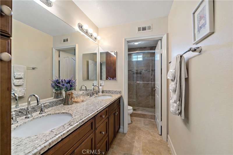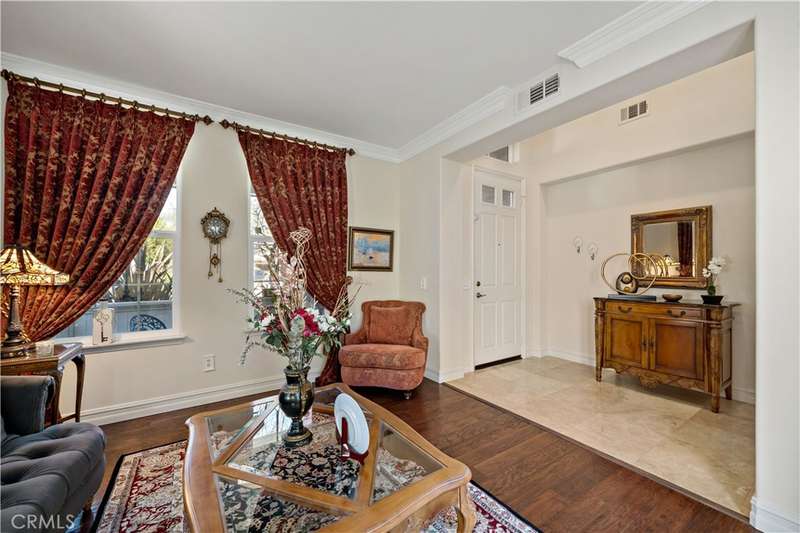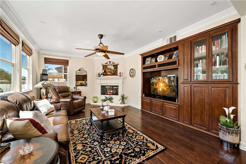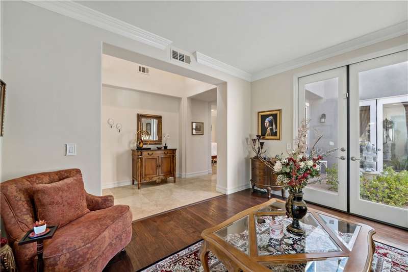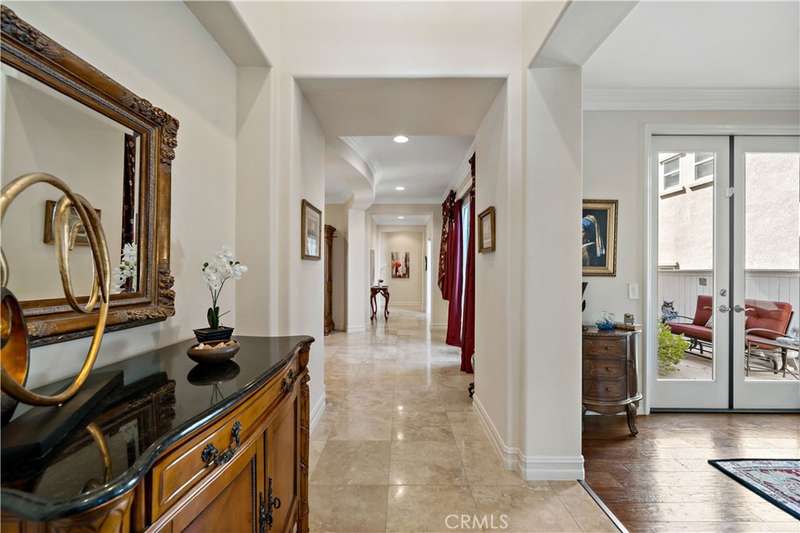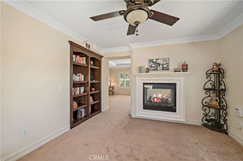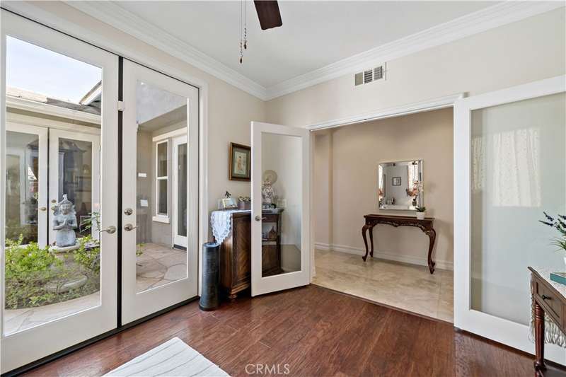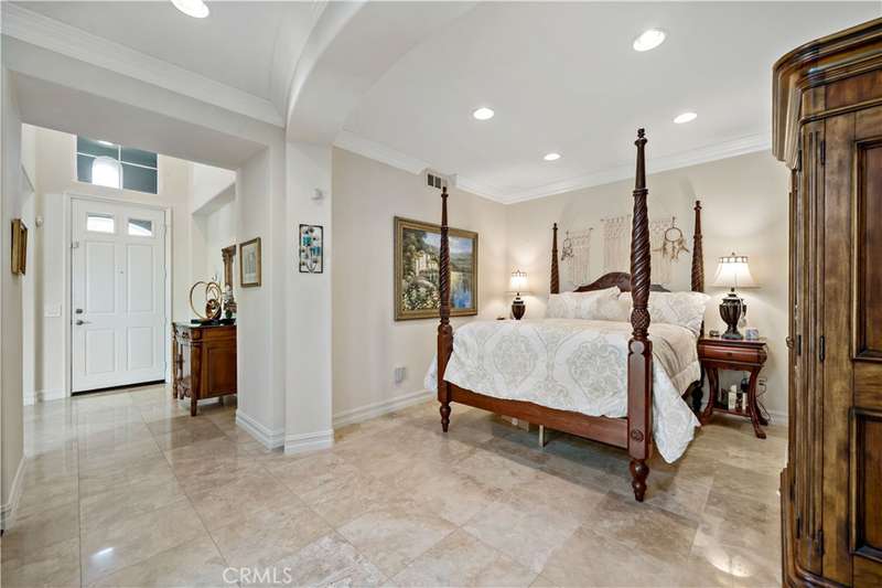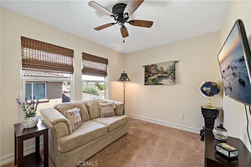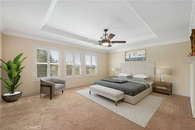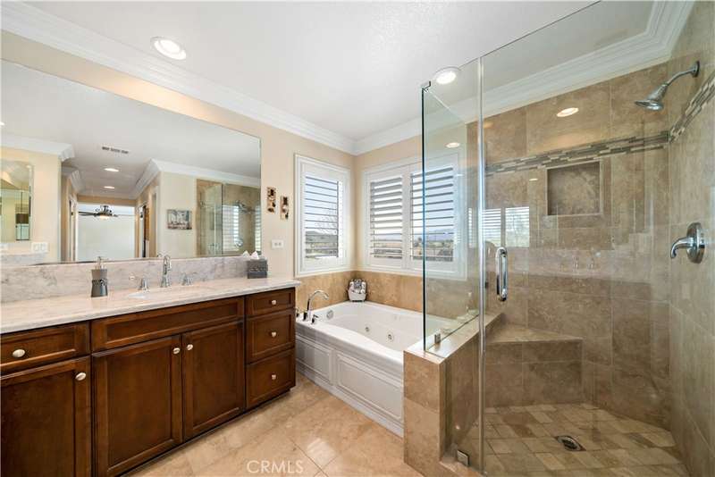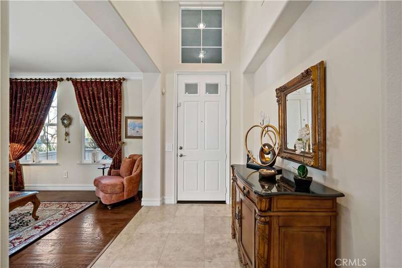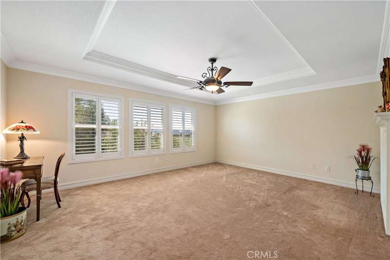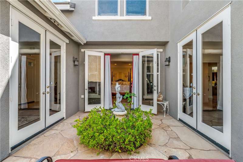Welcome to your dream home in Murrieta, where stunning views of golf course and luxurious upgrades await! This property boasts 5 bedrooms plus a separate primary retreat that can be converted to a 6th bedroom. As you enter, you'll notice the formal living room, separate dining room/den and the downstairs bedroom (being used as office) all feature French doors that connect them to the serene side courtyard/French patio, perfect for your morning coffee or evening gatherings. Also on the main floor, the beautifully upgraded bathroom featuring a newer high end vanity with granite/quartz countertop, along with stylish light fixture and custom mirror. Now, let's talk the chef's kitchen! It features gorgeous granite countertops, stainless steel appliances, and extra cabinets for all your culinary needs. The oversized kitchen island is perfect for meal prep or casual gatherings with friends and family. Head upstairs into the large expansive primary bedroom, where recessed ceiling and a two-sided fireplace creates a warm and inviting atmosphere. The primary retreat is a true sanctuary is a bonus seating area or hobby room. You'll love the luxurious bathroom featuring a jetted tub, a stunning stone shower with frameless glass doors, and marble vanities for that touch of elegance, all with gorgeous views of the mountains. There is also an open bonus room which leads to the three well appointed secondary bedrooms. The endless upgrades include: travertine stone floors, wood flooring in living and family rooms, upgraded ceiling fans throughout the home, custom built ins in family room, retreat and upstairs hallway, plantation shutters, crown molding and 6 inch baseboards throughout, whole house water softener, 3 car tandem garage with storage and insulated garage door, PAID SOLAR and too many more to list! From the charming flagstone porch to the gorgeous backyard with mature landscaping, views of the golf course and mountains and the flexibility of no HOA, this home is the one you were waiting for!