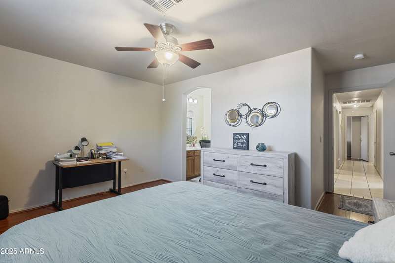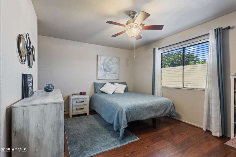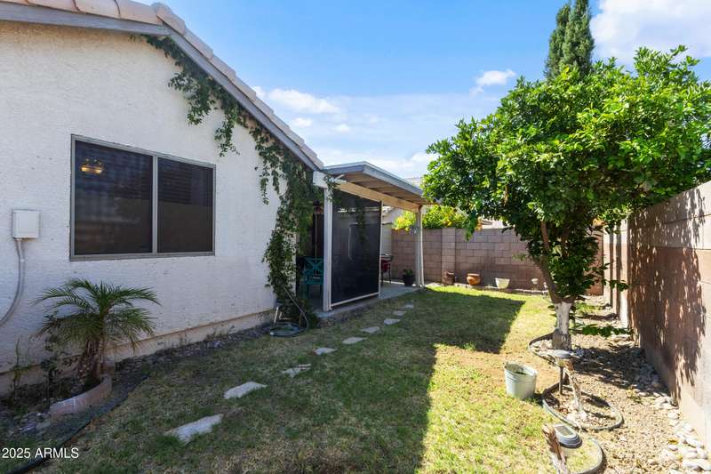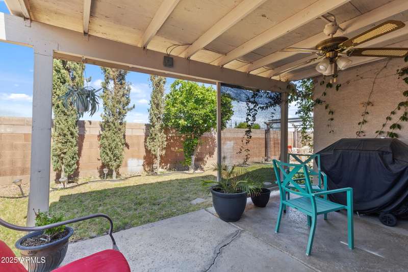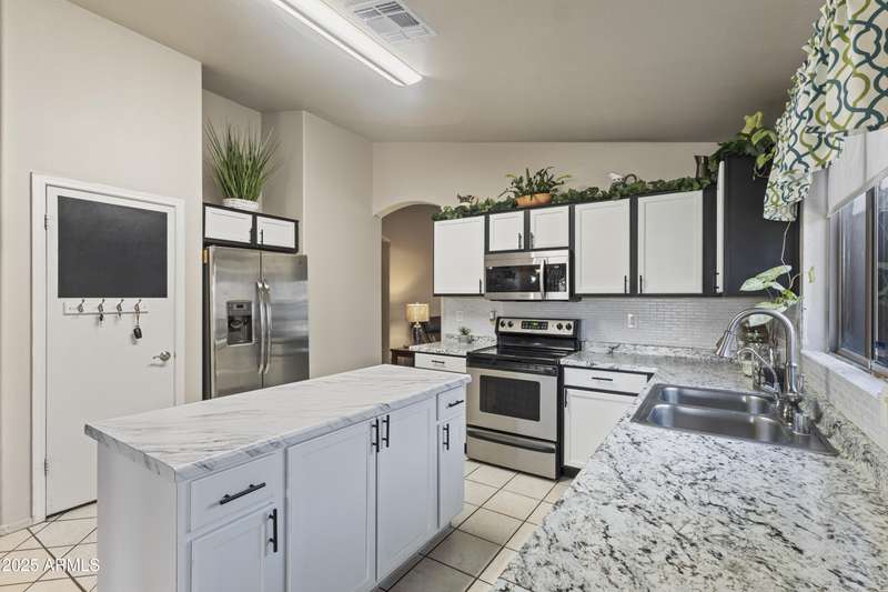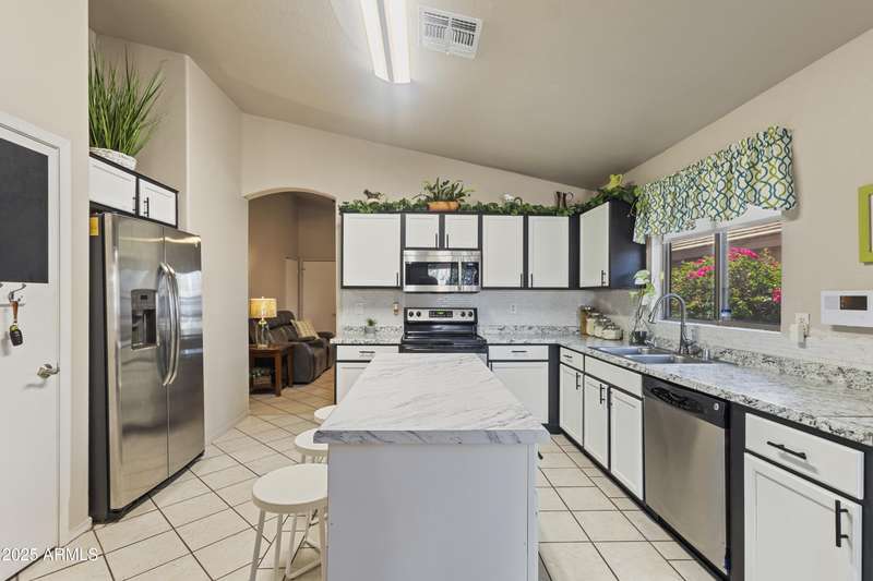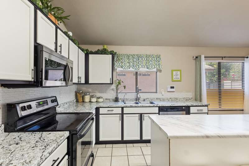 Welcome to this beautifully maintained 3-bedroom, 2-bath home featuring an updated kitchen with sleek granite countertops and a bright open layout perfect for entertaining. Large windows allow natural light to pour in, creating a warm and welcoming atmosphere throughout. Enjoy the comfort of a spacious living room, stylish finishes, and a private backyard with a covered patio—ideal for relaxing or hosting friends and family. The backyard is a perfect blend of low-maintenance landscaping and cozy outdoor space. Located in a quiet neighborhood close to Friendship Park, Topgolf, State Farm Stadium, popular dining spots, and more. Whether you're looking for a great starter home or a solid investment, this property offers both value and lifestyle.