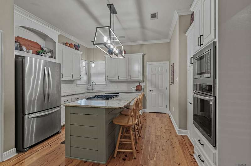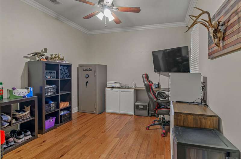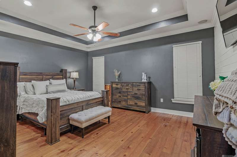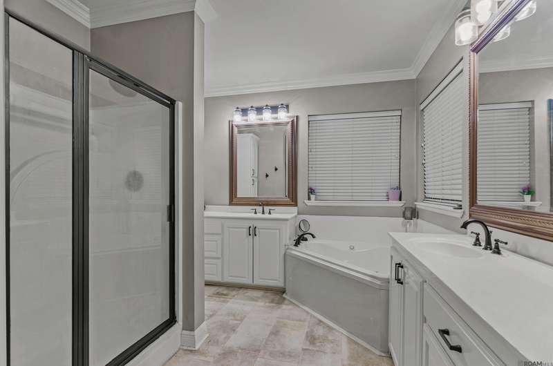 Stunning Home on corner lot just under ½ acre off Swamp Rd. in The Lake at Manchac Subdivision. This beautifully maintained 4-bedroom, 3-bath home offers the perfect blend of elegance, comfort, and modern convenience all located in top-rated Ascension Parish. Step inside to discover gorgeous Australian Cypress wood floors, triple crown molding, and 12-foot ceilings that create an open, luxurious feel. The living area features surround sound and plenty of space for the ultimate entertainment experience. Kitchen features granite countertops, stainless appliances, gas stove, and breakfast area. Primary suite features an ensuite bath with dual vanities, jetted tub, and separate shower. The home boasts brand-new landscaping, a new fence with a 12-ft metal-framed double gate, and an amazing, extended covered back patio, ideal for year-round gatherings and relaxation. Additional features include: New oven and microwave, 220V plug for a portable generator, Custom LED lighting, new stained real wood shutters on all windows, irrigation system, mosquito misting system, one brand-new HVAC unit; the second less than 5 years old & roof is less than 4 years old. The neighborhood also offers a stocked lake, perfect for fishing or simply enjoying the peaceful scenery. Don’t miss your chance to own this beautiful, move-in-ready home that truly has it all - space, upgrades, and location!