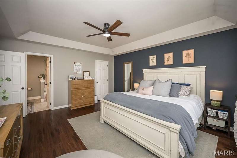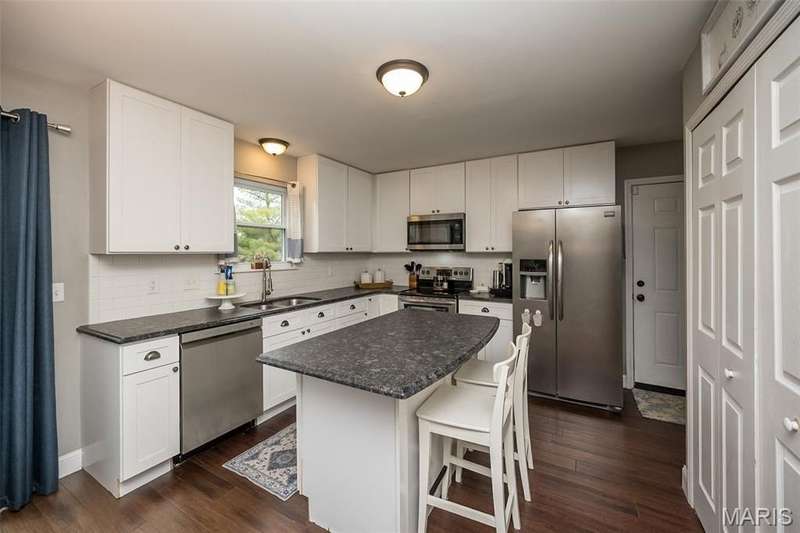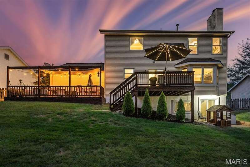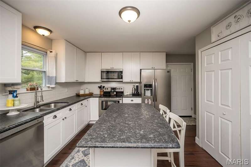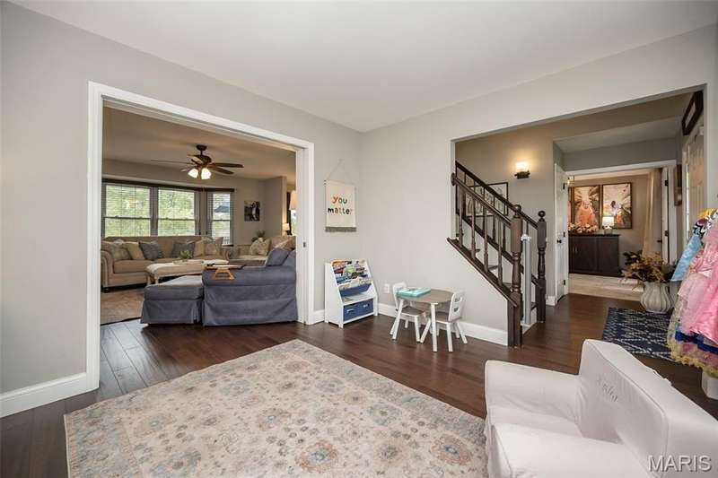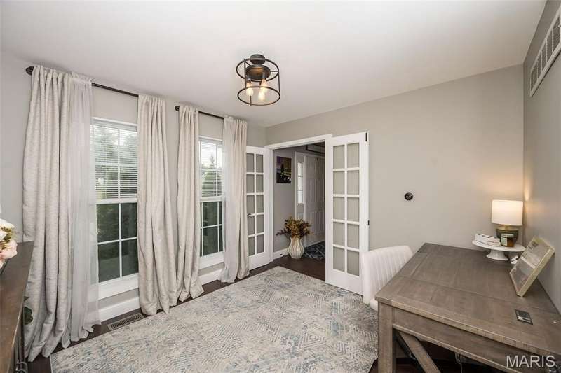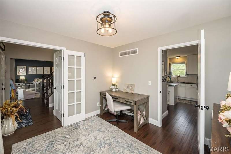 This beautifully updated home checks all the boxes! Engineered wood floors flow throughout, with flexible living spaces including a private office with glass French doors, a formal living/dining option with double pocket doors, and a cozy family room with a fireplace, and bay window. The updated kitchen is a showstopper—42” white shaker cabinets, stainless appliances, a center island, brushed granite countertops, subway tile backsplash, and a breakfast room that opens to the deck & grilling area. The spacious primary suite features engineered wood floors, coffered ceiling, walk-in closet, and luxury bath with double sinks, separate tub & shower. Additional bedrooms are generously sized with walk-in closets, too! Enjoy peace of mind with newer windows & doors, a newer water heater, an architectural roof, ADT, app-controlled garage door opener with keyless entry, ceiling fans in all bedrooms, landscaped & fully fenced yard. Plus, an oversized finished garage with cabinetry for storage and a service door. Walk-out lower level offers organized storage, Recreation room, rough-in bath, and potential for a 4th bedroom. Conveniently located near Centennial Greenway trails, Page Extension, shopping & more—this home is truly move-in ready!