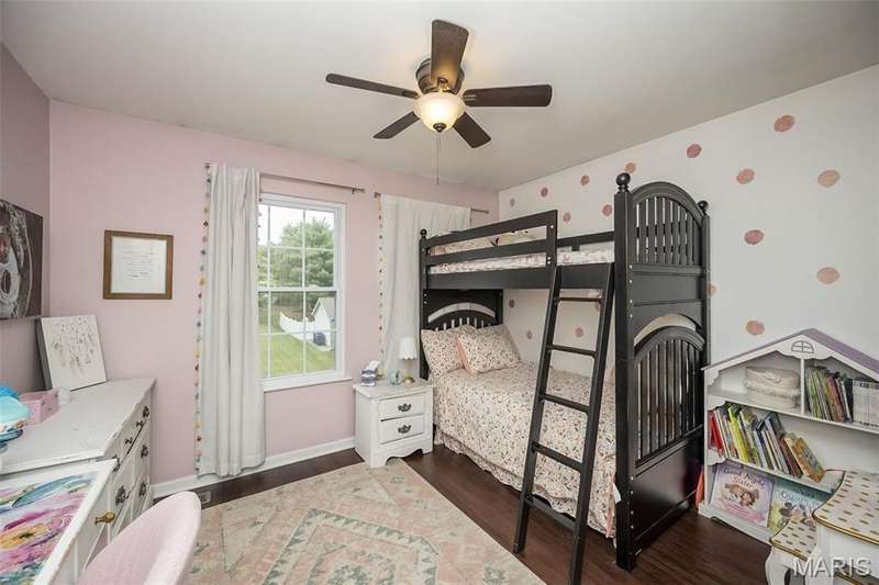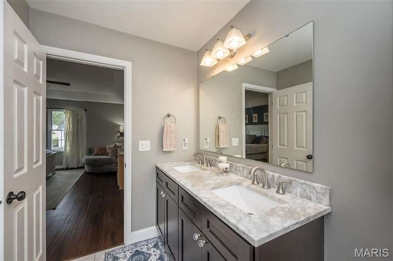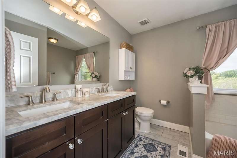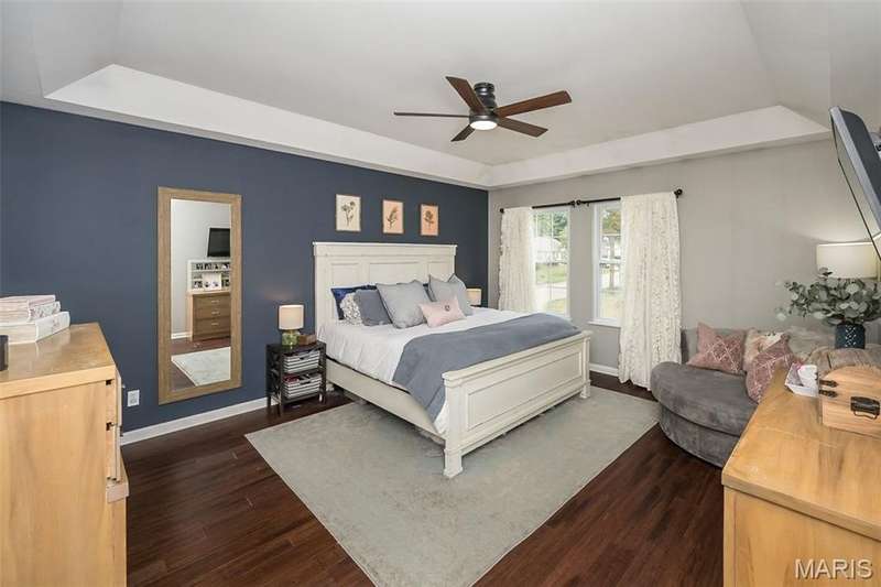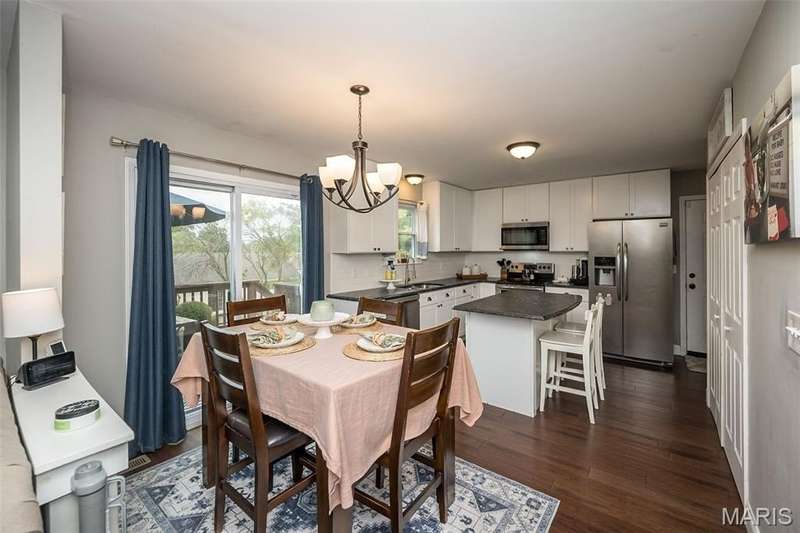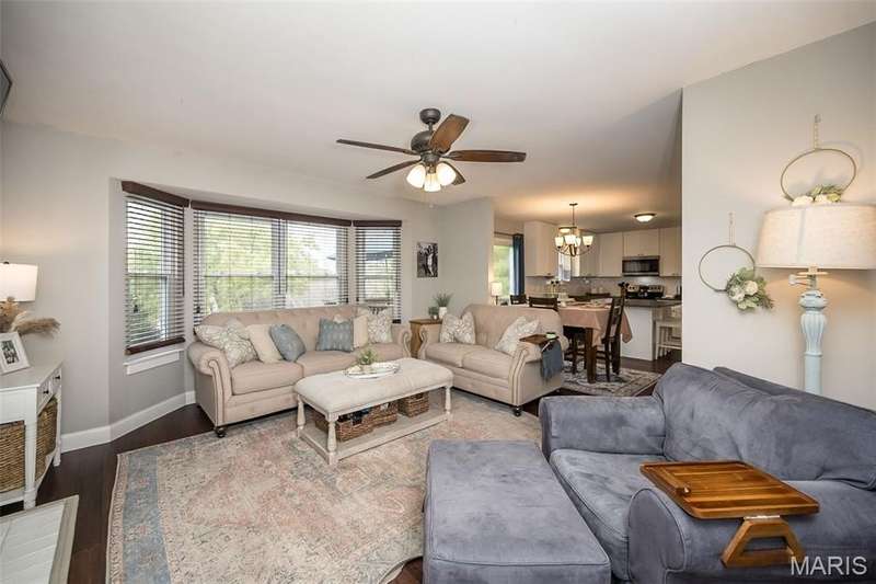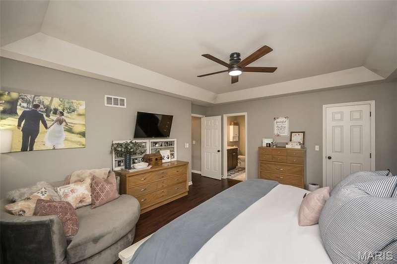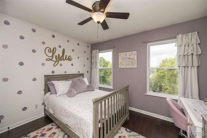 This beautifully updated home checks all the boxes! Engineered wood floors flow throughout, with flexible living spaces including a private office with glass French doors, a formal living/dining option with double pocket doors, and a cozy family room with a fireplace, and bay window. The updated kitchen is a showstopper—42” white shaker cabinets, stainless appliances, a center island, brushed granite countertops, subway tile backsplash, and a breakfast room that opens to the deck & grilling area. The spacious primary suite features engineered wood floors, coffered ceiling, walk-in closet, and luxury bath with double sinks, separate tub & shower. Additional bedrooms are generously sized with walk-in closets, too! Enjoy peace of mind with newer windows & doors, a newer water heater, an architectural roof, ADT, app-controlled garage door opener with keyless entry, ceiling fans in all bedrooms, landscaped & fully fenced yard. Plus, an oversized finished garage with cabinetry for storage and a service door. Walk-out lower level offers organized storage, Recreation room, rough-in bath, and potential for a 4th bedroom. Conveniently located near Centennial Greenway trails, Page Extension, shopping & more—this home is truly move-in ready!