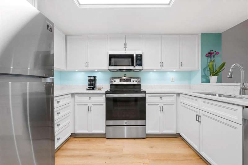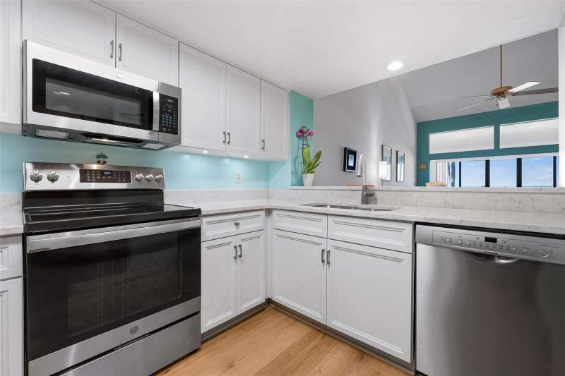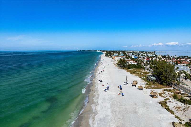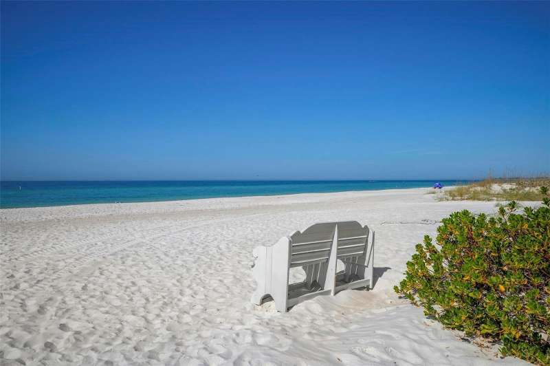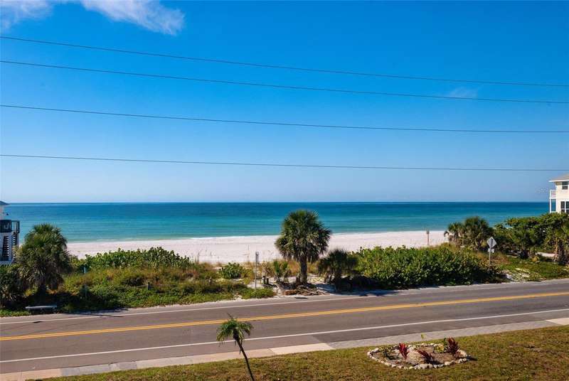 New, new, new.... Just Listed! Beachfront Condo with STUNNING GULF VIEWS! Experience the ultimate in coastal living with this beautifully updated kitchen with quartz countertops, NEW half bath, NEW roof, refurbished elevator, and a refreshed pool (all new pool heaters, pumps, etc.), spa, deck and bathhouse. Every detail has been updated for comfort, style, and peace of mind. From the moment you enter this freshly painted condo you will be captivated by the uninterrupted, direct Gulf views and the sparkling waters of the Gulf of Mexico which are front and center. Enjoy breathtaking sunsets from your open-concept great room and kitchen, and start your mornings with peaceful sunrises from the bayfront heated pool, hot tub, or fishing/boat dock. This elevated BEACH-TO-BAY community is a hidden gem, known for its quiet ambiance and friendly, long-term residents. The deeded beachfront property, owned by the association, ensures your panoramic views will never be obstructed. Even better, this 3rd story unit remained high and dry through the most recent hurricanes, offering extra peace of mind. Inside, the condo features vaulted ceilings, new luxury vinyl plank flooring, and an enclosed lanai that opens to the soothing sound of waves. The two spacious bedrooms provide flexibility as one currently serves as an office and workout space. Safety, maintenance and financial stability are a hallmark of this community. Summer Sands reserves are fully funded and the building easily passed the Florida Milestone Inspection required by the State to verify structural integrity. Located just a short walk from Bridge Street's shopping, dining, and nightlife, and steps from the free Island Trolley, this home includes two under-building parking spaces with secure elevator and stairwell access. The pool complex also has a patio with a grill and picnic table as well as new kayak/paddleboard storage. The all-new landscaping of the entire property has been professionally designed, including the lush and peaceful atrium. This is your chance to own a condo with the very best of Anna Maria island living.