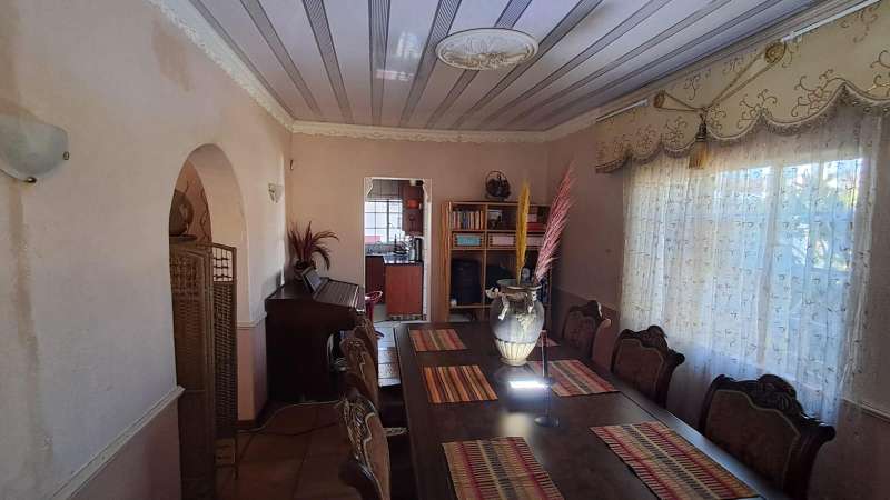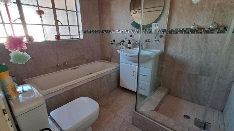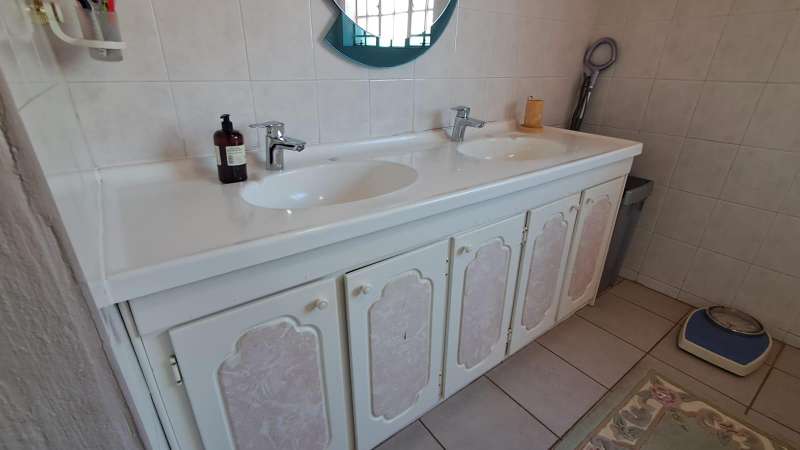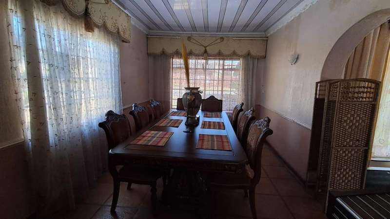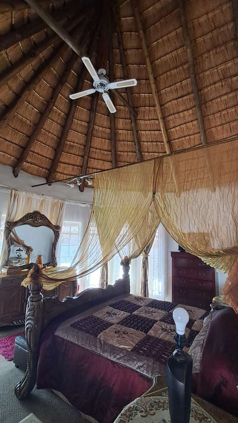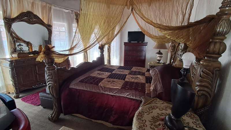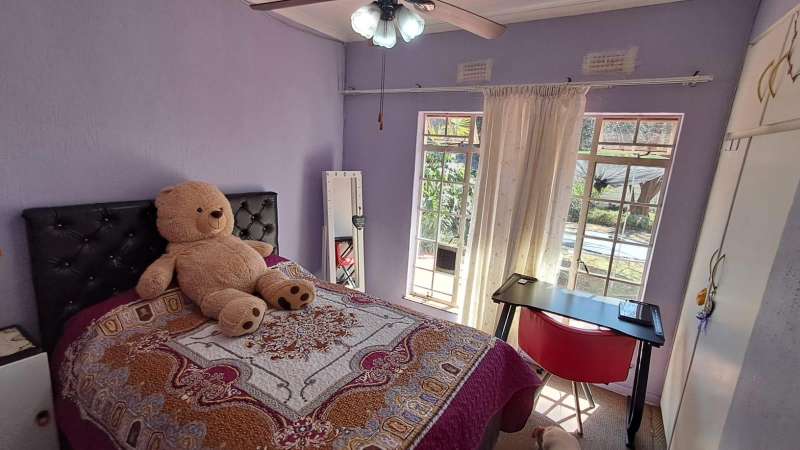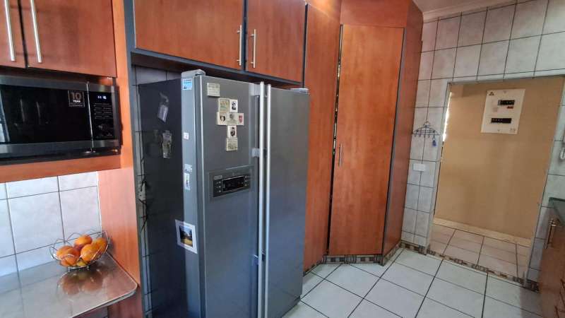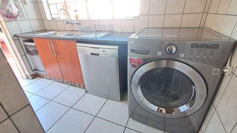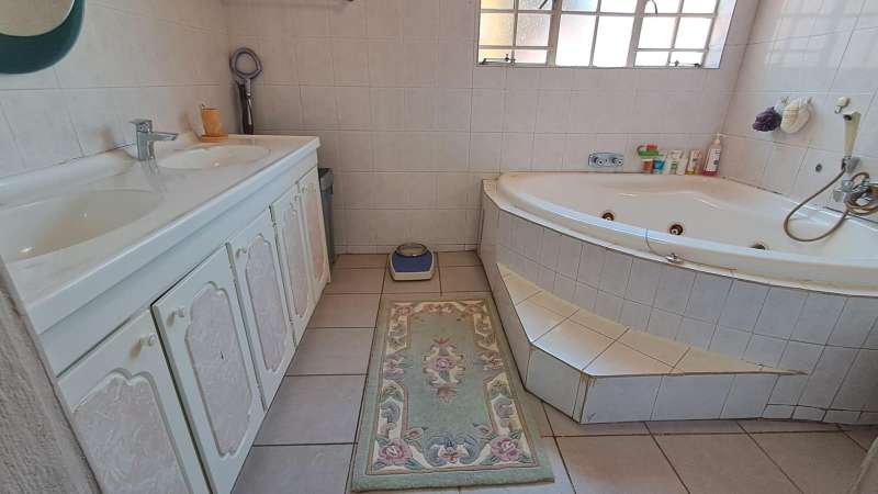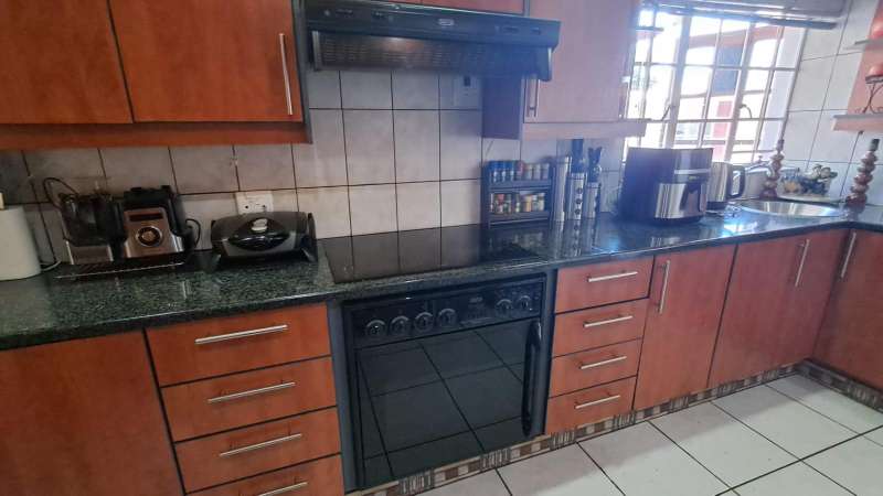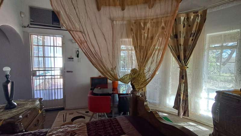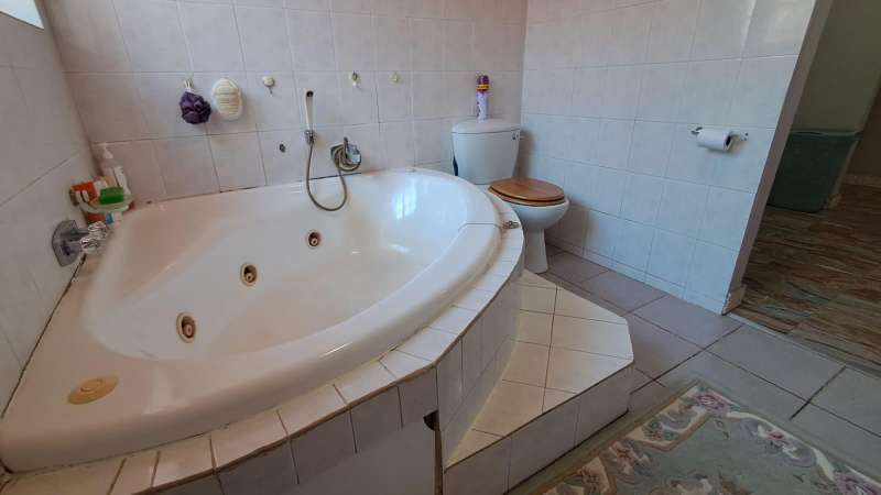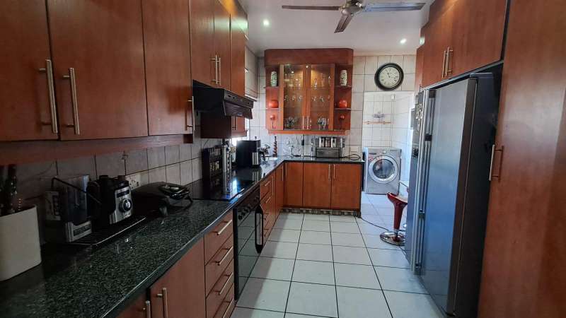 Inside the boomed off area of Randhart, on the corner stands this delightful family home full of character and charm with a thatched roof. Around the corner is the automated gate to the secured parking area. Plenty of space for parking of numerous cars, and children to play freely on the lawns. Enter the house through the reception area, and move to the formal lounge. Spacious dining room with lovely embossed ceilings. Guest toilet is available. The kitchen is neat with lots of packing space, granite tops, glass top stove. Separate scullery that leads to the outside courtyard area. Outside staff toilet. There are three spacious bedrooms, but the main bedroom with its special bay window shape gives you added space for creating dreamy times. The main en-suite bathroom has a corner bath-tub. The central bathroom includes a shower, too. Upstairs the wooden staircase, on the landing is the study. There is a large 55 sqm family/ all purpose room. This area can also be used as a fourth bedroom with windows for warmth and serenity. The automated garage offers three door entrance and ample space for cars to be parked. Additional features on the outside is the thatched lapa with a built in braai, irrigation system for this well established garden. For security there is electric fencing, burglar radio is in place, the Estate's security company offers their services. There is a levy fee for these services. Fiber is available. Contact me for a viewing appointment and to discuss the price.