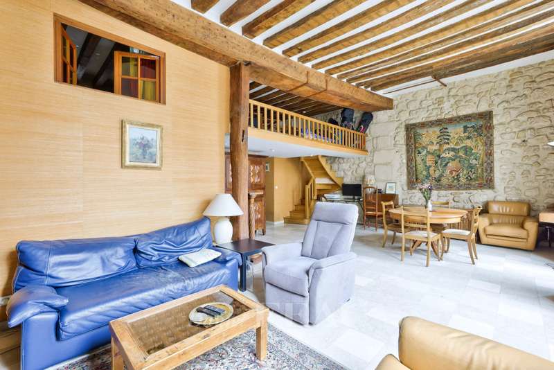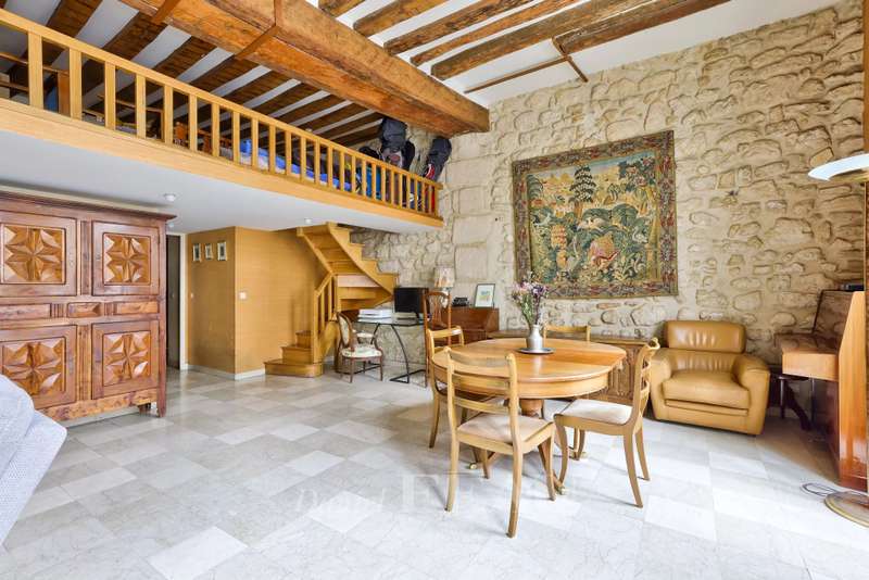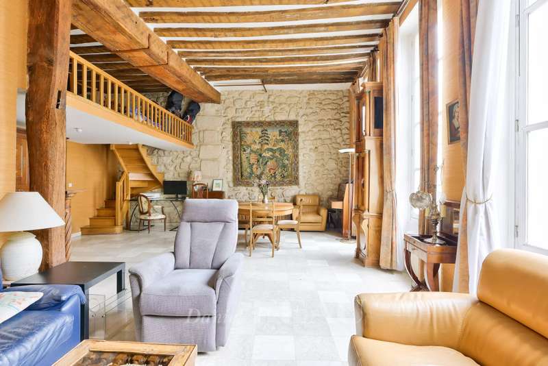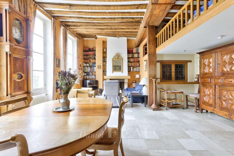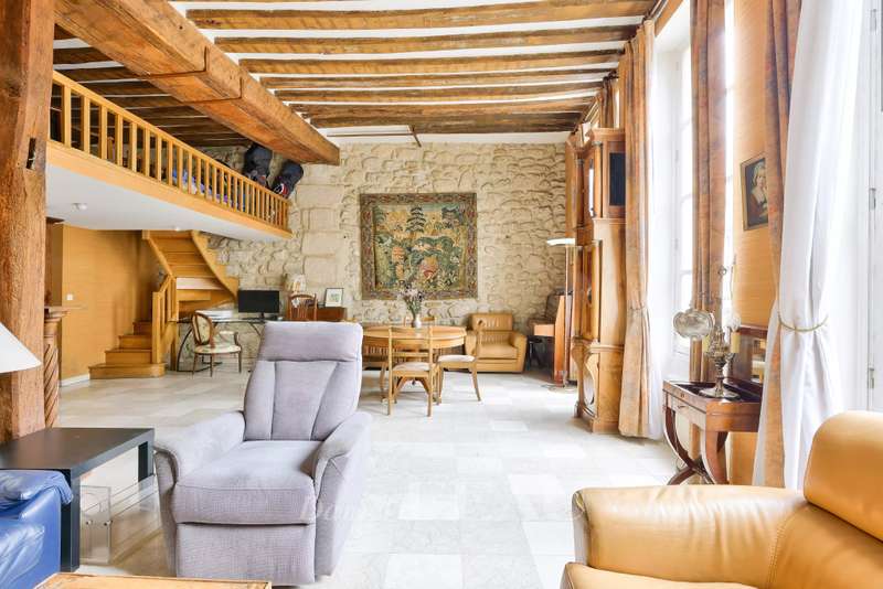 This charming apartment is on the second floor of a very well-maintained 19th century building located in sought-after rue Saint-Antoine in the historic heart of the capital’s Marais neighbourhood. Offering 123.13 sqm of floor space and 94.05 sqm of living space as defined by the Carrez Law, it includes a spacious living/reception room and dining room bathed in sunshine thanks to three wide south-facing windows, a separate kitchen (open-plan would be possible), a master suite with a bathroom and wc overlooking a peaceful courtyard, two further bedrooms, and a shower room/wc. Ample fitted storage space. Period features include exposed beams. Renovation is required to exploit the full potential.