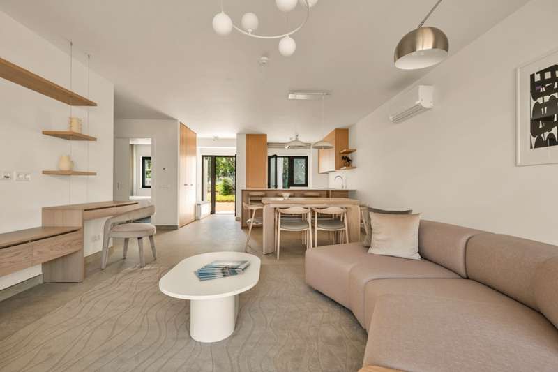 New, modern, fully furnished 2-bedroom apartment in the Primelife luxury tourist development in Carvoeiro, Algarve. Situated on the first floor, this elegant two-bedroom apartment in Primelife is for sale fully furnished and elegantly decorated. It has a large and bright open-plan living room with an equipped kitchen. The two spacious bedrooms, one of which is en suite, have large windows and built-in closets, ensuring a bright and functional environment. The bathrooms are modern, with wooden details and underfloor heating, providing a touch of refinement. Primelife also offers an excellent infrastructure, with a swimming pool and large terraces and balconies, surrounded by the magnificent garden. With an abundance of natural light, the apartment is equipped with solar panels, ensuring efficient use of energy. It also has private parking for the convenience and safety of residents. Primelife is in a privileged location, in the picturesque fishing village of Carvoeiro, one of the most sought-after spots in the Algarve. The area is known for its natural beauty and is very popular with lovers of outdoor activities, hiking, golf and water sports. Just 750 meters from Carvoeiro beach, it is surrounded by restaurants, bars and shops. It is also 45 minutes from Faro International Airport. CHARACTERISTICS:Area: 111 m2 | 1 195 sq ft Bedrooms: 2 Bathrooms: 2 Energy efficiency: Free FEATURES: 2 bedrooms Furnished and equipped Solar panels Private parking Swimming pool Garden Balcony Gated development