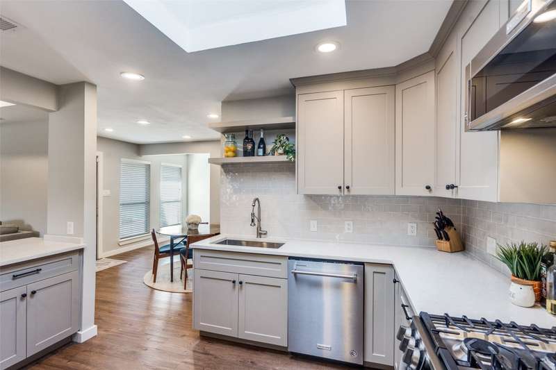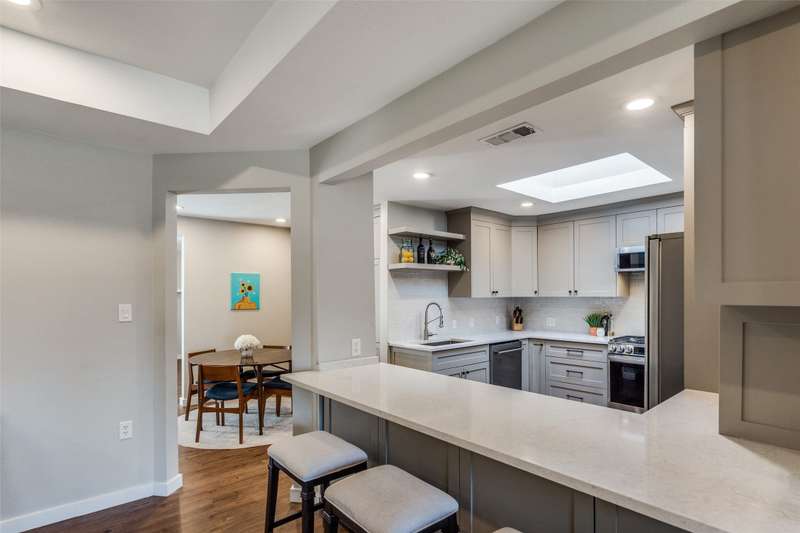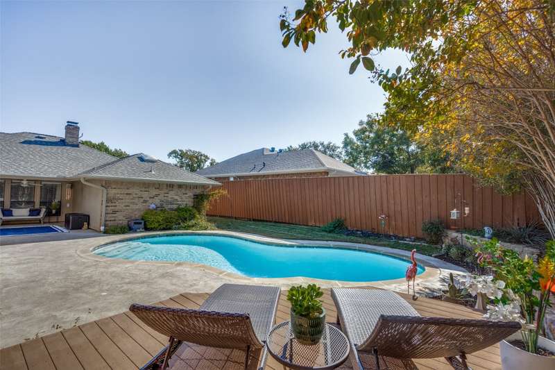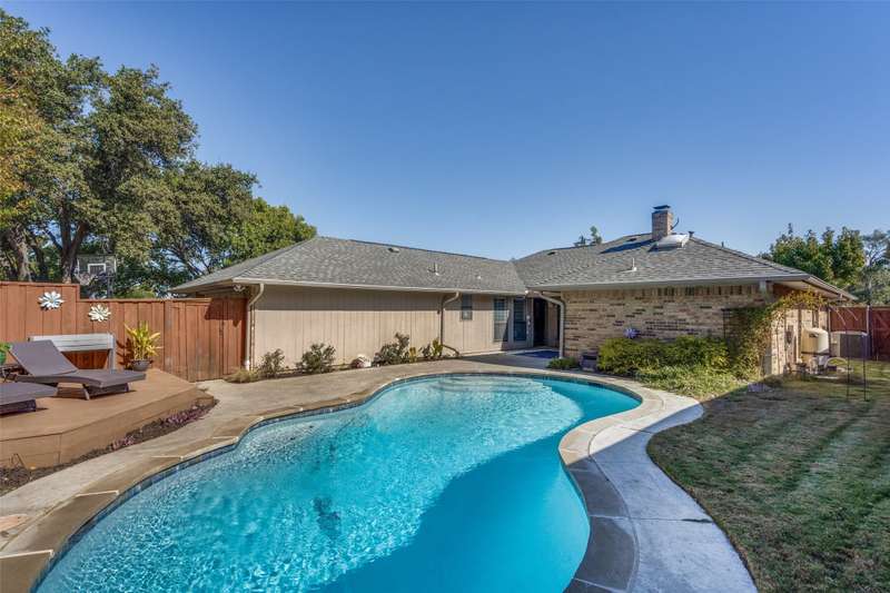 Stunning property in Rosemeade neighborhood featuring 3 bedrooms, a 2-car garage, a sparkling POOL, & true move-in readiness! This residence has undergone a complete interior remodel, centered around a bright & open living room with pool views. This home also features a majestic formal dining with crown molding, a breakfast space, & a versatile 2nd living space to add to the appeal. The custom kitchen does not disappoint, equipped with quartz ctops & all new 2021 appliances, including a 5-burner gas range. One will find abundant storage, & the new custom shaker cabinetry & LED lighting really make this kitchen pop. Down the left hallway are 3 bedrooms, including the primary suite showcasing a relaxing soaking tub, separate shower, and dual vanities. Toward the back, enjoy a 16' x 13' second living room or flex space with elegant built-ins, a stylish half bath, & a full-sized laundry area. Cool off in the swimming pool or entertain guests on the deck, the backyard provides a haven of relaxation, there is even a dog run for Fido. Amazing value on this home located close to a plethora of DFW thoroughfares, airports, premier shopping, & fine dining.