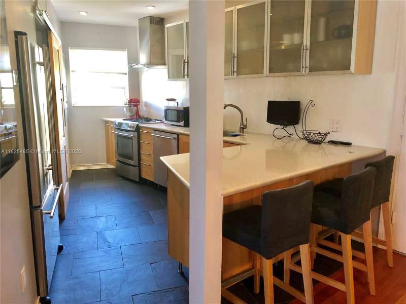 Furnished bright corner unit with amazing balcony facing the Miami Beach Convention Center. Great gourmet kitchen with full size stainless steal Jenn Air appliances, dual fuel electric convection oven with gas cook-top and warming drawer, glass range hood, French door refrigerator with filtered water, dishwasher w/ stainless interior, quartz countertops, slate floors, recessed lighting, and a peninsula for added seating. Spacious bedroom, queen size platform bed with memory foam mattress. Unit features a lot of closet space and storage. Wall mounted desk space for your home office or computer. The unit has central air conditioning and Washer and Dryer. One year lease. Good credit.