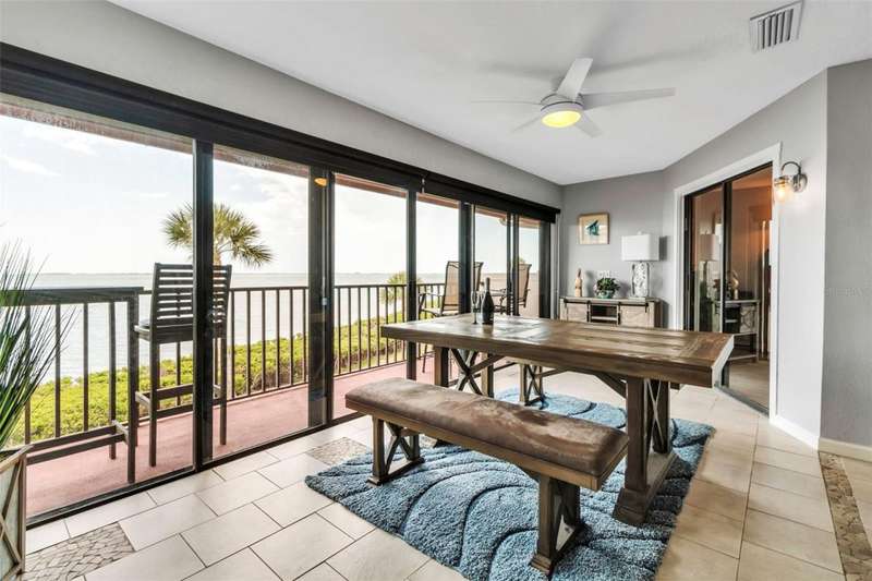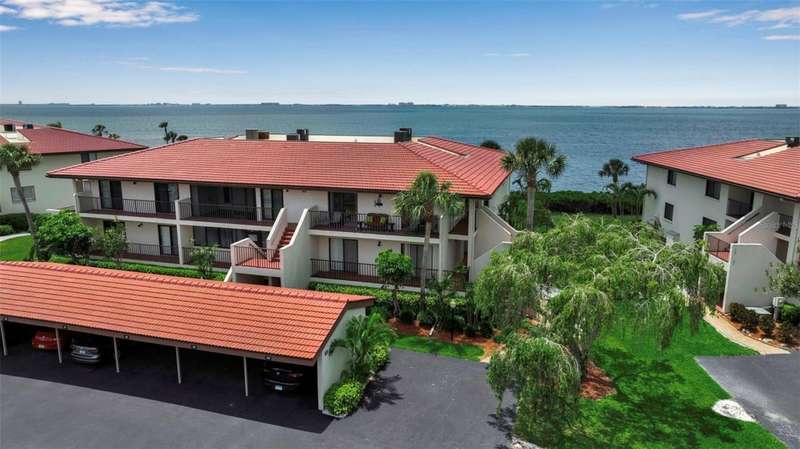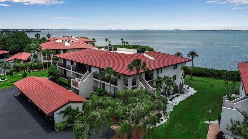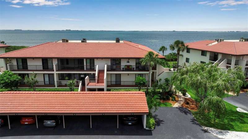 Sunsets galore? Check. Beautiful views from almost every room? Check. Well-Constructed with the iconic Florida Red Tile Roofs? Check. Come make this Beautiful 3 Bedroom/2 Bath condo on Sarasota Bay with water views as far as the eye can see your Southern or Full-time home. Roof installed and paid for end of 2024; Hurricane Impact windows and sliders give the feel of security and comfort. Come see this 3 Bedroom, 2 Bathroom end unit condo with full view of the Sarasota Bay. This is a unique opportunity to embrace the Florida Lifestyle and enjoy the beauty of the Gulf Coast and beaches. Leave the hustle and bustle behind and enjoy the warm tropical weather and the botanical community of Wild Oak Bay with all the conveniences so close to home. From the moment you walk in the door from your private covered porch you have the preferred southwestern exposure with water views from almost any room in the home. Plantation shutters and roll down blinds allow you to moderate the amount of sun shining through your windows. The kitchen includes updated cabinets, solid surface countertops and newer stainless-steel appliances. This desirable end unit has additional windows that extend your water view and brings in additional natural lighting. The two bathrooms have also been nicely updated. You get all of this splendor while being nestled in the most enchanting Caribbean-like setting. Age and pet friendly in ideal neighborhood for walking, biking, bird watching, fishing or Kayak located just steps from the bay. The IMG Semi-private Golf and Country is conveniently located right down the street and its approximately 8 miles to the Gulf Beaches, under 20 minutes to SRQ, cultural arts, shopping and the restaurants of downtown Sarasota. This could be yours so just imagine sitting in the community pool, hot tub or your private balcony and taking in the mesmerizing views of the famous west coast sunsets and the twinkling of the Sarasota and Long Boat Key Skyline. Walking distance to the semi-private IMG Country Club which allows golfing and dining to non-members.