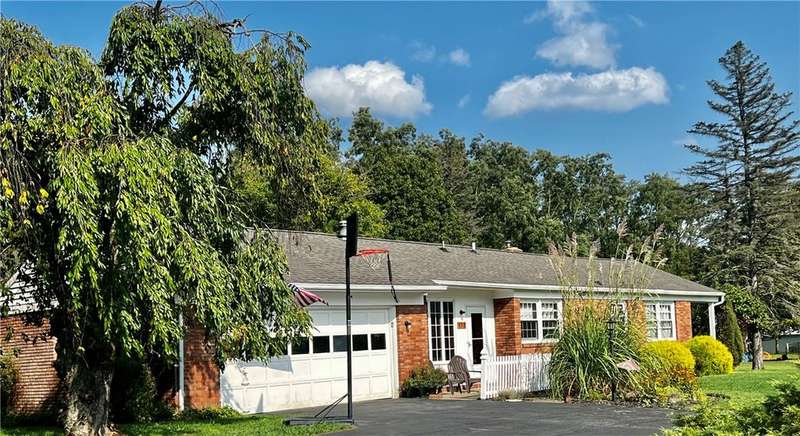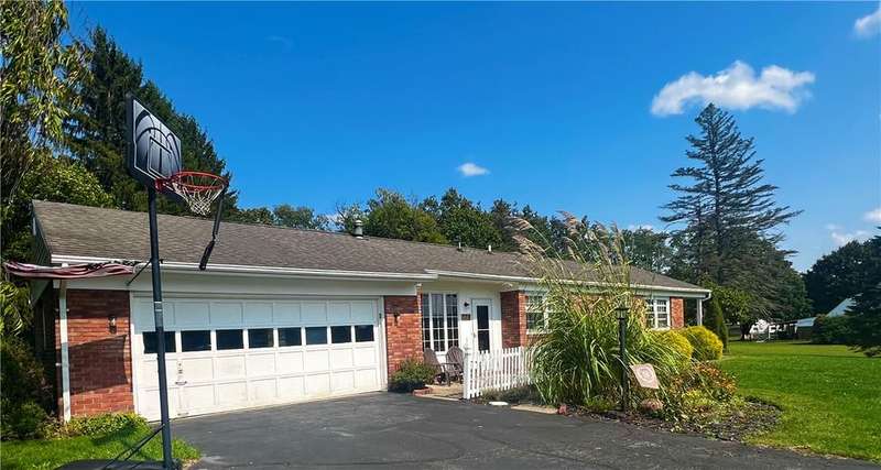 Beautiful 3-bedroom, 2-bath brick ranch in Big Flats offers timeless charm and modern comfort on over an acre of landscaped grounds. Featuring gleaming hardwood floors, a renovated kitchen and bathrooms, and neutral paint throughout, the home is designed for easy living and elegant entertaining. The open-concept living and dining area is anchored by a cozy gas fireplace, while Anderson windows provide year-round energy efficiency and natural light. Every detail has been thoughtfully considered to create a warm, inviting atmosphere. Whether you're enjoying a quiet evening by the fireplace or soaking up the sun on your patio, this home offers year-round comfort and timeless appeal. Property provides a spacious two-car garage and a premium Woodtek shed ideal for storing vehicles, lawn equipment, and recreational gear. With thoughtful upgrades and a warm, inviting atmosphere, this property is a rare find in a sought-after location. Conveniently located near shopping, schools, and parks, with easy access to Elmira and Corning.