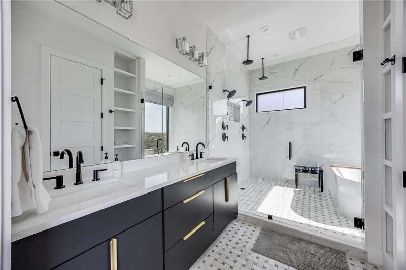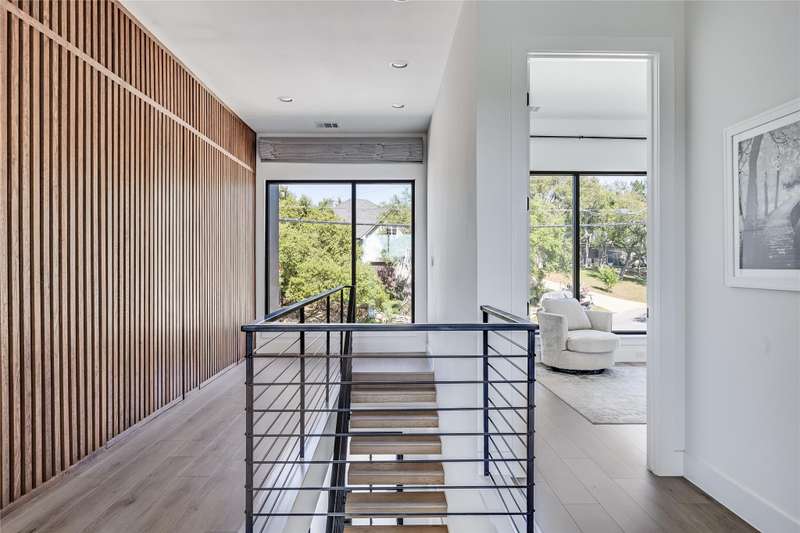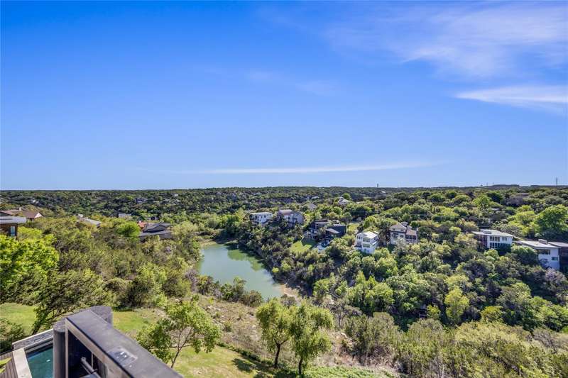 Nestled in the serene enclave of Apache Shores, Firefly Canyon is a breathtaking modern retreat offering panoramic views and a coveted setting backing onto Apache Shores Lake, a tranquil, creek-fed oasis. This stunning home boasts five spacious bedrooms and four luxurious bathrooms, designed with an open-concept layout that seamlessly blends style and functionality. The chef's kitchen features high-end stainless steel appliances, expansive quartz countertops, a waterfall island, and sleek European-inspired cabinetry. The generous dining area is framed by elegant sliding glass doors, opening onto a sprawling outdoor patio that invites effortless indoor-outdoor living. Designed for both relaxation and entertaining, this home offers a private rooftop deck, a cozy fire pit, and a heatable pool and spa--all set against the backdrop of breathtaking lake views. The primary suite is a true retreat, featuring a private balcony and a spa-inspired bathroom. Perfectly situated just 10 minutes from Lakeway and 20 minutes from downtown Austin, Firefly Canyon balances privacy with convenience. Its prime location and luxurious amenities make it an outstanding investment opportunity, offering top-tier rental potential year-round in Austin's thriving vacation market. With easy access to Lady Bird Lake, Lake Travis, top-ranked schools, medical facilities, scenic hiking trails, and premier shopping and dining, this exceptional property delivers an unparalleled lifestyle in one of Austin's most sought-after communities.