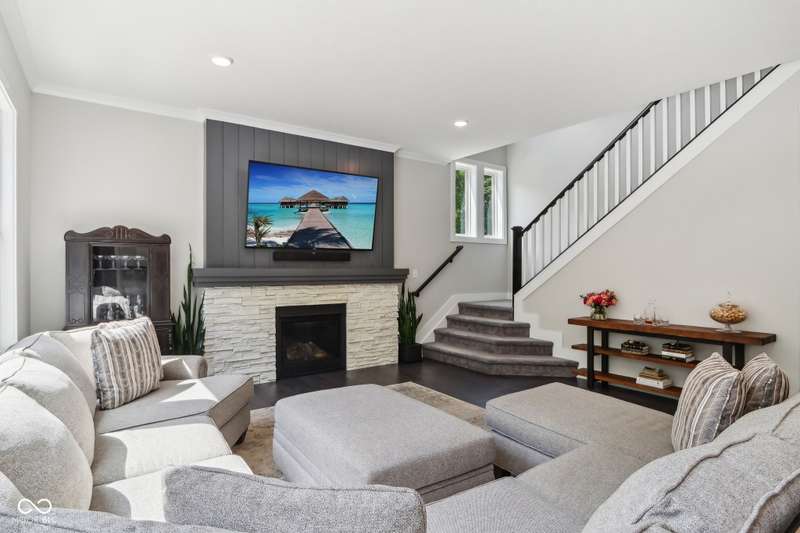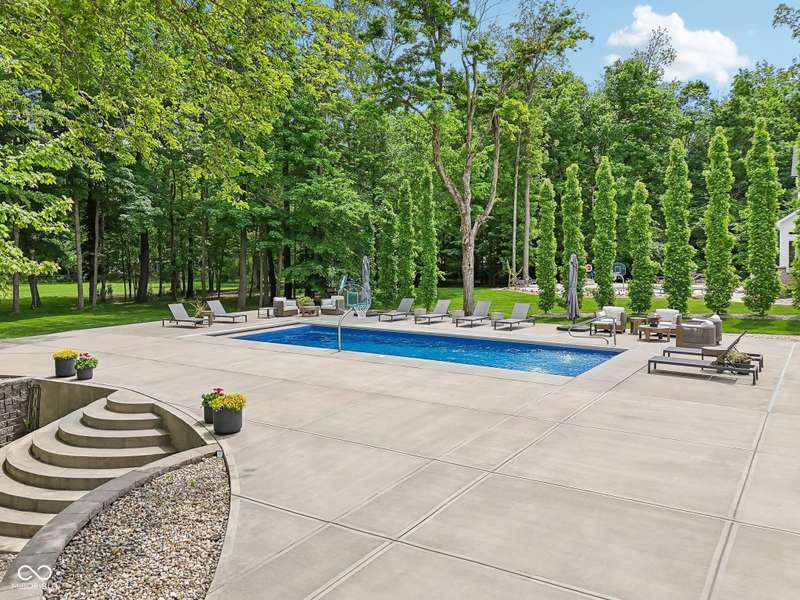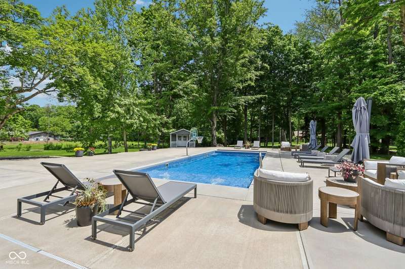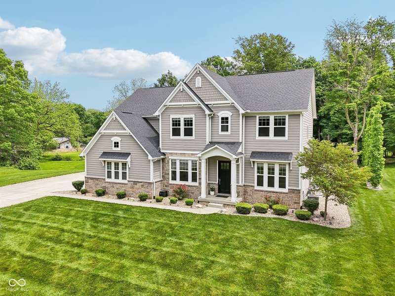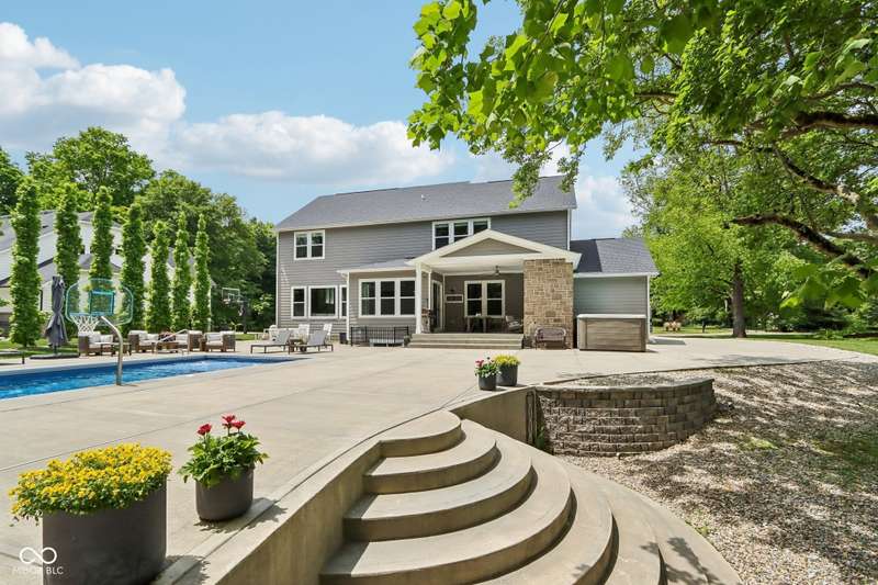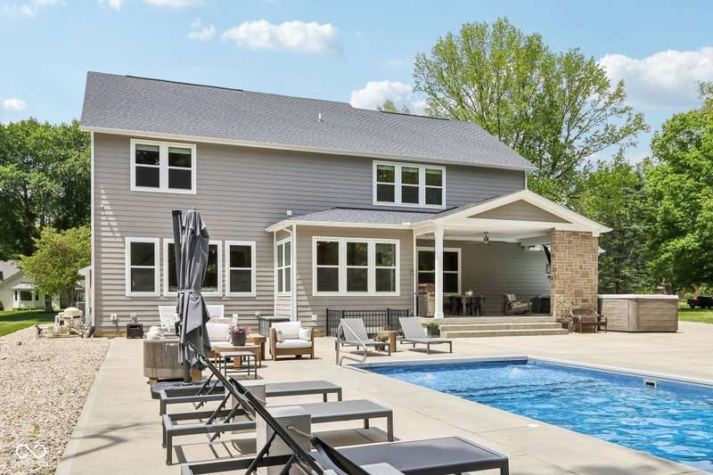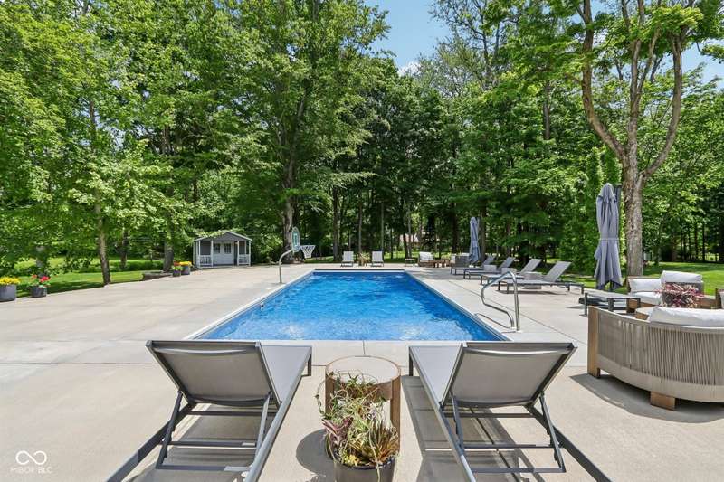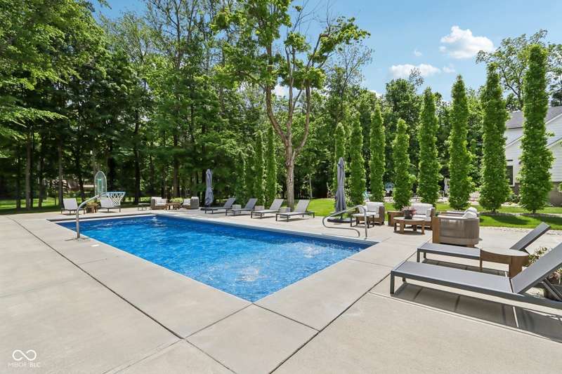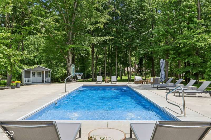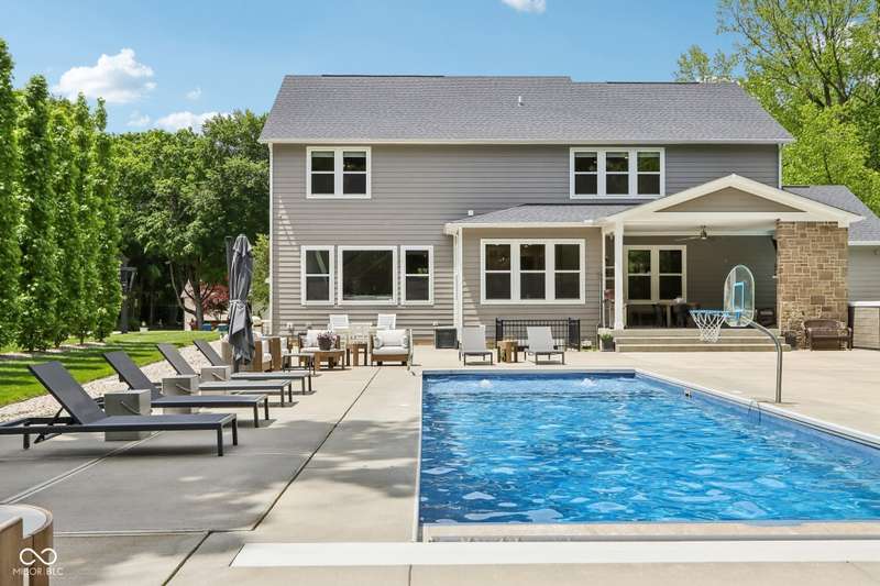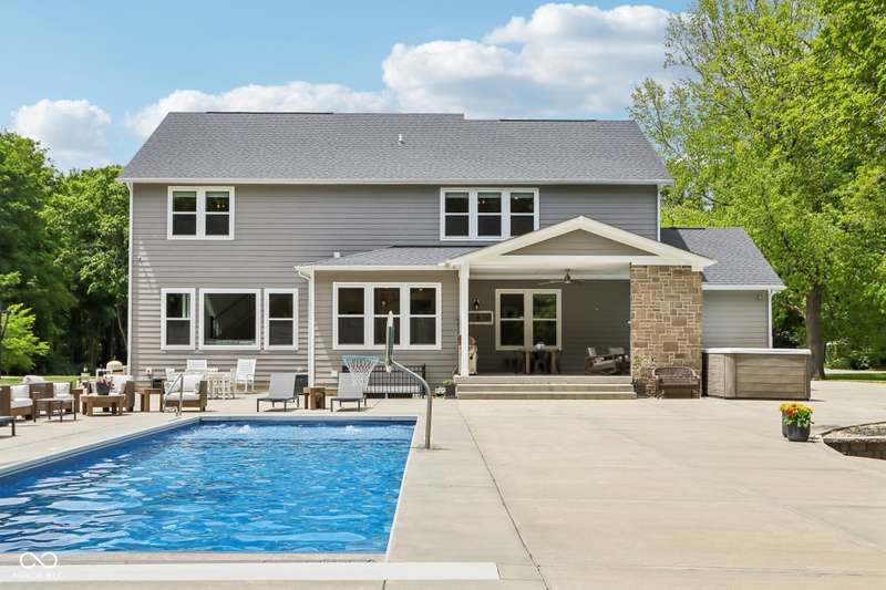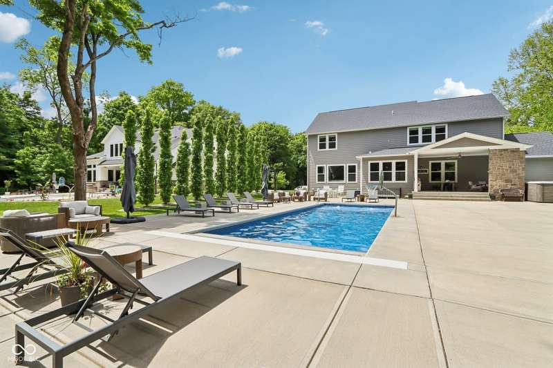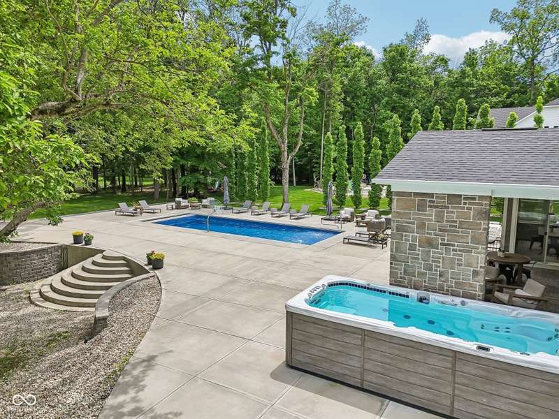 Step into this beautiful, luxurious, custom-built home and you won't want to leave. It's like arriving at a Five Star resort with all modern conveniences at your finger tips. Built in 2019, no expense has been spared both inside and out. Open plan living-kitchen-breakfast room with huge windows overlooking the stunning property. Separate formal, paneled dining room. Gorgeous chef's kitchen with Quartz island & high-end SS appliances leads into massive pantry, planning center, half bath, mud room, and attached heated garage with EV charger. Four generous bedrooms - including primary suite with massive spa bathroom; huge marble shower; double vanities; his & her closets; separate W/C. Retreat to the den/office for work, or to the awesome basement rec room for fun. The sunny basement offers a family room, wet bar, full bathroom, and great storage. Second-to-none outdoor living space with stone masonry gas fireplace; 17' Garden Leisure Swim Spa; 40' swimming pool with tanning ledge; custom-built heated pool house w/ rest room; 10K+ sq ft of pristine concrete pool deck & patio all set in 1+ acres of lush landscape. It's like being on retreat every day. All home wired and wifi integrated network; full property home security & all home automation control system inc exterior video cameras; HVAC digital remote thermostat controls. Convenient to Carmel, Indianapolis, Keystone at the Crossing, and the Monon Trail-this home won't stay on the market long! Say yes before someone else snaps it up, and move into your new dream home!