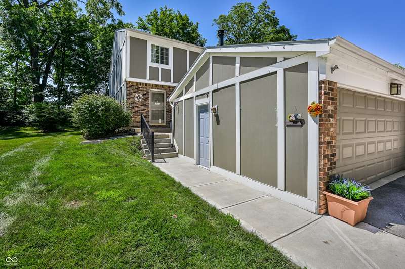 Welcome to 179 Aspen Way, Carmel, IN. This 1560sq ft. 3-bedroom, 2.5-bathroom end-unit condo offers comfort, functionality, and the opportunity to make it your own. This home features a custom kitchen with solid oak cabinetry, fully functional pull-out drawers, Corian countertops, and a built-in wood desk-perfect for managing household tasks or working from home. A large walk-in pantry adds even more convenience. Enjoy delicious meals in the dining room with beautiful hardwood floors, overlooking a peaceful back deck framed by mature trees. The cozy living room features a wood-burning fireplace for relaxing evenings at home. Just outside the front door, relax on the private front patio, right next two the two car detached garage. Upstairs, you'll find three generously sized bedrooms, including a large primary suite with a sitting area and private en-suite, along with a well-appointed guest bath. The basement offers two spacious areas-perfect for storage, a home gym, office, or additional living space. While the home could benefit from some modern updates, it's been well maintained and offers incredible value in a highly sought-after location. Just minutes from the Monon Trail, The Palladium, and some of Carmel's best dining and shopping, plus access to a community pool, just a short walk from your front door. Don't miss your chance to create your dream space in this ideally located Carmel condo!