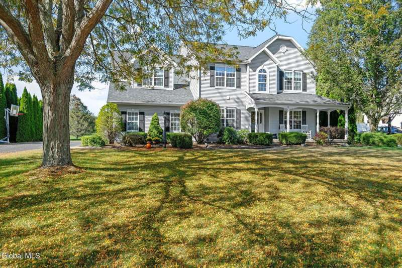 Situated in the highly desirable Somerset Neighborhood is this meticulously maintained 5 bedrooms, 2.5 bath Colonial. The spacious and versatile floor plan features a family room with gas fireplace, updated eat-in kitchen, all bathrooms, and hardwood floors throughout. The first-floor bedroom is currently used as a home office, offering a private and quiet workspace. Upstairs, the primary bedroom features an adjoining area currently used as an office that could easily be used as a cozy sitting room or home gym. One of the standout features is the large 5th bedroom, a true bonus space with endless potential as a guest room, media room, etc. Enjoy relaxing or entertaining on the wrap around porch or on the deck overlooking the backyard. Conveniently located to stores, restaurants and I-87 on ramps. Don't miss this opportunity to own this beautifully maintained home with plenty of room to live and work!