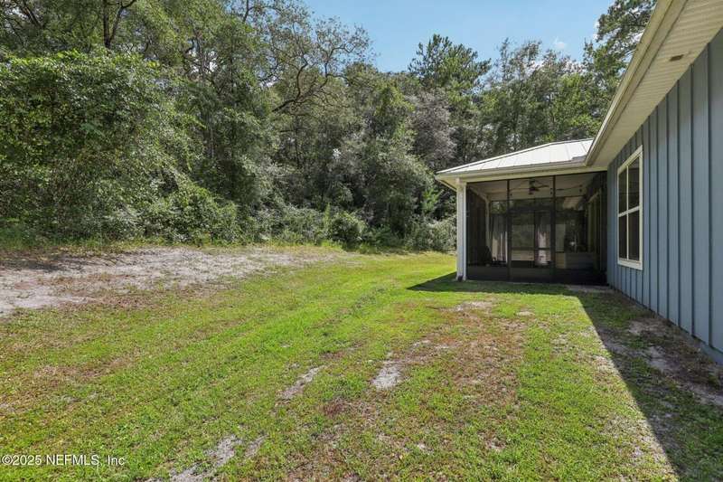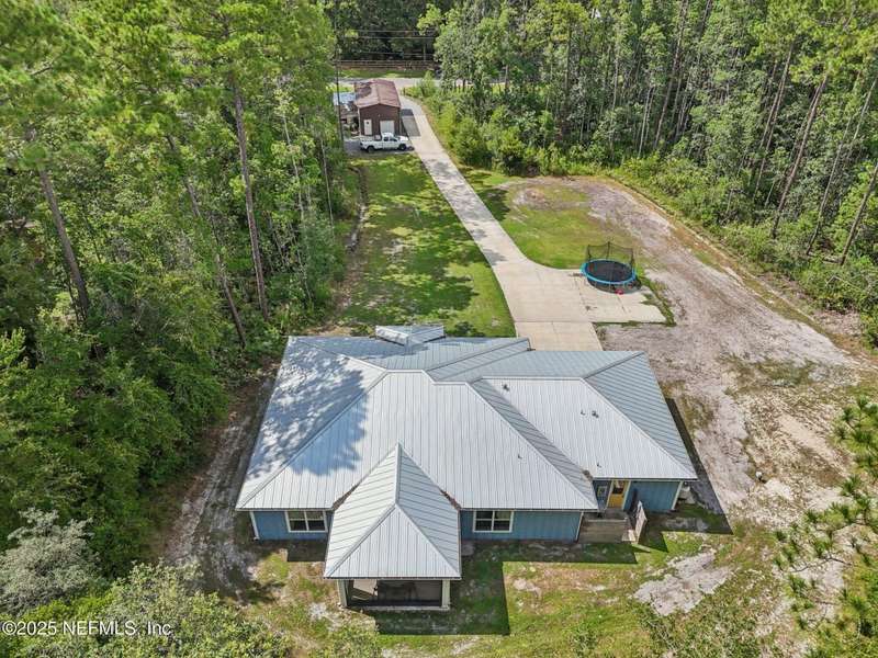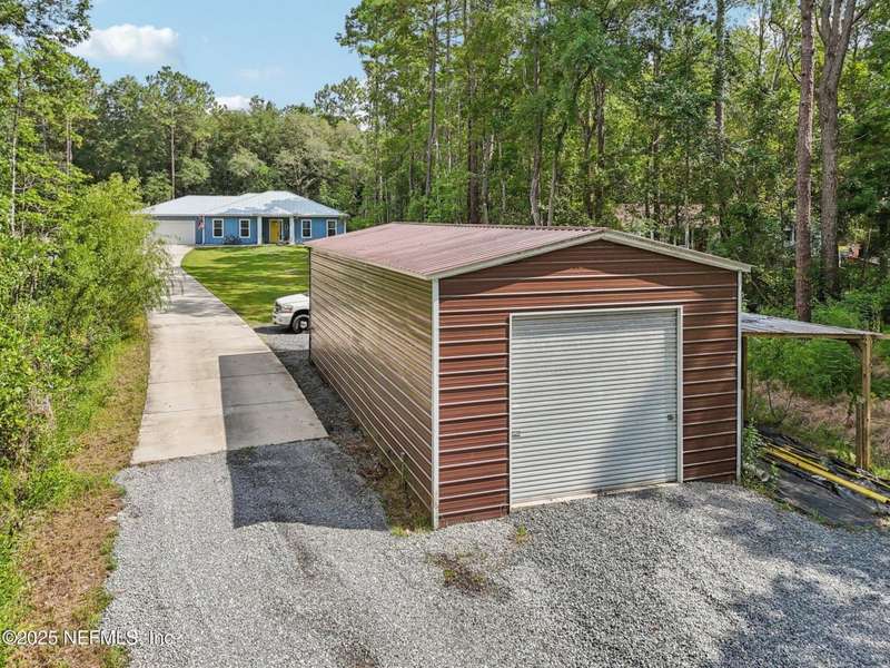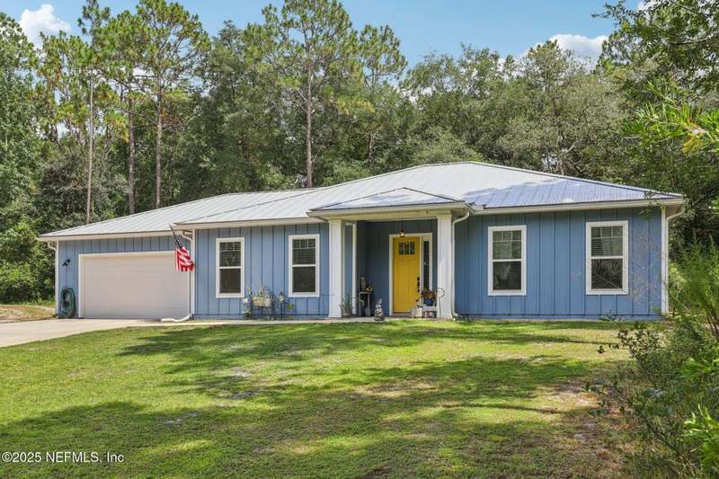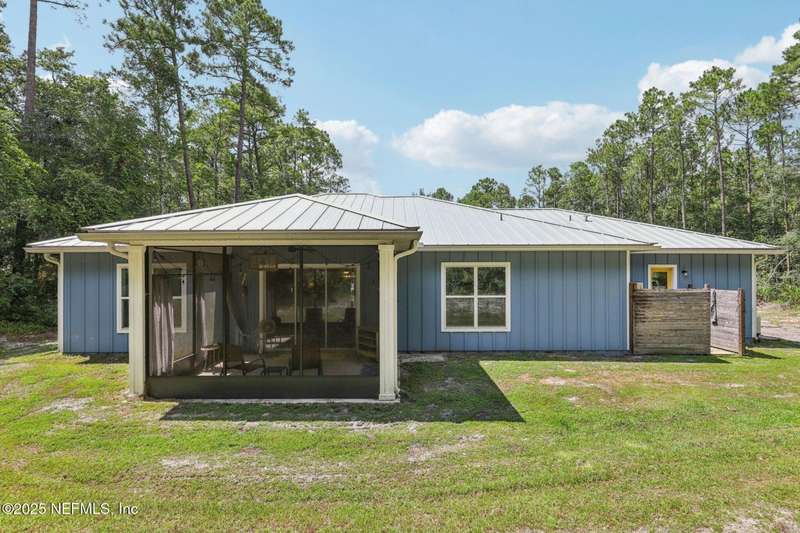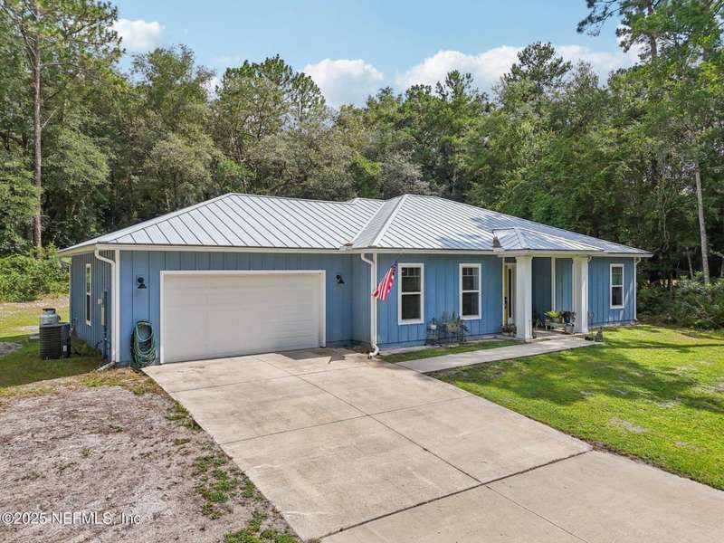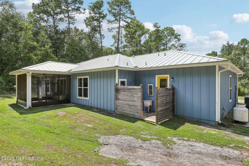 Discover this beautiful, nearly new custom home, where modern design meets comfort and functionality. Built just a few years ago, this home features a thoughtfully designed split-bedroom layout that offers both openness & privacy, along with 2X6 construction, which also allows for better insulation. Stylish barn-style doors and durable, attractive flooring add to the home's contemporary charm, as well as the country style metal roof.Each spacious bedroom provides a cozy, private retreat, while the expansive yard offers plenty of room for outdoor enjoyment. Hobbyists and adventurers alike will appreciate the easily accessible RV/workshop space. Additional highlights include a large utility room, convenient half bath, & an outdoor utility area with shower perfect for cleanup after work or play.Enjoy the benefits of custom-quality living without the wait, tucked away from the hustle & bustle. Don't miss this unique opportunity! Owner has a fully transferrable termite bond.