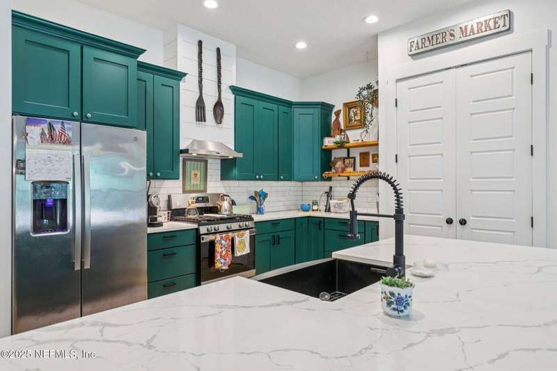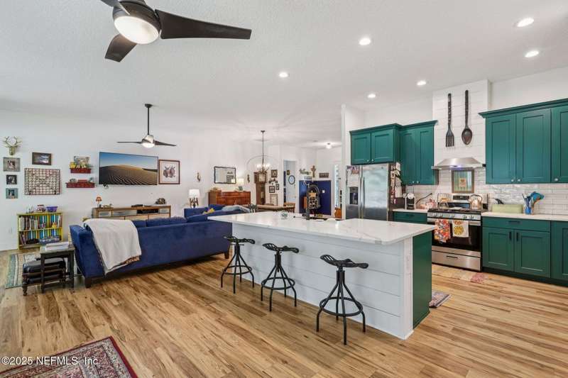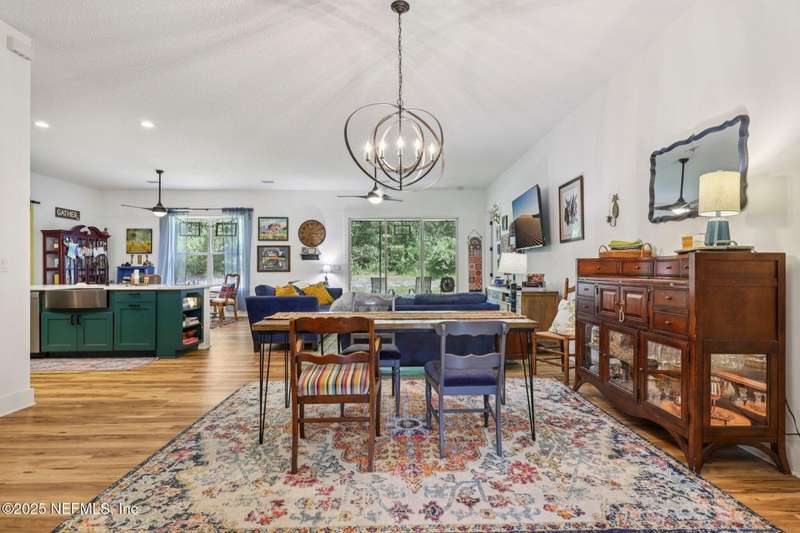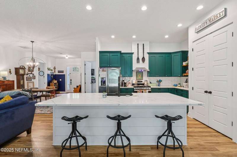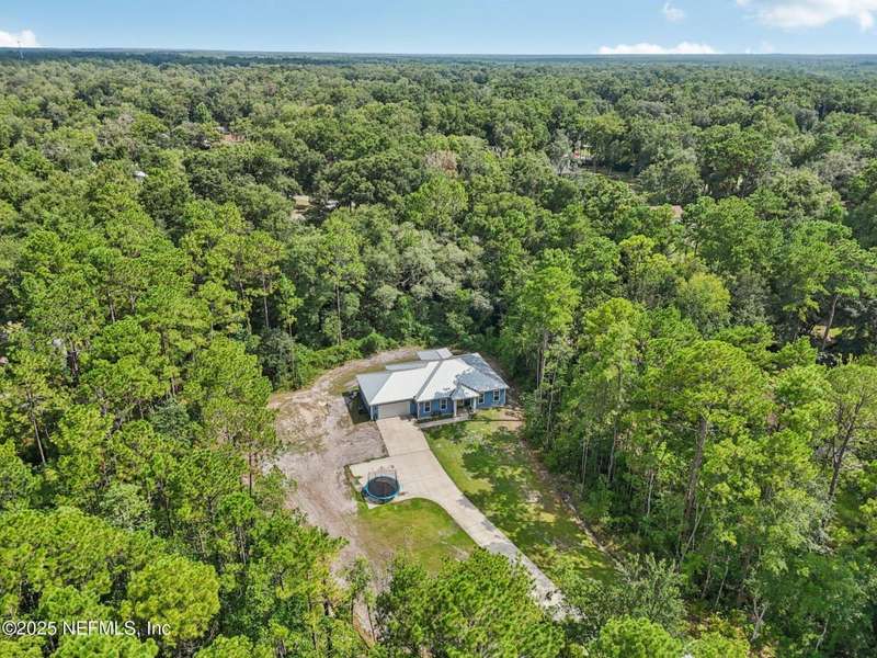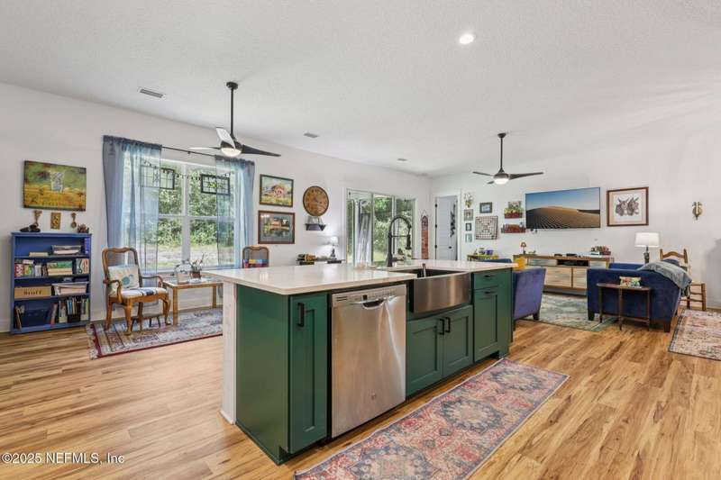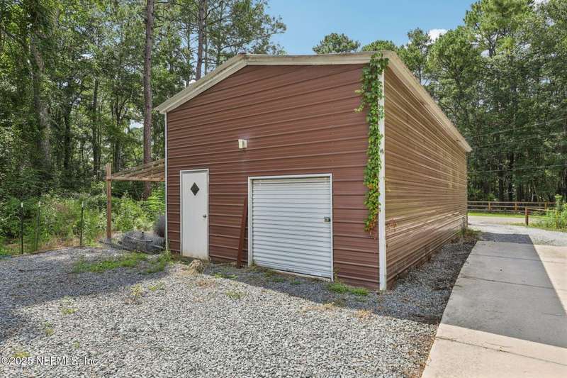 Discover this beautiful, nearly new custom home, where modern design meets comfort and functionality. Built just a few years ago, this home features a thoughtfully designed split-bedroom layout that offers both openness & privacy, along with 2X6 construction, which also allows for better insulation. Stylish barn-style doors and durable, attractive flooring add to the home's contemporary charm, as well as the country style metal roof.Each spacious bedroom provides a cozy, private retreat, while the expansive yard offers plenty of room for outdoor enjoyment. Hobbyists and adventurers alike will appreciate the easily accessible RV/workshop space. Additional highlights include a large utility room, convenient half bath, & an outdoor utility area with shower perfect for cleanup after work or play.Enjoy the benefits of custom-quality living without the wait, tucked away from the hustle & bustle. Don't miss this unique opportunity! Owner has a fully transferrable termite bond.