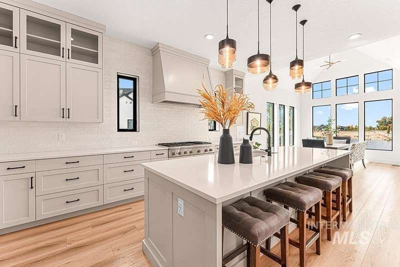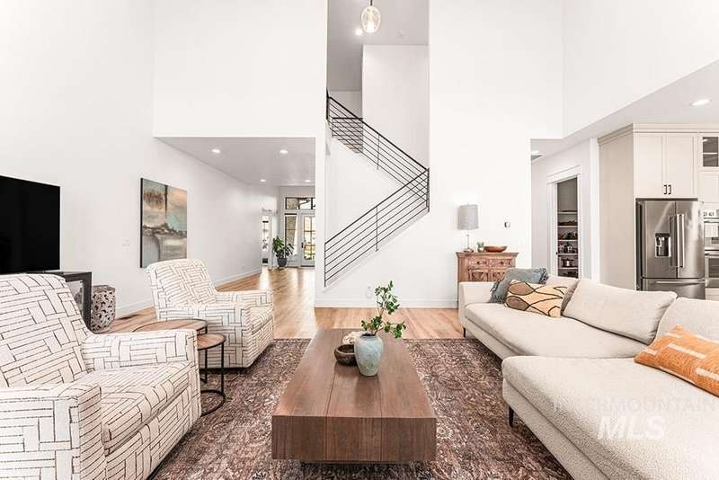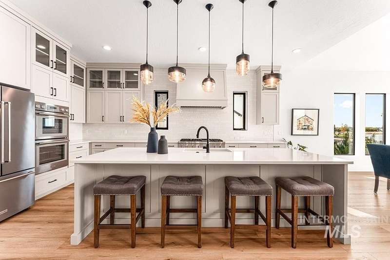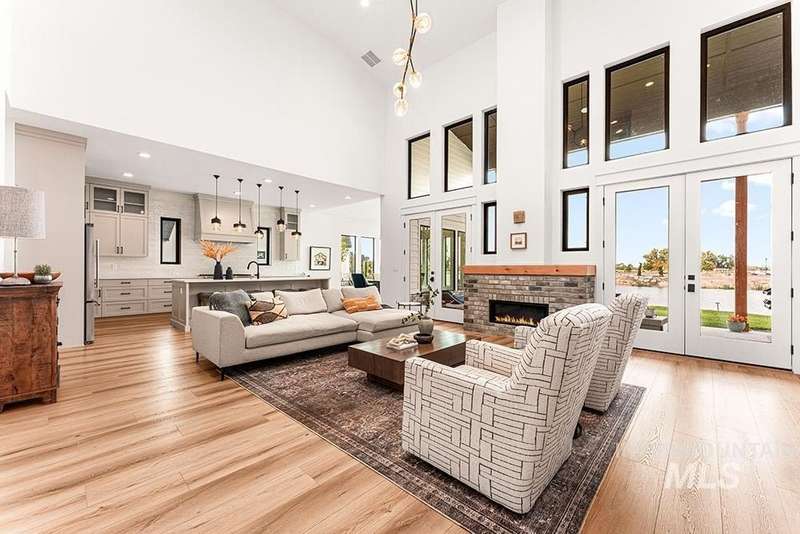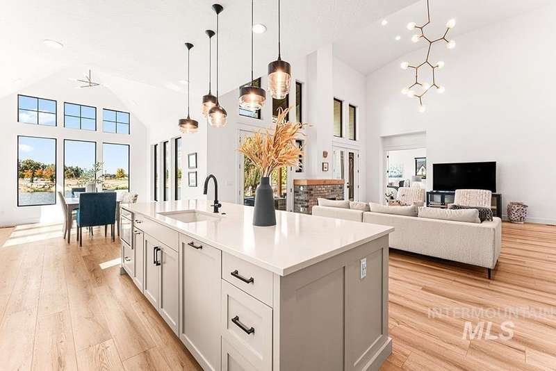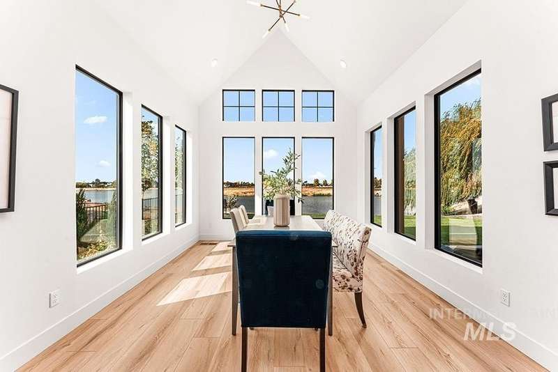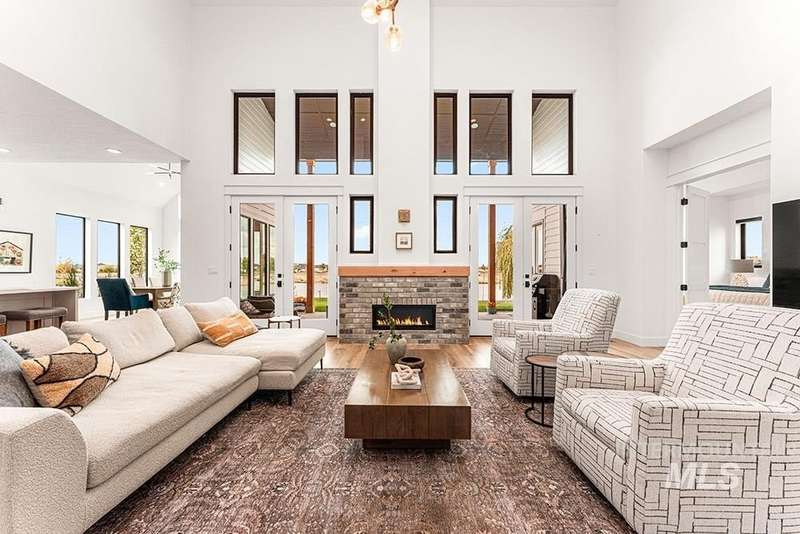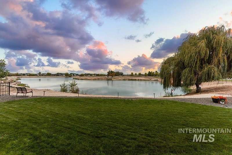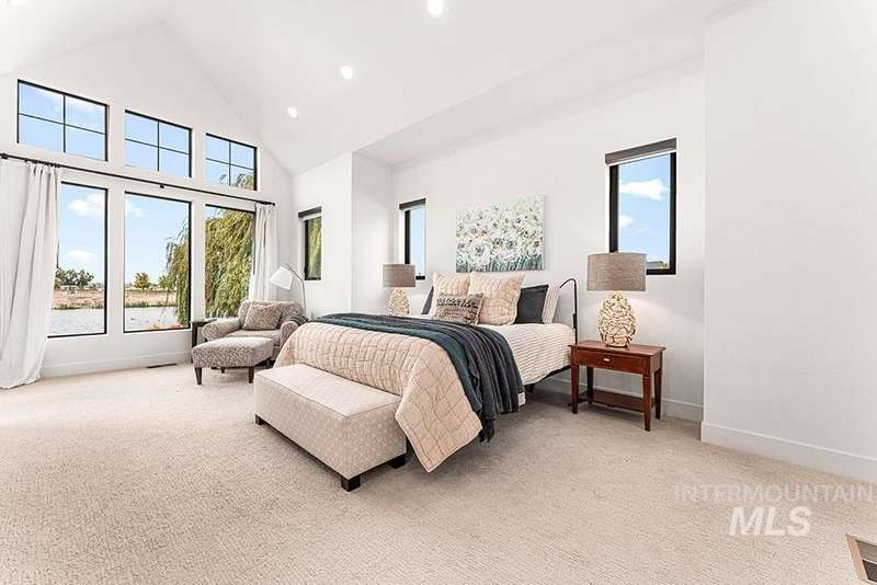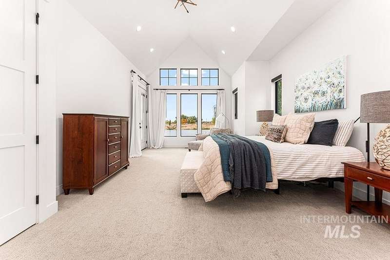 Spectacular waterfront estate, custom-built by Cedar & Sage on nearly half an acre in the prestigious Star River Ranch community! This breathtaking home is designed for both elegance and functionality, featuring a rare 41’ RV garage, soaring double story ceilings, and walls of windows that flood the interior with natural light while highlighting extensive custom details throughout. The heart of the home is a chef-inspired gourmet kitchen with an oversized island, quartz countertops, Thermador® double ovens, a Thermador® built-in microwave, floor-to-ceiling custom cabinetry, fully tiled backsplash, and a spacious walk-in pantry. The adjacent dining area boasts cathedral ceilings wrapped in panoramic waterfront views. The main-level master retreat offers a serene escape with private patio access, cathedral ceilings, picturesque windows, a beautifully tiled walk-in shower, and an expansive walk-in closet. Upstairs, a massive loft/bonus room provides the perfect space for entertaining, complete with additional areas ideal for a home office, study, or lounge. Enjoy seamless indoor-outdoor living with a wall of doors opening to the expansive covered patio overlooking a private pond. Star River Ranch is a premier estate community featuring multiple lakes and luxury waterfront homes, delivering the perfect blend of privacy, beauty, and refined living. Luxury living awaits in Star!