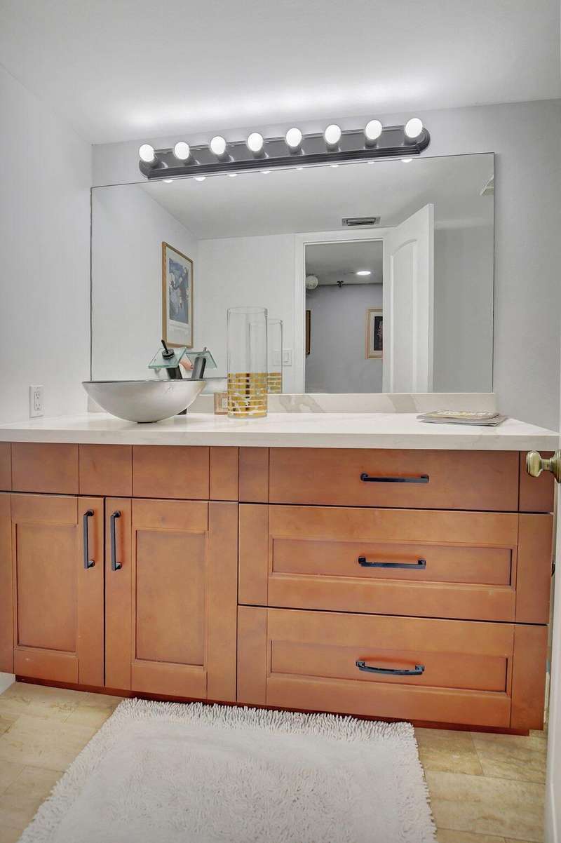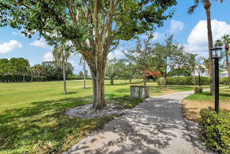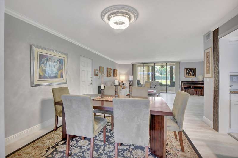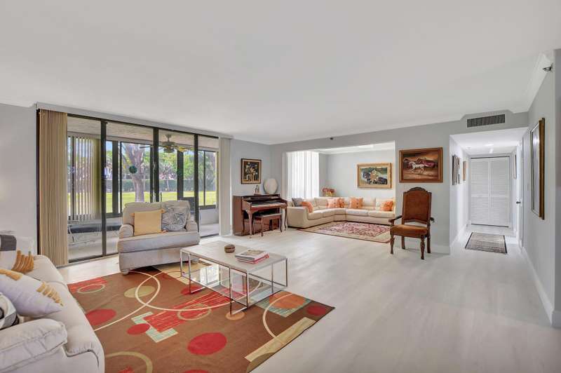 This stunning first-floor condo offers a spacious and modern living space with three bedrooms and 2 1/2 bathrooms. Recently updated with contemporary white shaker cabinets and sleek stainless steel appliances. The open-concept layout seamlessly flows into the living and dining areas, creating a welcoming and airy atmosphere. The large windows flood the space with natural light and provide a picturesque view of the lush surroundings from the back patio. The main bedroom boasts a huge en-suite bathroom with luxurious finishes and ample closet space. The second bedroom is perfect for guests, with the third bedroom being used as a den. Prestigious location and updated features, this condo is the perfect blend of comfort and style. New a/c and water heater. Must SEE!