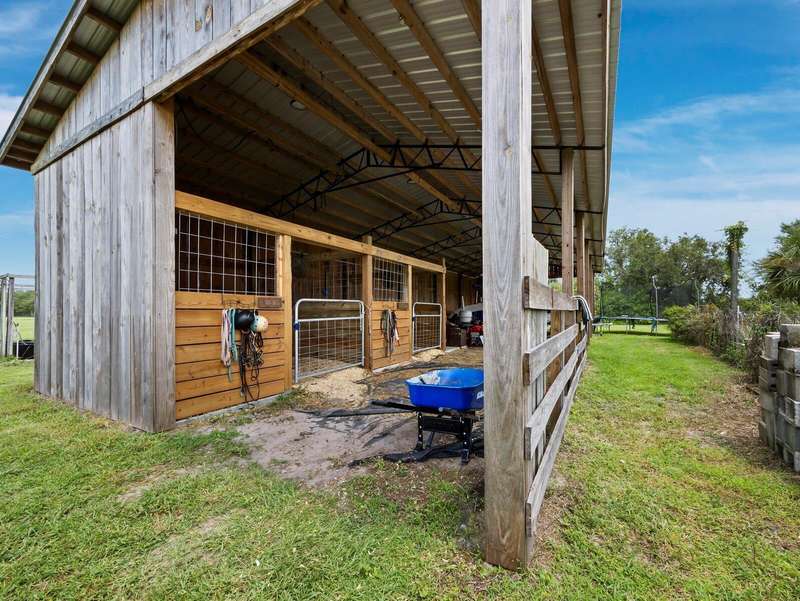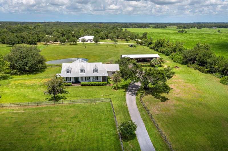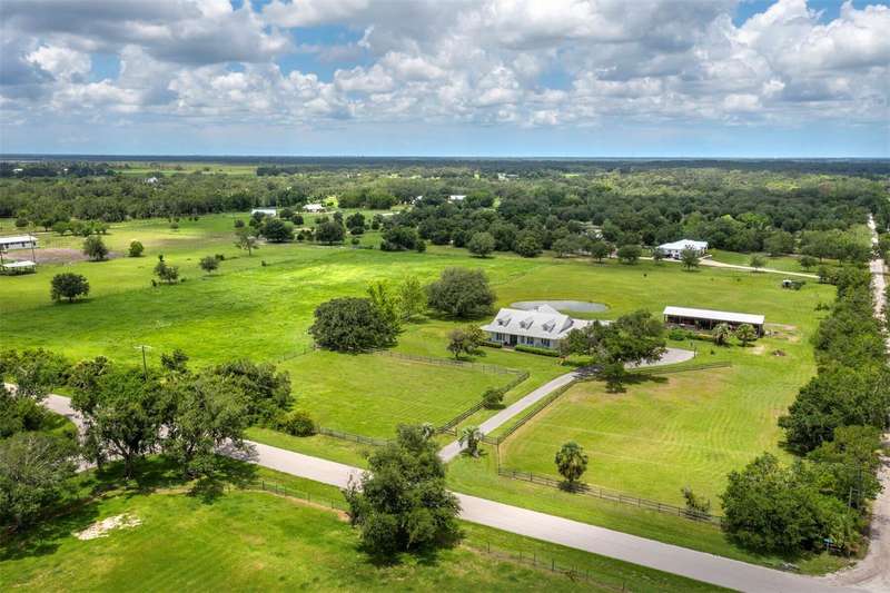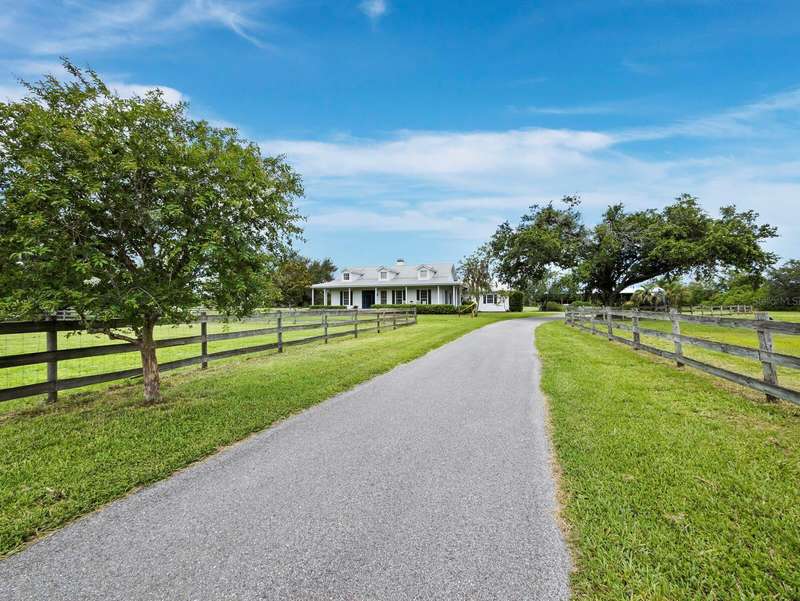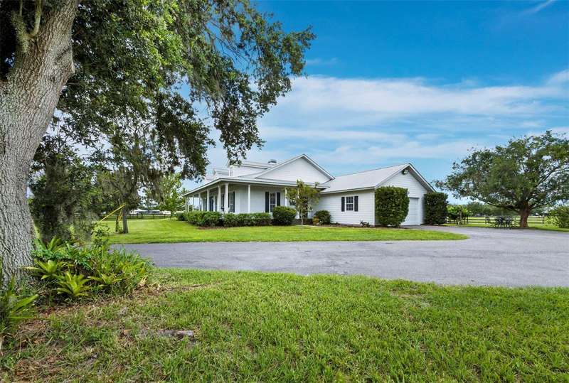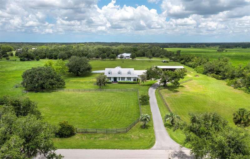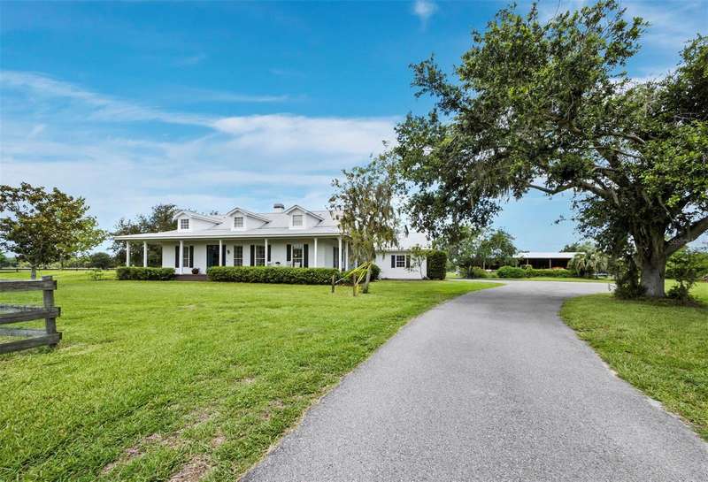 Have you been daydreaming of getting away from the hustle & bustle? Of a home with land, where you can look out your kitchen window and see your horses, cows, chickens, and garden? Well, look no further, because this is absolutely IT. A rare 10-acre parcel with a lovely, move-in ready home, plus a new pole barn with two stalls, all just minutes from the amenities of Sarasota; this kind of property is VERY few and far between. First, let’s talk about the land: a beautiful rectangular parcel where just about every inch is usable, flat, and cleared, the possibilities are endless. Enjoy the two fenced paddocks with their lush grass, 2-stall barn, enclosed garden area, and bass & bluegill-stocked pond just as it is, or add more – maybe some beehives are your pleasure, or perhaps a greenhouse? Other areas are partially fenced so more paddocks will be easy to add if needed and there is space for all of it here! The house is a gorgeous & welcoming Cape-Cod-style farmhouse with a huge front porch. (This is the stuff dreams are made of, seriously.) Soaring ceilings, a rustic stone fireplace, wood flooring, and open & updated kitchen give an elegant feel that also stays nice & cozy. The split bedrooms & extra half bath are convenient, and the size of the main suite will thrill you: a spacious & bright bedroom, 2 big walk-in closets, and an airy, renovated bathroom complete with claw-foot tub – it is just perfect. Sliding doors lead to the huge covered back porch, with plenty of space to lounge, dine, and cook in the magnificent outdoor kitchen, featuring a built-in grill, sink, refrigerator, and your very own pizza oven! There is also an enclosed outdoor shower with hot water just off the porch. Functionally, the property offers hardie board siding, a newer AC, recently re-screened patio, and a brand-new septic field, plus excellent & reliable high-speed internet service is available. The house is just 3 miles from the north entrance to Myakka State Park, 15 minutes from the freeway, and about 35 minutes will get you to downtown Sarasota. Although not part of an HOA, there are fun community events nearby throughout the year, from Halloween Hayrides to monthly pot-luck dinners at the Old Miakka School House Don’t wait to see this special home in this rare Old-Florida location. It is truly one-of-a-kind and, if you love animals, growing & cooking your own food, and plenty of space to breathe, it is the perfect place for your next chapter.