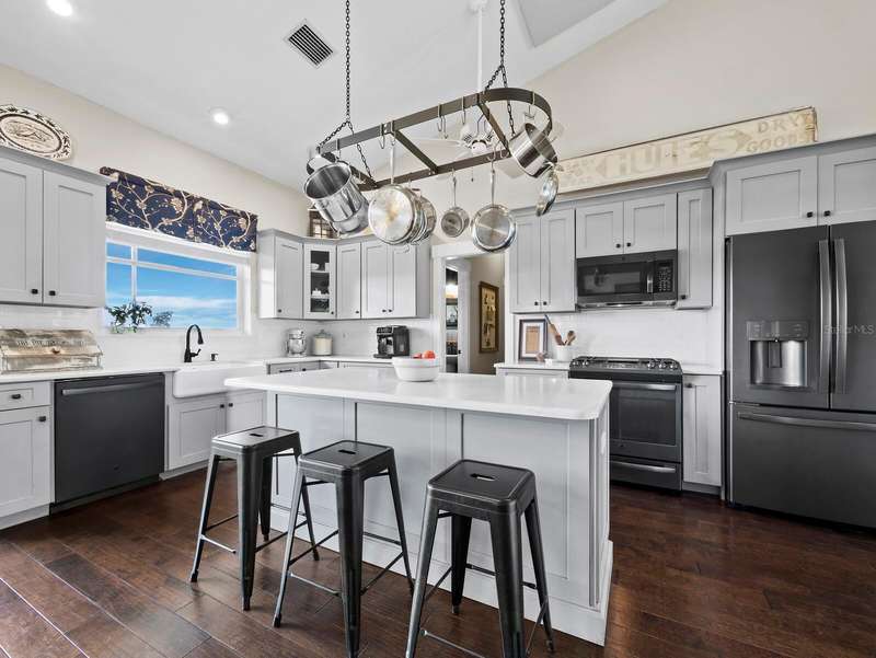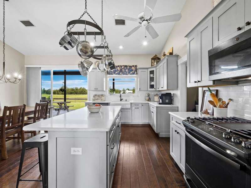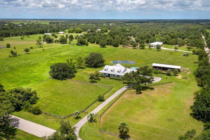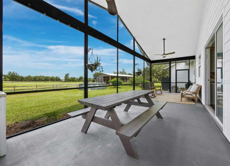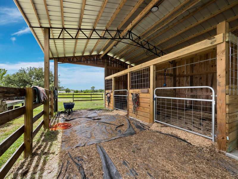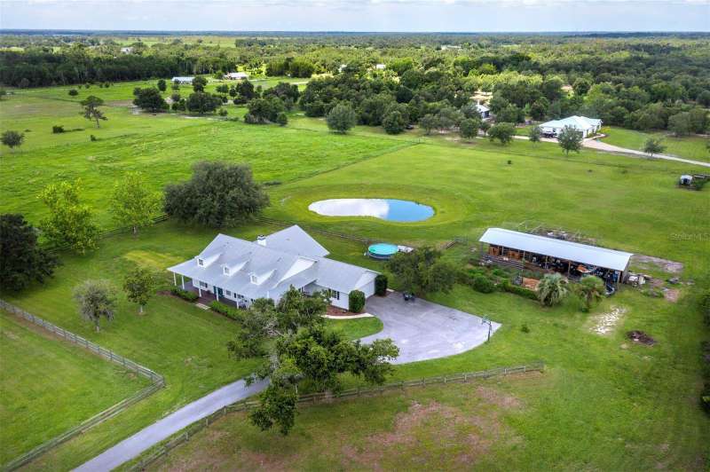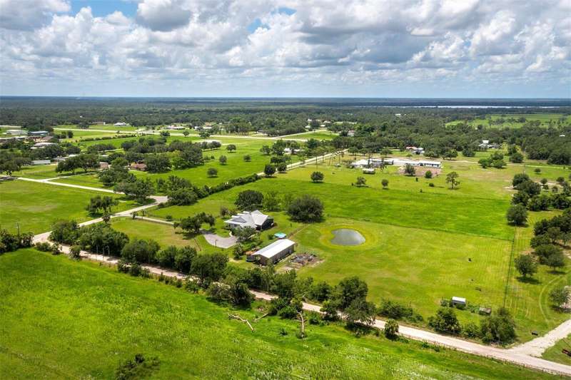 Have you been daydreaming of getting away from the hustle & bustle? Of a home with land, where you can look out your kitchen window and see your horses, cows, chickens, and garden? Well, look no further, because this is absolutely IT. A rare 10-acre parcel with a lovely, move-in ready home, plus a new pole barn with two stalls, all just minutes from the amenities of Sarasota; this kind of property is VERY few and far between. First, let’s talk about the land: a beautiful rectangular parcel where just about every inch is usable, flat, and cleared, the possibilities are endless. Enjoy the two fenced paddocks with their lush grass, 2-stall barn, enclosed garden area, and bass & bluegill-stocked pond just as it is, or add more – maybe some beehives are your pleasure, or perhaps a greenhouse? Other areas are partially fenced so more paddocks will be easy to add if needed and there is space for all of it here! The house is a gorgeous & welcoming Cape-Cod-style farmhouse with a huge front porch. (This is the stuff dreams are made of, seriously.) Soaring ceilings, a rustic stone fireplace, wood flooring, and open & updated kitchen give an elegant feel that also stays nice & cozy. The split bedrooms & extra half bath are convenient, and the size of the main suite will thrill you: a spacious & bright bedroom, 2 big walk-in closets, and an airy, renovated bathroom complete with claw-foot tub – it is just perfect. Sliding doors lead to the huge covered back porch, with plenty of space to lounge, dine, and cook in the magnificent outdoor kitchen, featuring a built-in grill, sink, refrigerator, and your very own pizza oven! There is also an enclosed outdoor shower with hot water just off the porch. Functionally, the property offers hardie board siding, a newer AC, recently re-screened patio, and a brand-new septic field, plus excellent & reliable high-speed internet service is available. The house is just 3 miles from the north entrance to Myakka State Park, 15 minutes from the freeway, and about 35 minutes will get you to downtown Sarasota. Although not part of an HOA, there are fun community events nearby throughout the year, from Halloween Hayrides to monthly pot-luck dinners at the Old Miakka School House Don’t wait to see this special home in this rare Old-Florida location. It is truly one-of-a-kind and, if you love animals, growing & cooking your own food, and plenty of space to breathe, it is the perfect place for your next chapter.