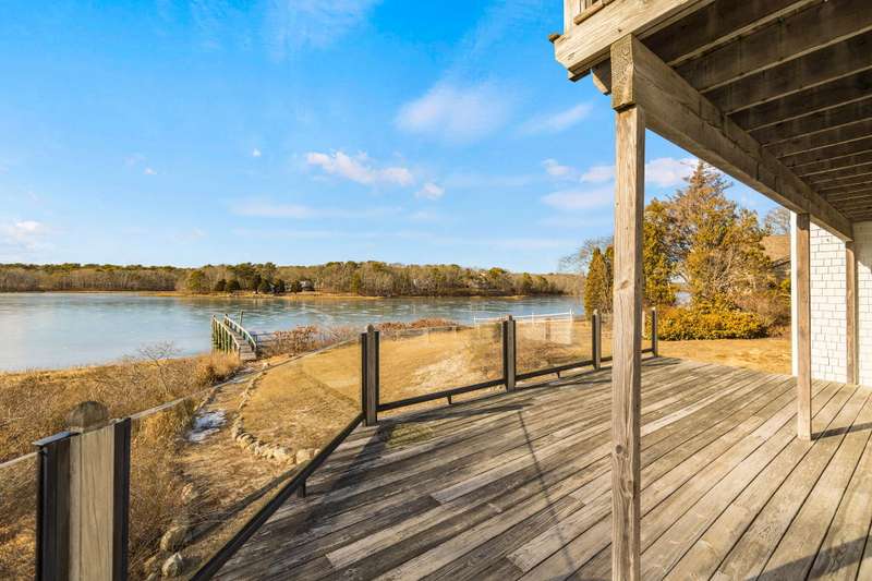 Welcome to this charming custom contemporary cape, nestled at the end of a quiet neighborhood on a waterfront lot on Bournes Pond. This 1985 home offers water views from every room. The first floor offers one floor living w/ primary bedroom & bath, living room w/ fireplace & sliders out to deck, dining room, kitchen & laundry room. The 2nd floor features 2 bedrooms, bath & family room w/ exterior balcony. The lower level is finished walkout. The private dock makes for easy launch of boat, kayak or paddleboard to explore Bournes Pond, a saltwater estuary leading out to Vineyard Sound. Only a mile from Menauhant Beach, this property can be enjoyed year-round w/ beautiful ocean breezes, delightful strolls (or Kayak) to the Sound, or clamming in Bournes Pond. And, it's only a short drive to the many ocean beaches, marinas, golf, miles of bike paths & Falmouth's famous shopping boutiques & lively nightlife adding to the enjoyment & lifestyle that only owning a home like this can bring!