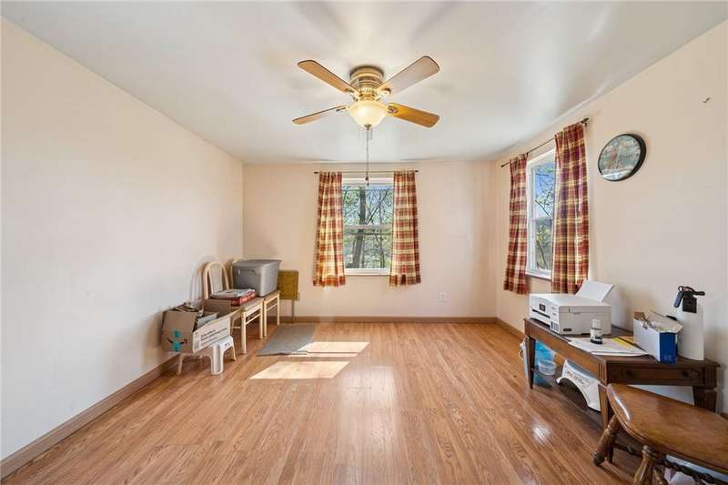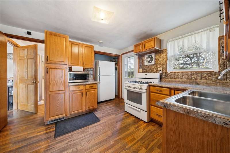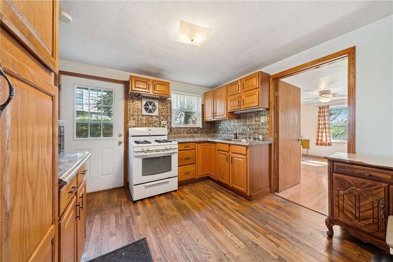 Tucked away on a quiet dead-end street, this unique 4-bed, 3.5-bath home offers the perfect blend of seclusion & convenience. Step through the front door into a bright & airy sunroom, where windows showcase breathtaking views & flood the space with natural light. The main level features hardwood floors & a flexible layout ideal for multi-generational living. Just off the living room, the in-law suite includes its own private entrance, full kitchen, bedroom, & full bath?perfect for guests or extended family. Upstairs, you'll find 3 generously sized bedrooms & 2 full baths, providing space & privacy. Outside, a NEW large fenced-in yard invites entertaining, play, or peaceful evenings. There is also a brand-new shed. The oversized 2-car detached garage is a standout feature?heated & equipped with a half bath, plus a second-floor space with potential to be finished into additional living quarters, an office, or studio. Don't miss this gem offering space, versatility, & privacy all in one!