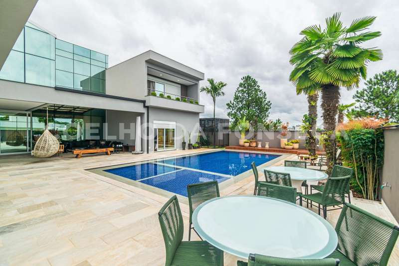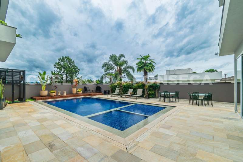 Belíssima casa moderna ! Pé direito duplo , com excelente luminosidade natural. Escritório, Home, diversas salas , possui suíte no térreo. Ambientes totalmente integrados e bem distribuídos. Completa em área de lazer, com piscina aquecida, sauna, hidro , academia, ampla área gourmet . Espaço pet. Condomínio cercado de muito verde com infraestrutura de lazer e segurança.