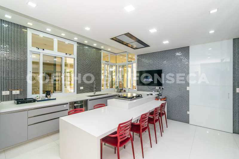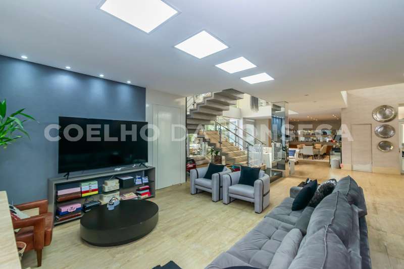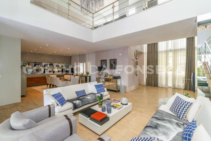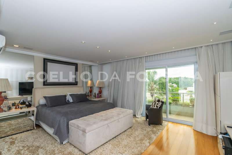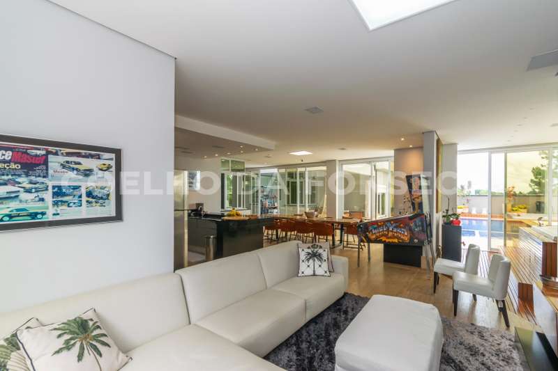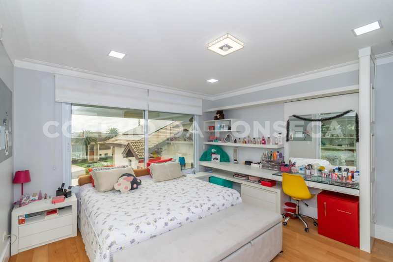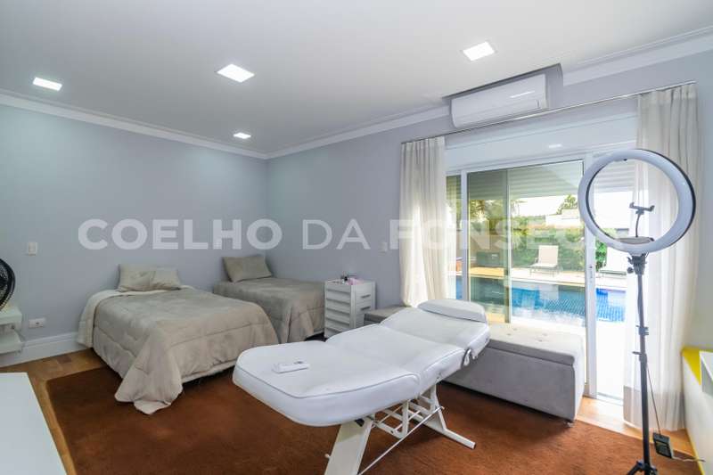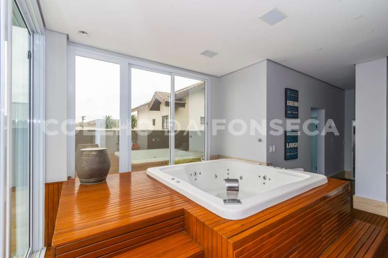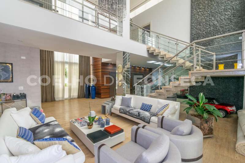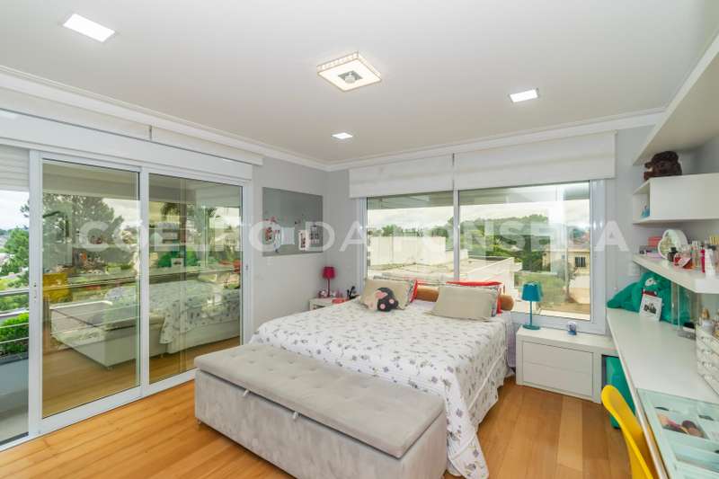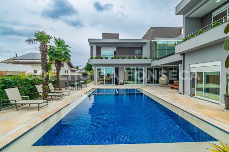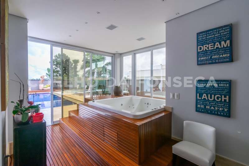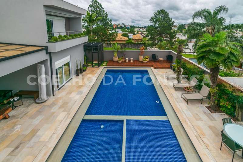 Casa em Condomínio no bairro Aldeia da Serra com 942m² área construída, 5 dormitório(s), 5 suíte(s), 5 vaga(s), 7 banheiro(s), piscina, escritório, sauna, depósito, ar condicionado, dep. de empregados, reformado (a), varanda, aquecedor solar, pé direito duplo.