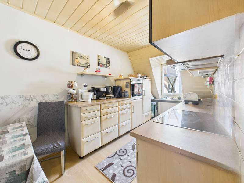 This cozy 2-room apartment is located on the 3rd floor (top floor) of an apartment building built in 1901. With around 50 m² of living space, it impresses with its clear and functional layout. The hallway leads to the kitchen, the daylight bathroom and the living room. This forms the heart of the apartment and is generously proportioned so that a comfortable living and dining area can be set up here. From the living room, there is access to the adjoining bedroom, which serves as a private retreat. The apartment is furnished with easy-care laminate and tiled floors. The unit is heated by a gas heating system, which was renewed in 2017. The building itself has also been continuously modernized in recent years: the front door, cellar door and letterbox system were replaced in 2023, and the pipes in the cellar were completely replaced in 2024. In addition, the roof and façade are scheduled for renewal in 2025, which will further increase the attractiveness of the property. The bathroom has a window, which ensures brightness and good ventilation. The rooftop location creates an overall friendly living atmosphere with plenty of comfort. The apartment is currently rented and generates a monthly rental income of 390.00 euros cold. It is therefore suitable both as an attractive investment and for owner-occupiers who appreciate a cozy attic apartment with a classic floor plan.