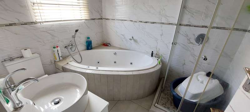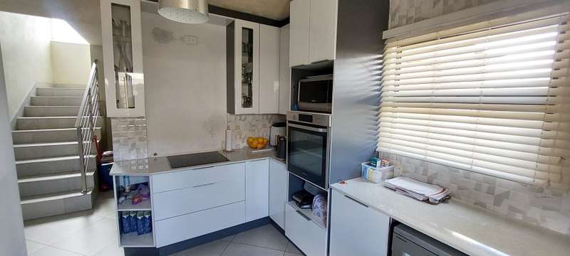 Stunning 4-Bedroom Double-Storey Home with Cottage and Outdoor Living Spaces Step into this elegant home, offering modern design and comfortable living for families or entertainers alike. Downstairs: Enjoy a contemporary kitchen with exquisite finishes, a welcoming living area, one spacious bedroom, and a well-appointed bathroom. Upstairs: Retreat to a cozy pyjama lounge with a balcony where you can relax with family and friends and three bedrooms, including the luxurious main bedroom with a full ensuite bathroom. Two additional bedrooms share another thoughtfully designed bathroom. Cottage: The property includes a fully equipped cottage featuring a kitchen, living area, bedroom, and bathroom—perfect for extended family, guests or extra-income flatlet. Outdoor Spaces: Relax and entertain in the lovely braai area on the uncovered patio. Parking: Two garages and a covered carport provide ample space for vehicles. This property blends style, space, and functionality seamlessly. Contact me for viewing !!