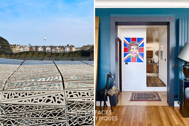 Two east-facing balconies extend the living space, offering breathtaking views of the Jean Bouin stadium, renovated by architect Rudy Ricciotti, as well as the Molitor gate and its tree-lined surroundings.