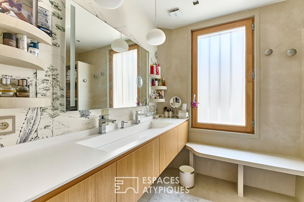 The 7 sqm bathroom, inspired by oriental hammams, creates a soothing interlude.