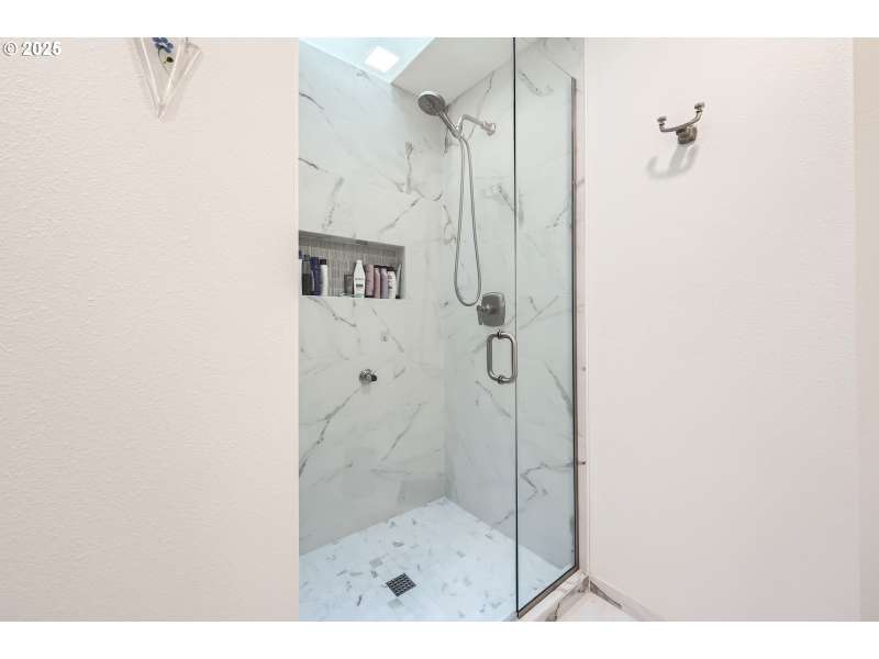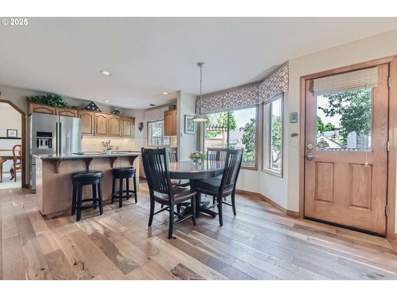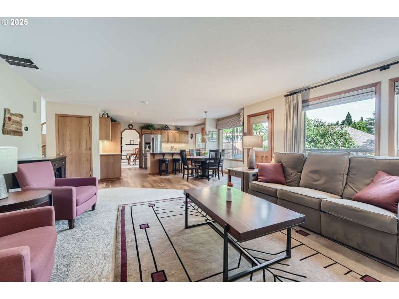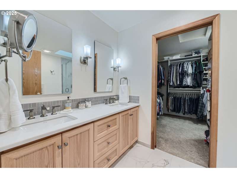 On the market for the first time since construction, this remodeled Rock Creek traditional is perfectly situated on a quiet loop street with an exceptionally private lot. The home has been lovingly maintained by its original owners and impressively updated with new flooring, remodeled bathrooms and kitchen, fresh paint, and more! Gourmet kitchen features abundant cabinetry, wood floors, quartz countertops with full-height tile backsplash, touchless faucet, and recent appliances, including Jenn-Air cooktop, oven, and microwave. The kitchen is open to the dining nook and family room, offering new carpet, custom built-ins with sound system, and recent gas fireplace with stylish tile surround and traditional mantel. Deluxe primary suite features a custom California closet walk-in closet, and a fully remodeled bathroom, boasting custom vanity with quartz countertops and dual sinks, heated tile floors, tile walk-in shower with frameless door, and skylight for excellent natural light. There are three more generously sized bedrooms upstairs, plus a remodeled hall bathroom with heated tile floors, new bathtub/shower, abundant storage, and stylish Kohler fixtures. High-quality construction with six-inch walls, solid cedar siding, Milgard windows oversized two-car garage, and ample storage space, including floored attic storage. Additional upgrades include Hunter Douglas window coverings, recent 50-year composition roof, 2022 HVAC with Nest system, and more. Oversized lot with fenced backyard, great privacy, recently refinished straight cedar deck with built-in seating and privacy screens, paver patio, sprinklers, raised beds, mature landscaping, huge built-in garden shed, and pad with hot tub hook-up. Unbeatable location, close to neighborhood schools, parks, Rock Creek Country Club, and local shops and restaurants!