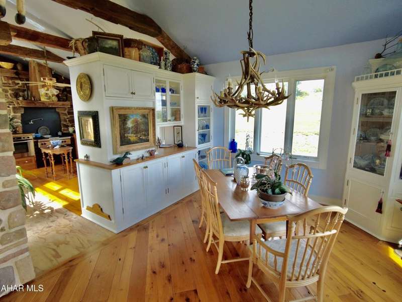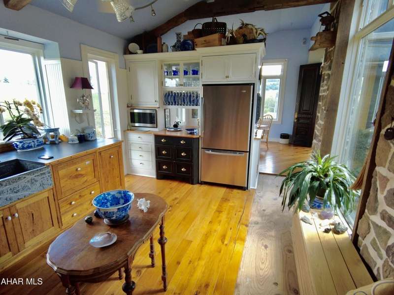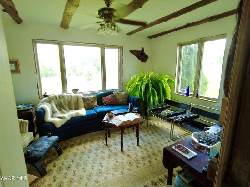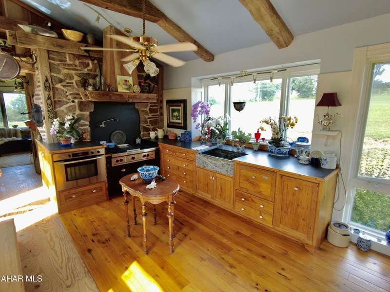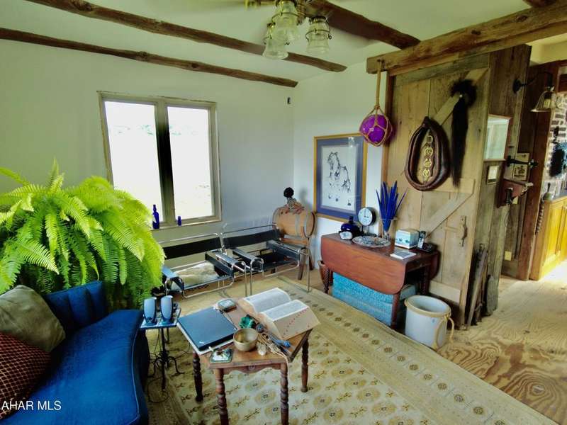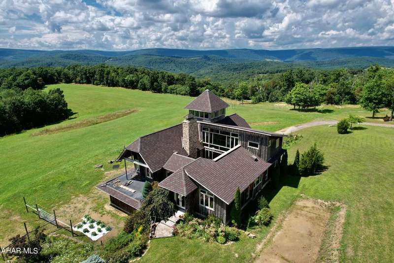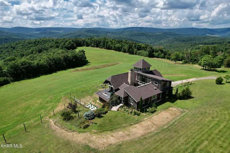 Check out the virtual tour! Experience the many unique 'facets' of this 'one of a kind GEM' overseeing Pennsylvania's Laurel Highlands' mountains.Perched high up, one has a commanding 360 degree view of the surrounding mountains and valleys ... some, 30 miles away! Easy access to main roads for convenience. Your own 'slice of heaven' in 'God's Country.' A masterpiece of thoughtful, intuitive design combines the ambiance of 'The Warm Hearth' meets 'Contemporary Aesthetics'. Comfort and convenience are intertwined throughout every aspect of the home and provenance abounds. Many building materials and finds (most locally sourced) are from centuries past and re-purposed in imaginative ways, contributing to the tenor of this home. Designed for the connoisseur with a discerning eye for quality and detail. Ingenuity, humor as well as functionality and comfort. Delight in the airy, sun filled open spaces enabling connectivity as well as peace and quiet. Explore from the foyer's (now interior) 'antique, 1860's, 8 foot+ high, walnut double entry doors to the 4'' level observation tower, experiencing each unique space that contributes to the home's overall continuity. The gourmet kitchen is designed for the serious chef with intuitive, convenient functional amenities. Bon Appetite! Top stainless steel appliances. The cabinets are custom built on site, hand crafted wormy chestnut, slate counter tops with antique white oak edges with antique nail heads, soapstone farmers sink. Adjacent 'butlers' cabinets are highly detailed, solid wood, painted white with antique chestnut counter. These cabinets continue into the adjoining dining room. A custom, one of a kind, china cabinet is lined with the wormy chestnut. The flooring is made from 200 + year old antique white oak beams ... exquisite. Half bath has custom wormy chestnut wainscoting and trim. Floating 3 ?' thick spalted pine counter with antique copper sink, floor is pegged antique grainery wood planks. Antique barnwood sliding door on authentic track.Careful consideration has gone into all design aspects from the imported antique French door handles/levers, the huge, bright horse stalls and management to the landscaping (including a purple beech tree). Marvel at the amazing emerging sunrise, the spectacular blazing sunsets and the expansive starry night sky complete with the Milky Way! There is still work to be completed in some rooms. Most of the materials are on site which include trim, flooring, lighting with ceiling fans to be installed. The hard parts are done.Oil, gas, and mineral rights convey with sale.Follow this link to see extra photos:https://photos.app.goo.gl/8dJf8s6PCxnmZSFs5
