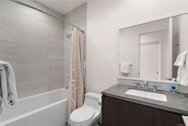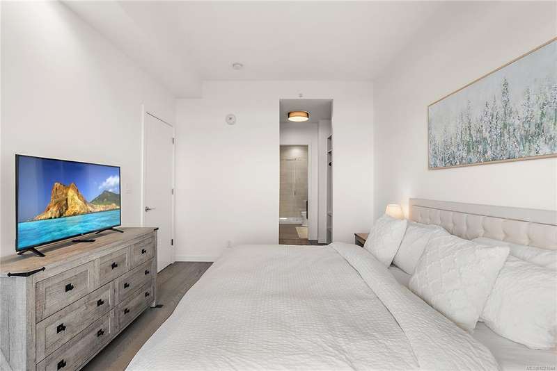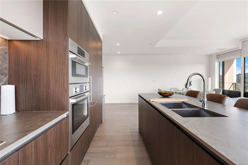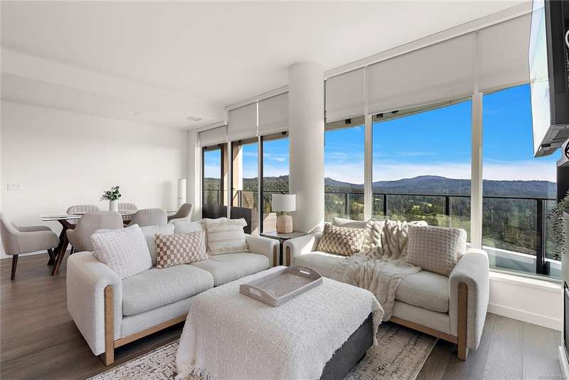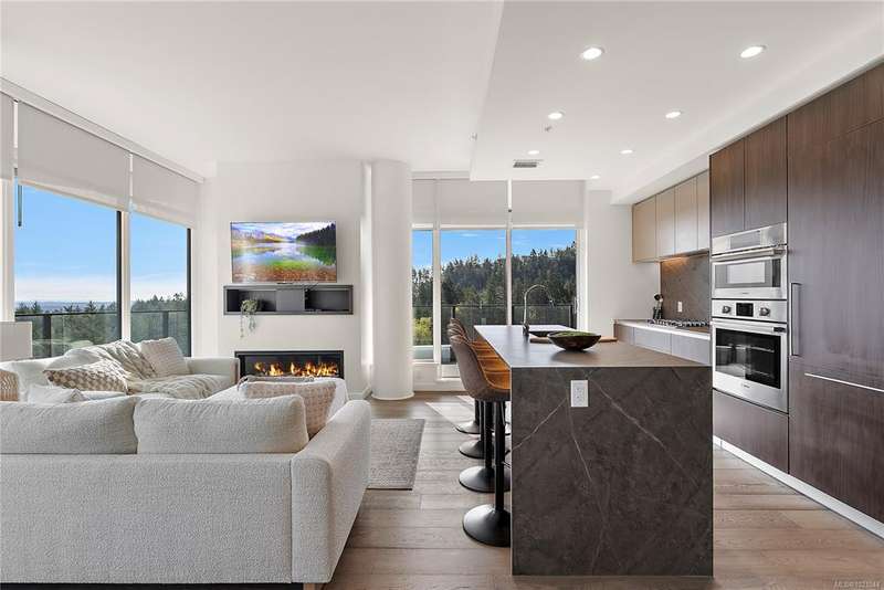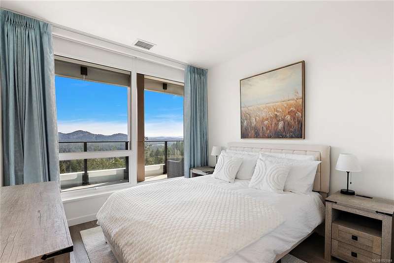 Absolutely stunning views from this 14th floor, corner condo in the stylish and modern, One Bear Mountain. This ultra exclusive 2 bed, 2 bath plan boast over 1300 square feet with a formal entryway and a distinct separation between the living/kitchen/dining and the functional bed/bath and utility areas. Engineered hardwood, floor to ceiling windows, high end Bosch appliances, quartz counters, italian cabinets and gas fireplace are all interior features of the home. A 500 square foot, covered balcony wraps around the entire plan, framing breathtaking panoramas of the valley below all the way out to Mt Baker. Incredible resort style amenities offer an unmatched resident experience. Concierge services, Grenoble Sky Lounge and Business Center, Gym, Yoga Studio, Outdoor Pool and Sundeck plus several indoor and outdoor spaces. Pet friendly building, 2 parking stalls, EV charger, separate storage and in unit.Live, work and entertain in luxury in the exclusive, Bear Mountain community!