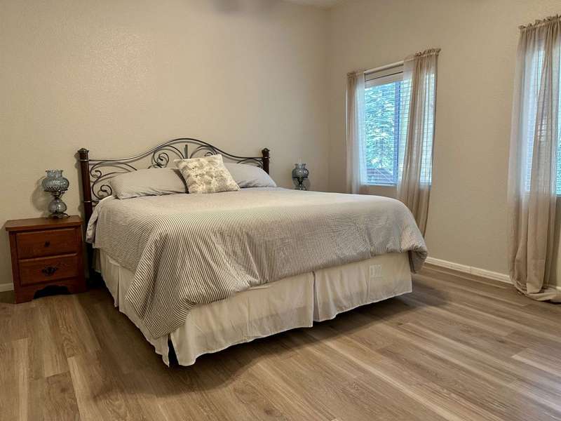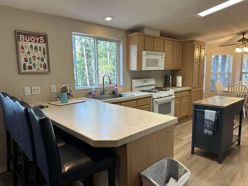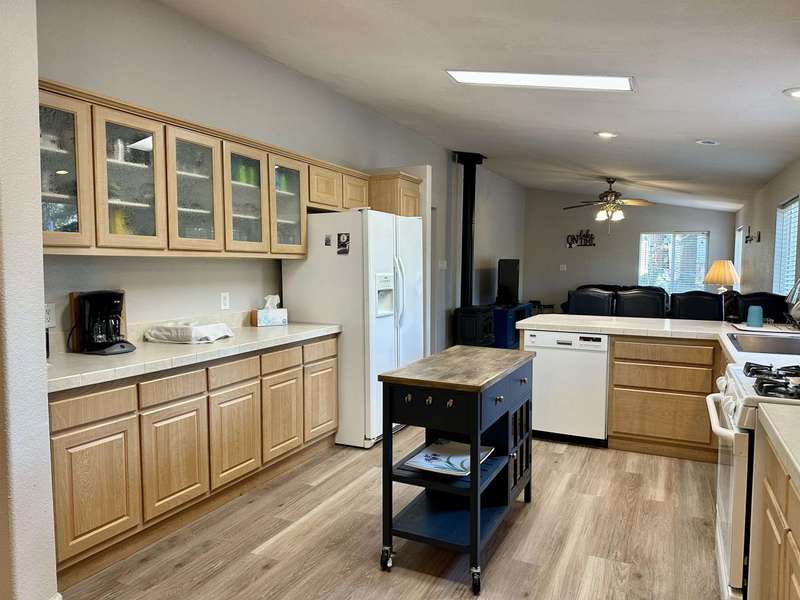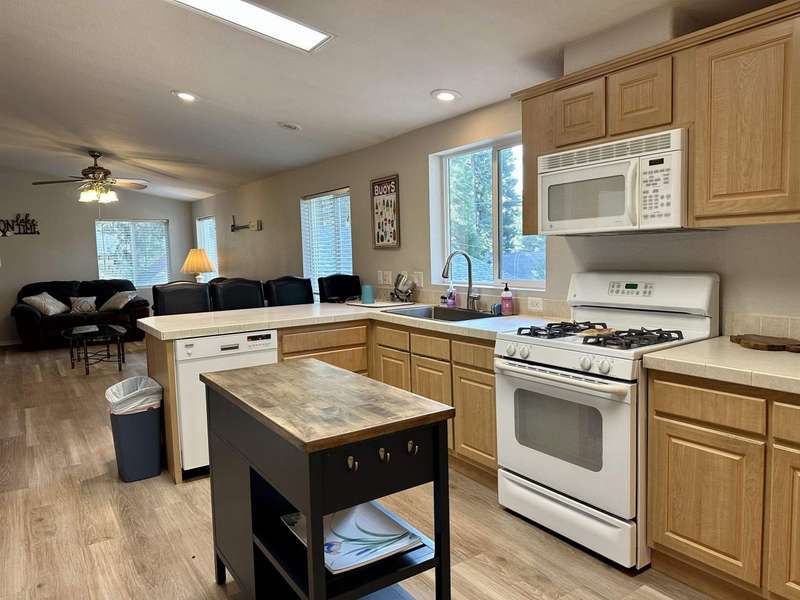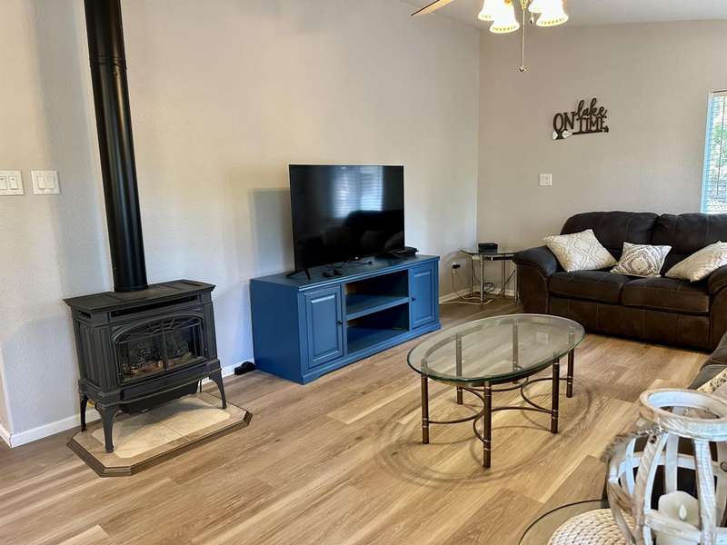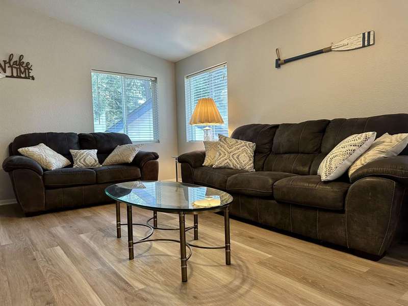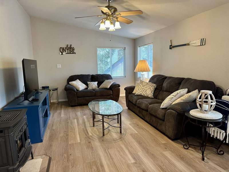 Wonderful Lake Almanor Home This newly renovated home is waiting for you to live the dream! What could be better than vacationing in a beautiful mountain community? This home boasts 3 bedrooms and 2.5 bathrooms. Enjoy the lovely covered porch entry?step inside and be wowed by the open living and dining area. The kitchen is very functional and includes a breakfast nook that overlooks another living room complete with a gas log fireplace. The master bedroom features an ensuite and a walk-in closet on one side of the home, while the two guest bedrooms offer plenty of space on the other side. There's a beautifully remodeled bathroom and a conveniently located half bath just off the main living area. The home has forced heat for chilly mountain nights, A/C for warmer months, and is topped off with a Generac generator for peace of mind. A large two-car garage provides plenty of room for your toys. This property backs up to a large undeveloped piece of land, offering access to hiking and nature right in your backyard. It's located at the end of a cul-de-sac, adding extra privacy, and is close to restaurants and marinas. So just bring your toothbrush as this home comes fully furnished.