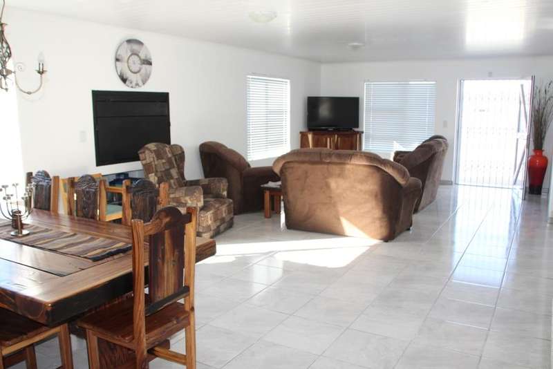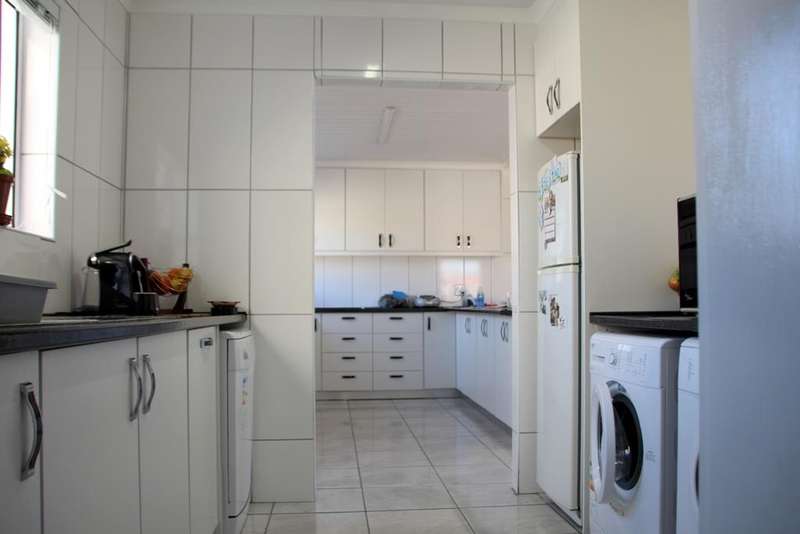 The 2 bedroom house is 158sqm, and the 2 bedroom flat is 96sqm. Both have a double garage. They are also separately walled so you have two properties, each with own entrance and very private. Main House Good finishes have been used throughout, with special sized aluminium windows, safety glass, and burglar bars. Blinds and Air Conditioner. Trellidoor safety gate at the entrance. Electric gate at the driveway. All taps and shower heads are Grohe quality. Great Open plan living with enough space for 8- seater table, The living area includes a built in braai. Lots of cupboards in the kitchen and an eye level oven. Separate scullery with space for washing machine, tumble driver and dish washer. Double garage with automated doors has direct access to the scullery. 2 Bedroom Flat: This is perfect for the extended family, or as an extra rental income. Currently rented out @ R9000/month The 96sqm flat has a separate entrance and own full yard. 2 bedrooms with build in cupboards, sharing a shower bathroom. Open plan living room and kitchen which opens on an outside patio with braai facility. There is a Double garage with extra build in cupboards and fitting for your washing machine and exit door to the washing line at the back. The area is paved and the double garage has an automated door as well as the access gate. Fitted with Wifi and DSTV connection Do not delay, contact me for an appointment to view.