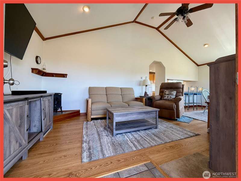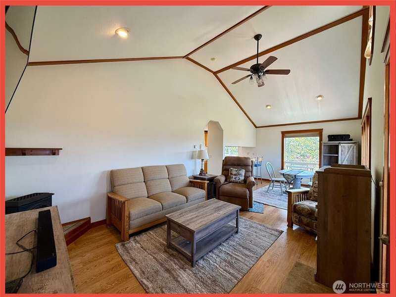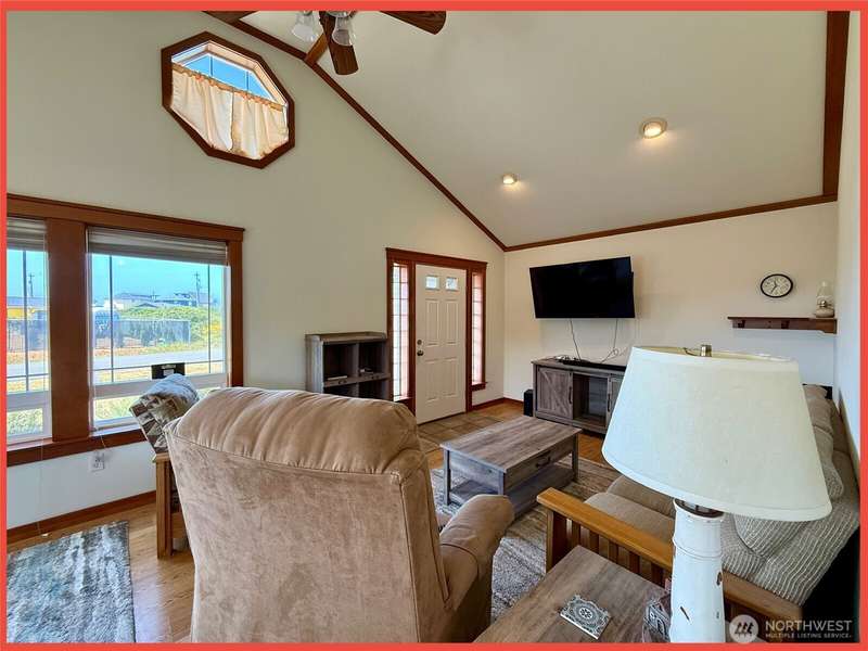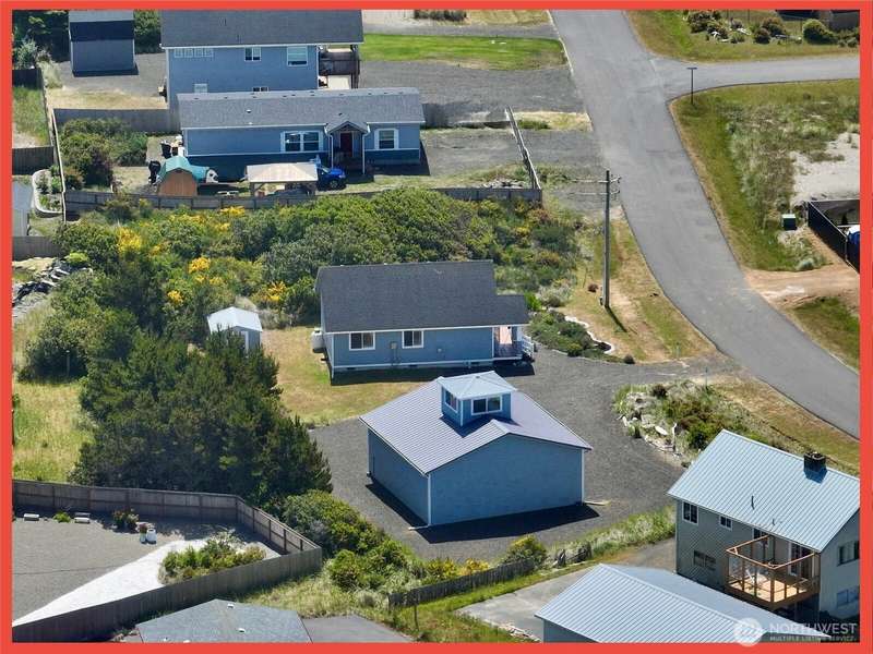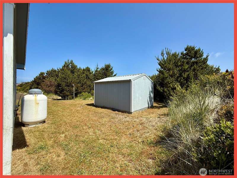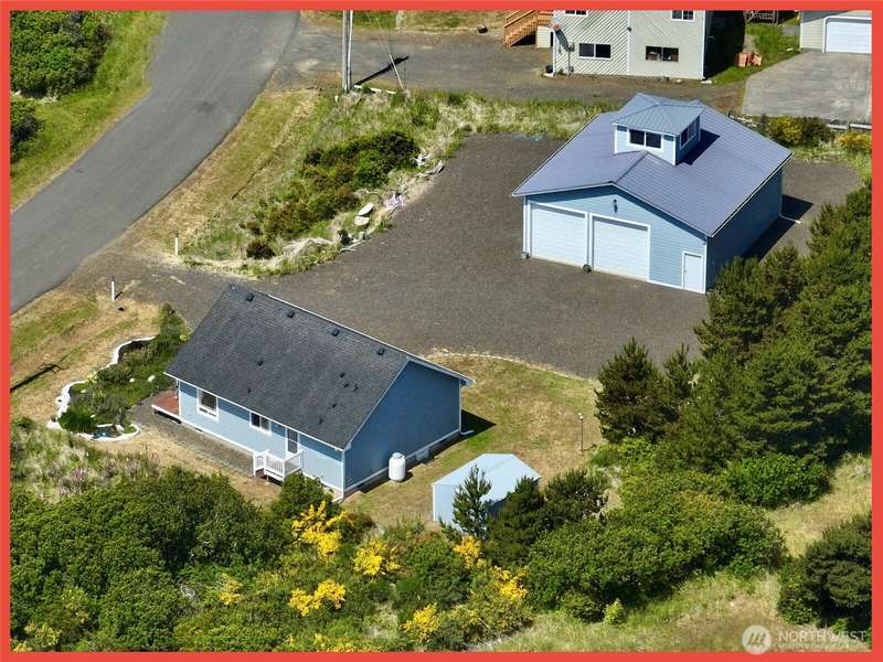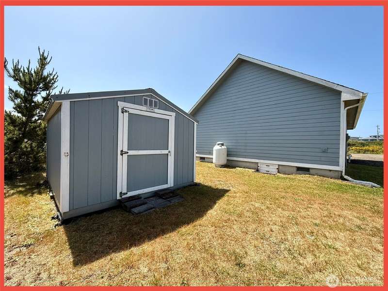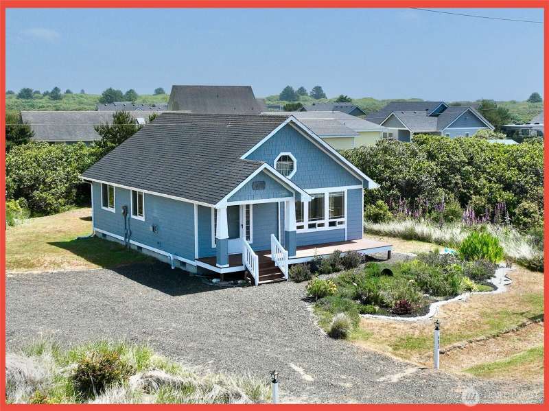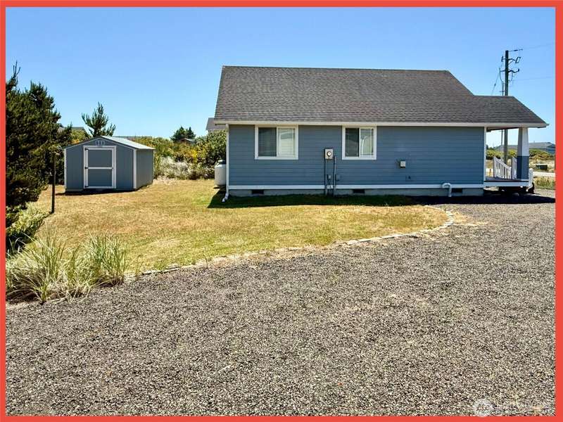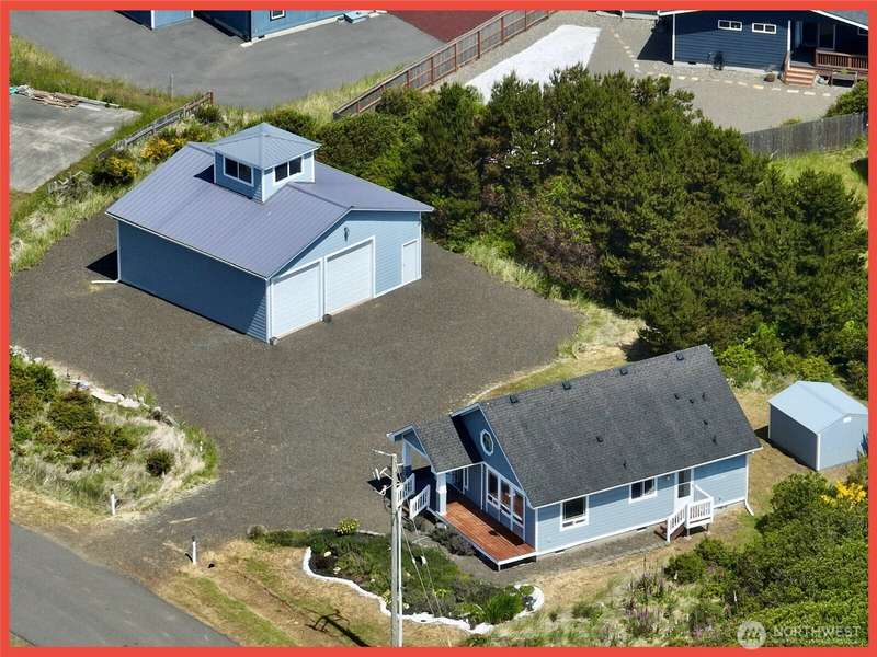 Welcome to Southern Komfort at beautiful Ocean Shores, WA! This furnished and move-in ready residence on a double lot is a mere hop, skip and a jump to the ocean beach path 8 lots away. Darling 1-story ~ 884 sf ~ 2 Bedrooms ~ 1 Bathroom. Large front porch. Step inside to the sunny great room featuring vaulted ceilings and a free-standing propane stove. Kitchen with plenty of storage and prep space and a breakfast bar. Dining room with wall of windows. Primary bed has a walk-in closet. A second bedroom and full bath complete the plan. 32x32' shop/garage built in 2017 with bay doors and an elevator to viewing cupola. Shed for all your tools & toys. RV parking. 16,553 sf lot. Near Cabana Pool/ Park. In the OS comm club~lifetime membership.