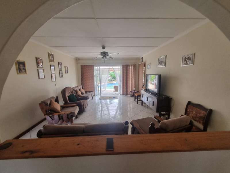 For outdoor enjoyment, the entertainment area is equipped with a built-in braai, perfect for hosting friends and family by the sparkling swimming pool. The meticulously maintained garden provides a safe space for children to play and explore.