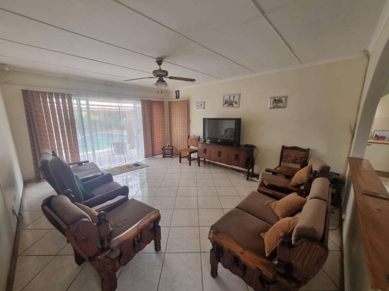 The kitchen is a standout feature, complete with a convenient scullery and ample storage space in the well-designed cupboards. The expansive lounge area creates a welcoming atmosphere, while the adjacent dining area flows seamlessly into the kitchen.