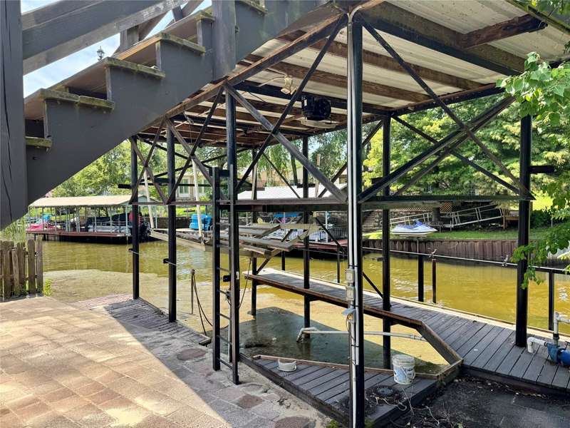 HUGE WATERFRONT LOT! Want waterfront and a large yard, come check this house out! Located on two and half lots, there is plenty of room for lake toys. Relax in the screened in porch, after you fish in one of the great known Croppie spots, right in your new backyard! Roof and fence were replaced in 2018. The original garage was converted into a great open kitchen and dining area with tray ceiling. The kitchen has granite countertops, stainless steel appliances including a double oven, also the home has cedar lined closets and a wall safe, and an outdoor shower. There is an outbuilding that was turned into a bunkhouse with a kitchenette and bathroom, but no value was given due to its condition. There is a large nonattached garage, and a storage shed. The house needs some love but has great potential!