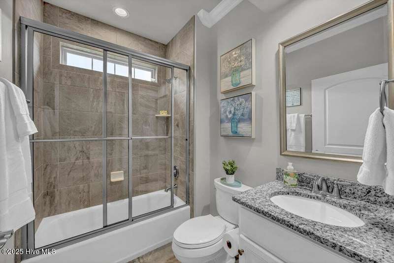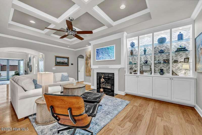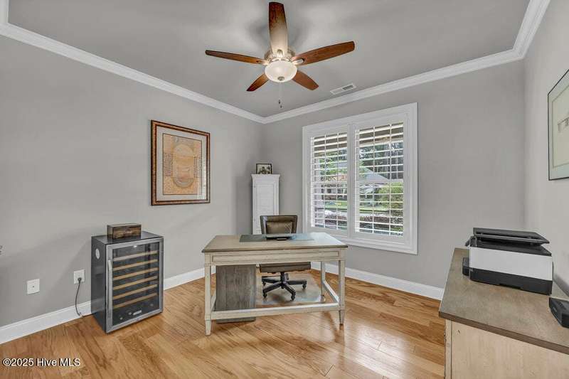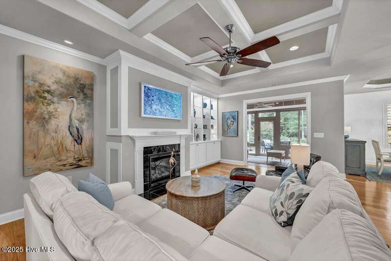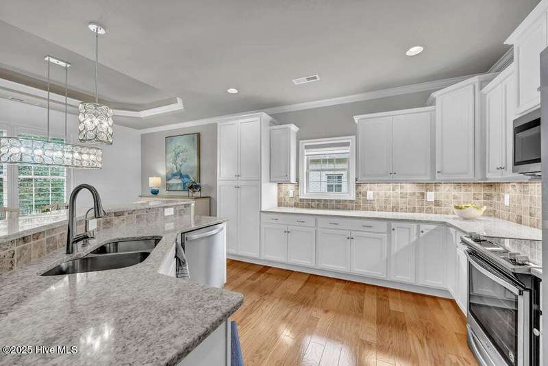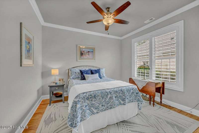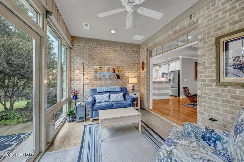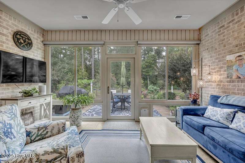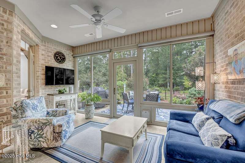 beautiful brick home is nestled on a quiet cul-de-sac street backing to a wooded buffer for privacy galore, this home is filled full of natural light with a casual but elegant open floor plan, Inviting volume foyer, spacious living area accented by gas log fireplace with blower and custom built-in, the kitchen offers an abundance of crisp white cabinetry, soft close drawers with quartz countertops, oversized pantry with roll our shelves, refrigerator remains, formal dining is accented with a coastal shiplap wall and plantation shutters, Your favorite room may be the enclosed heated and cooled Lanai with 3M window tint for energy efficiency and remote electric blinds, Split bedroom plan offers a spacious primary suite with sitting area, master bath has a large walk-in tile shower, double vanities with added shiplap accent above, Wood floors throughout the entire downstairs with exception of tile in baths, two additional downstairs bedrooms share a full bath and can be privately closed off for guest with a pocket door, Laundry room offers custom built in cabinet organizing, washer and dryer remain, Upstairs you will find a bonus room which could be bedroom 4 as it has a full bath with tile shower, two spacious closets with tailored closet storage, walk-in attic with floored storage, Upgrades to include Trane 18 seer XV-18 w/4ton compressor, water softener, laundry sink in garage plus a heated and cooled storage room, osmosis water filter at kitchen sink, front entry storm door, expanded rear patio is perfect for enjoying the outdoors, fenced black aluminum fenced with lower puppy railing, What's not to love when you can move right in and sit your bags down and start enjoying the carefree coastal lifestyle