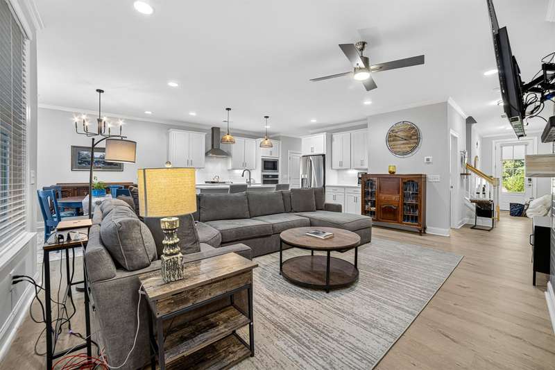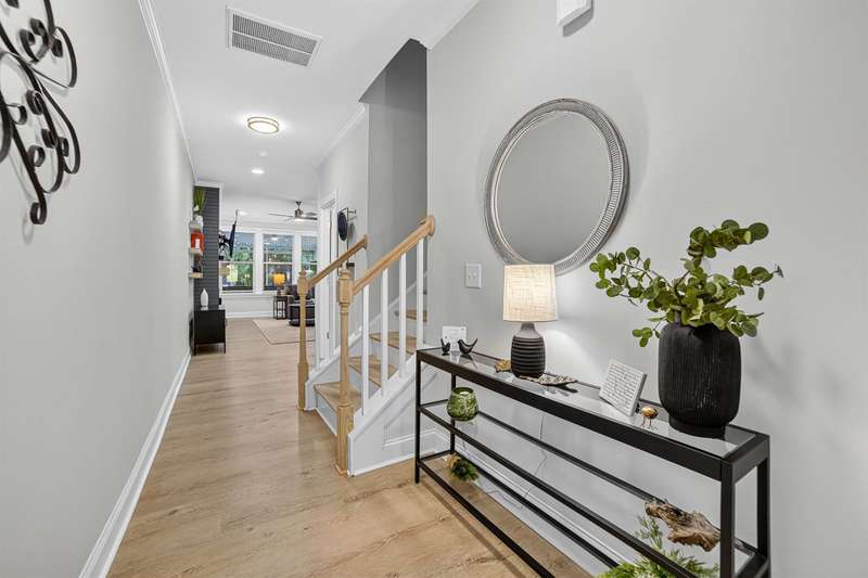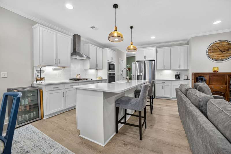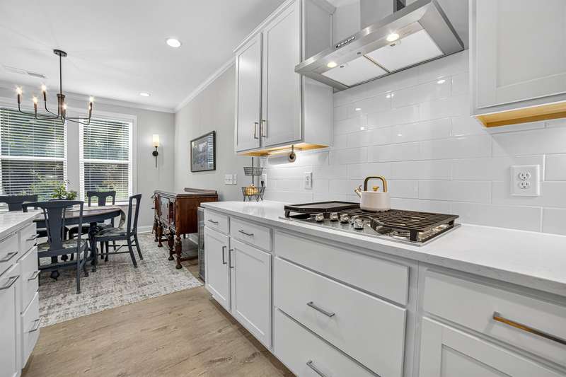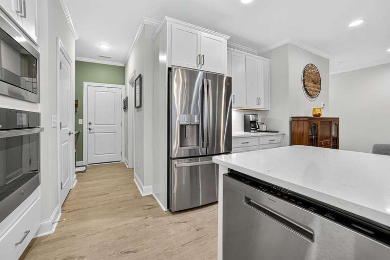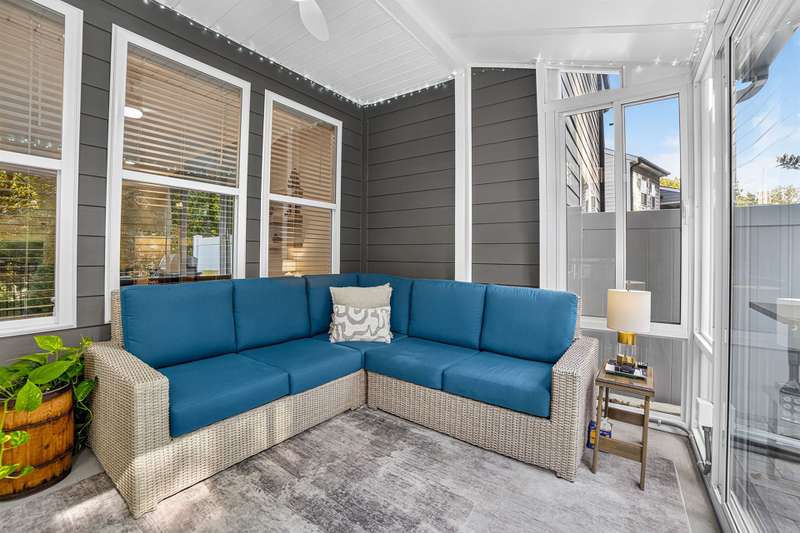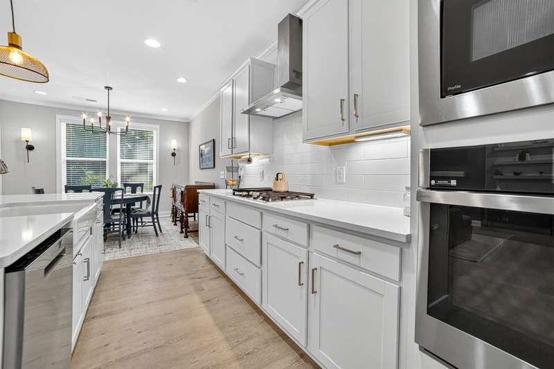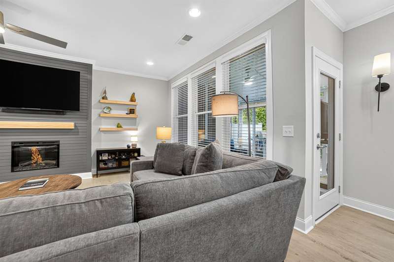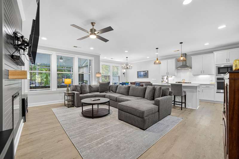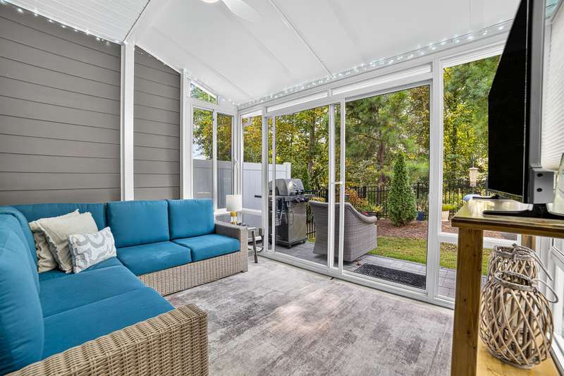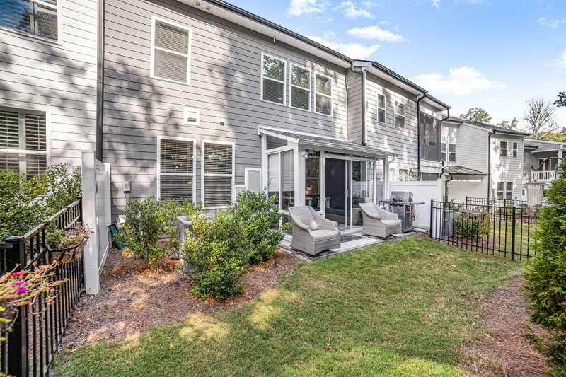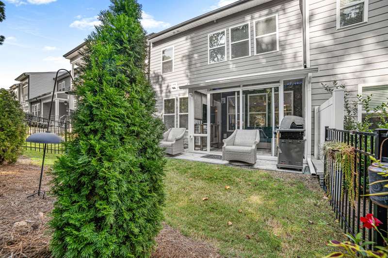 Practically new townhome with stylish upgrades and a private, tree lined setting! The main level features an open floor plan with a beautifully enhanced great room showcasing a custom electric fireplace with shiplap and mantle. The gourmet kitchen offers quartz countertops, sleek white cabinetry, under-cabinet lighting, high-end appliances, and a spacious island, flowing seamlessly to the newly added glass-enclosed rear porch, an inviting extension of the living space. Upstairs includes a spacious primary suite, two additional bedrooms, a versatile loft perfect for a second entertaining area, and laundry with a custom barn door. Outside, enjoy a low-maintenance backyard that backs to mature trees, providing year-round privacy and plenty of room for gardening, grilling, or play. Ideally located just 2.2 miles (6 minutes) to Lake Norman and minutes to the Cain Center for the Arts, shopping, dining, schools, and interstate access, this home blends comfort, convenience, and modern living in one of the area's most desirable settings!