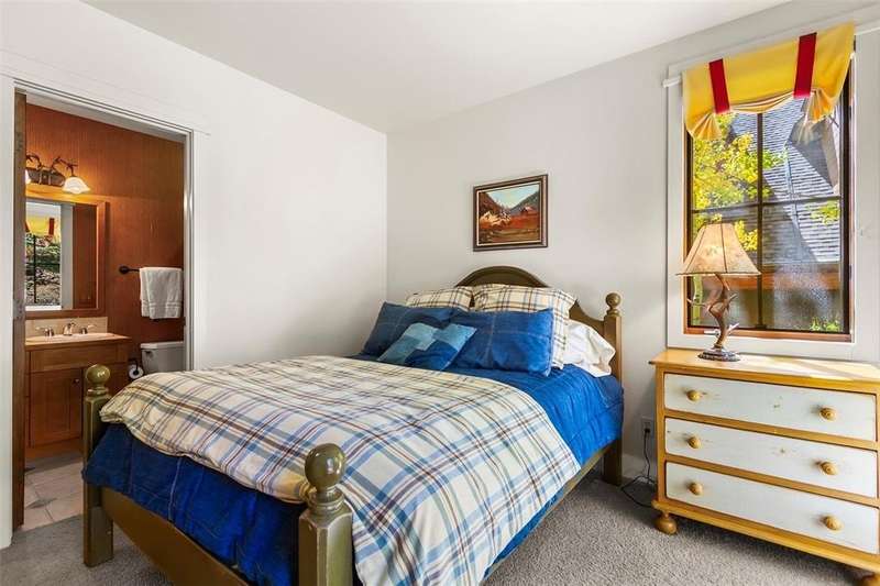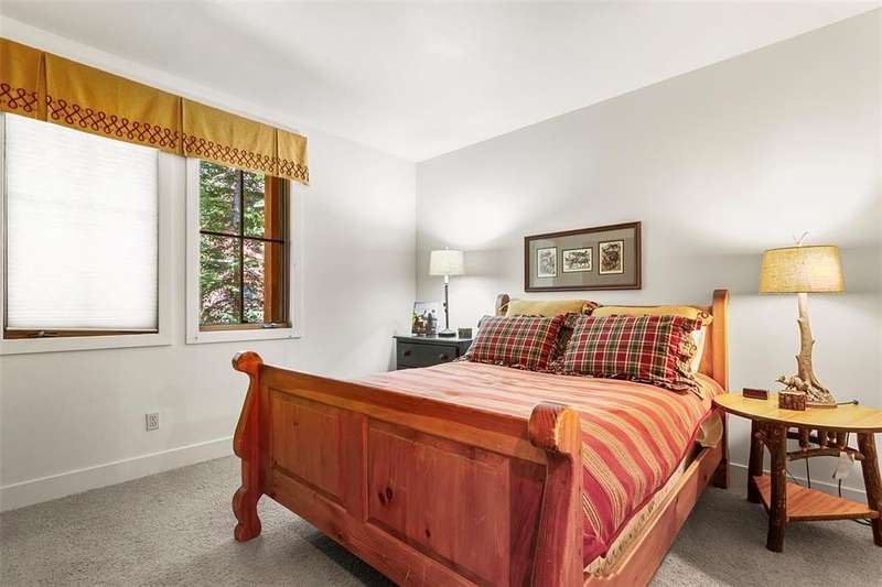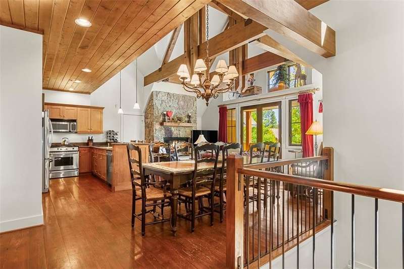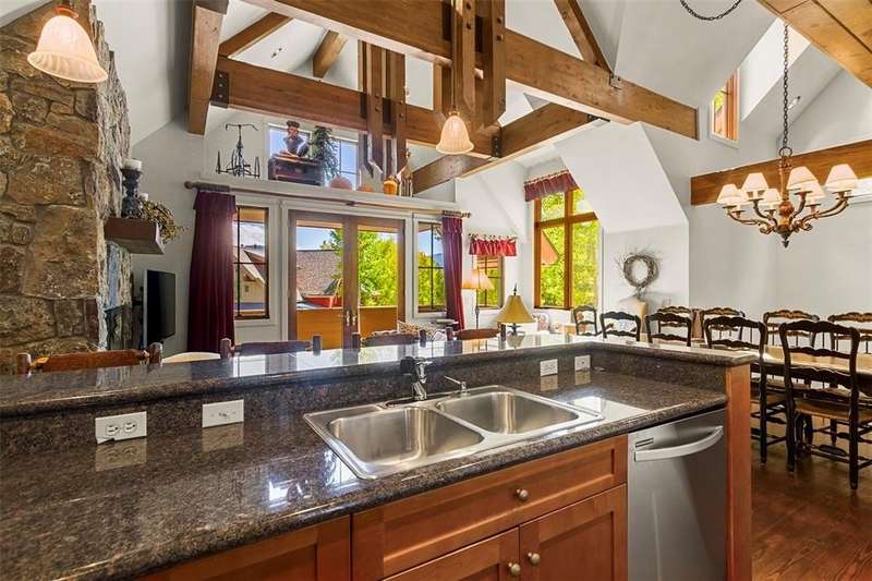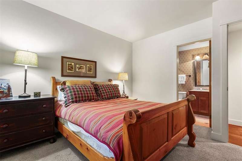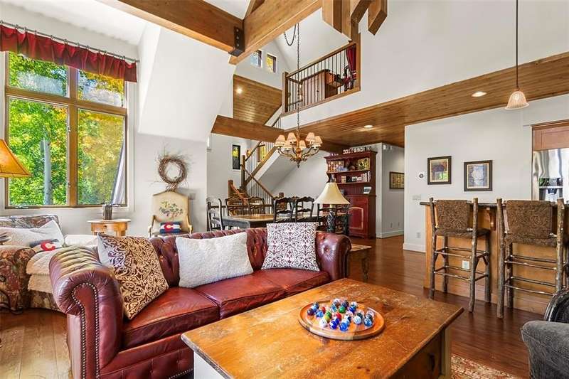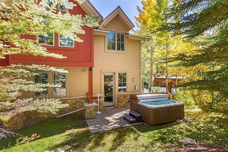 Extremely rare opportunity to own a 4 bedroom, 5 bathroom unit in Zone 1 in Breckenridge. This beautiful neighborhood offers one of the best locations in town. Easy walk to downtown and only steps from ski in, ski out access via the Snowflake ski trail. With only 10 units, this subdivision feels quiet and luxurious. This townhome offers the perfect floor plan for gathering and entertaining. All 4 bedrooms have en-suite baths. The vaulted, beamed ceilings, stone fireplace, and wood floors, give this unit that true mountain feel. Expansive windows allow for an abundance of natural light and views of Baldy. Other features include a private hot tub and 2 car garage. Huge rental potential!