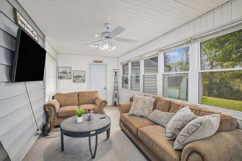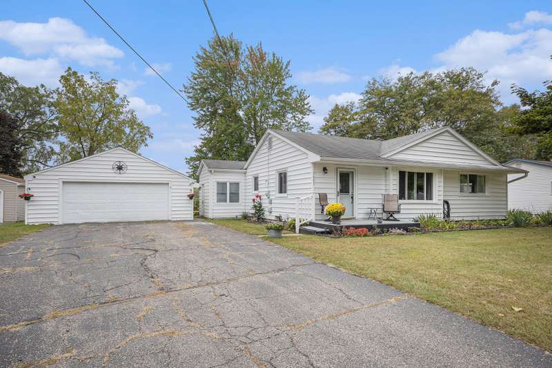 Open House 1 to 3, Sunday, Sept 28th. This charming 3Bd/1Ba ranch home with a 2 car detached garage and spacious yard is move-in ready with lovely upgrades! Beautiful hardwood floors throughout. Stunning Shiplap in the living room. The lovely bathroom has been updated with a new vanity and lighting. The beautiful three seasons room overlooks acres of undeveloped land. Roll out the awning for shade or have a bonfire by the cozy firepit. Extra Storage in your 10x16 Shed! Paved driveway! Enjoy the Composite Deck Front Porch w/Vinyl Railings. The full basement is ready for your finishing touches. Take advantage of the short drive to the Arbor Hills Golf Club right next door. Close to M60-I94-127 for an easy commute!