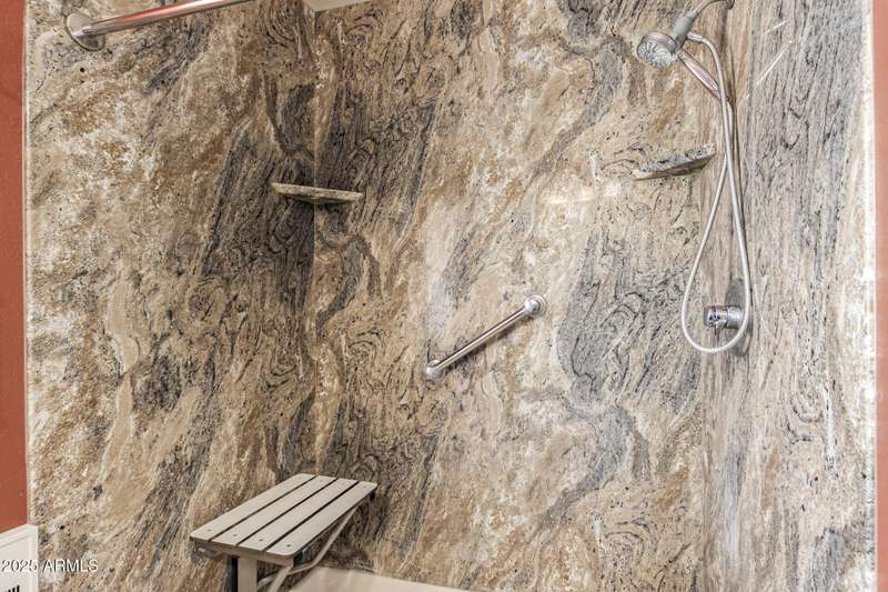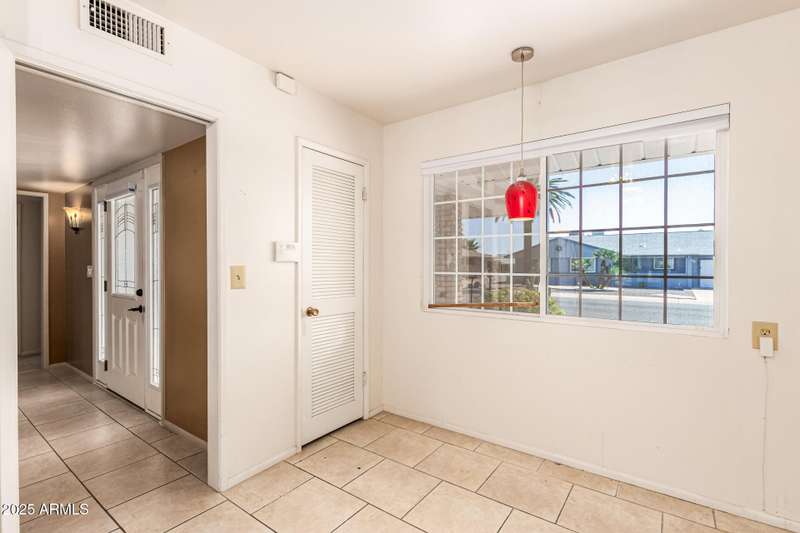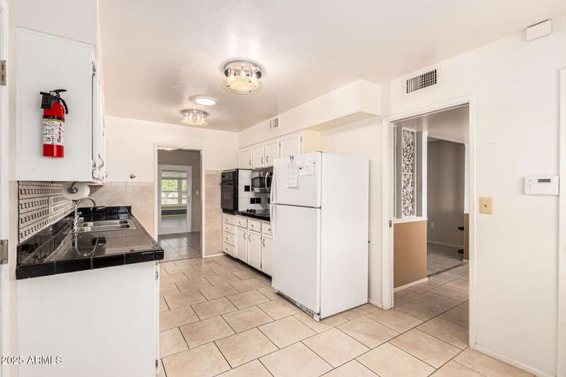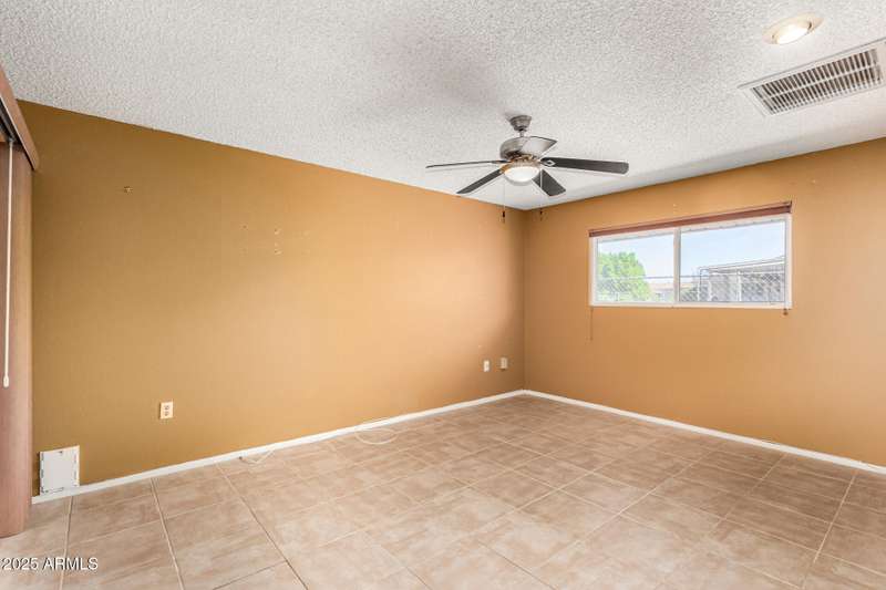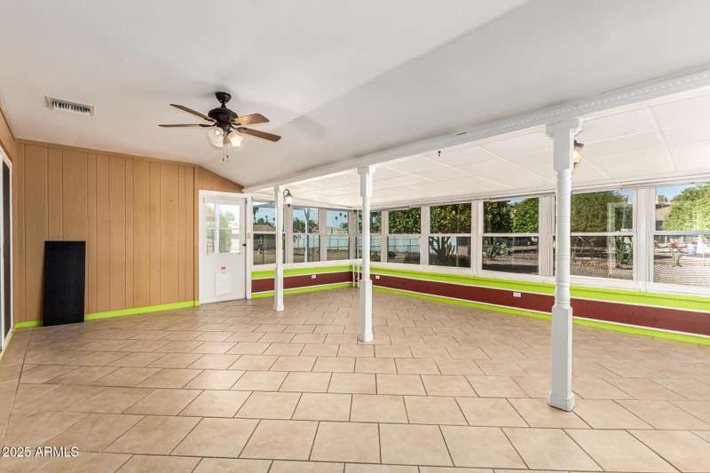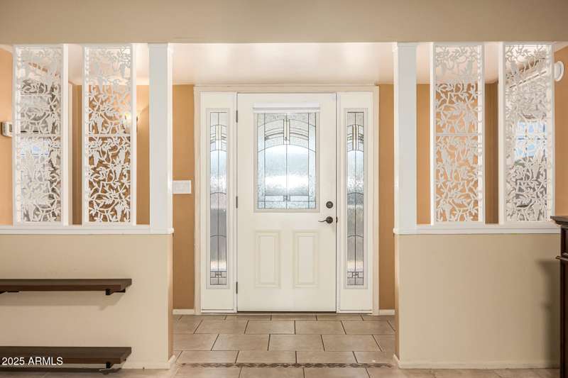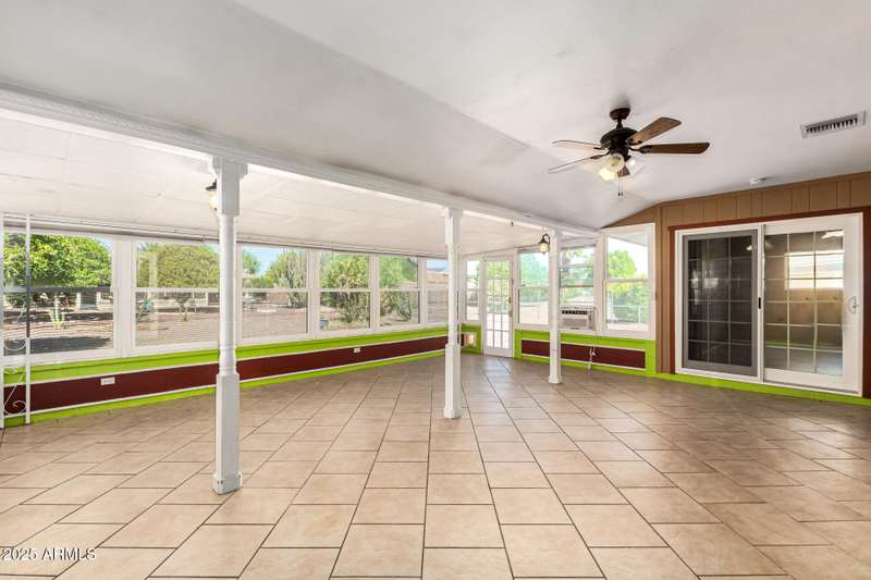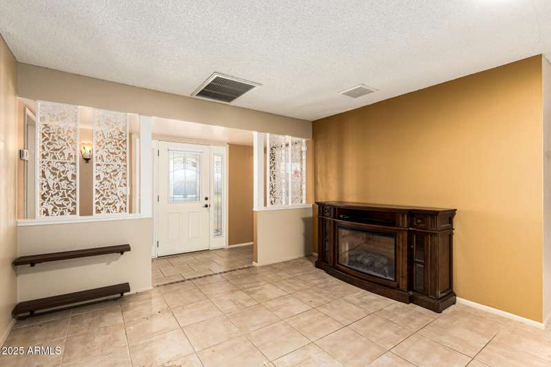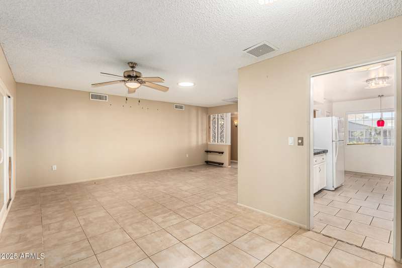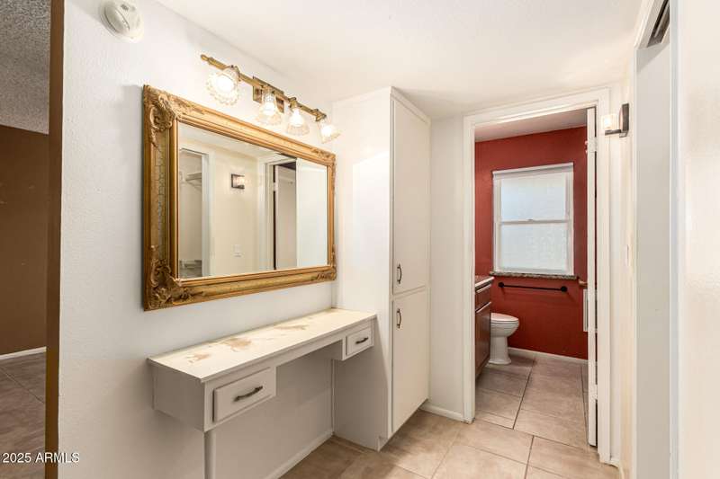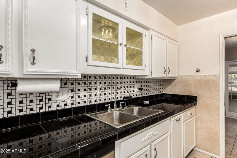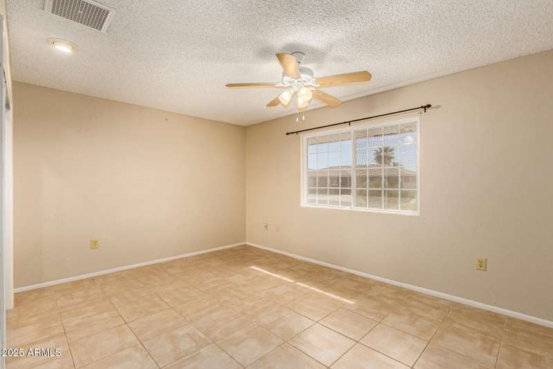 Experience vibrant adult living in Sun City! This lovely 2-bedroom, 2-bath home welcomes you with a 2-car garage, a low-maintenance desert landscape, and an inviting front patio. Inside, you'll find a serene living room with a warm palette, tile flooring, and built-in shelves. The kitchen comes with tile counters and backsplash, built-in appliances, and a handy pantry. The main bedroom features convenient patio access, a make-up vanity, a private bathroom, and a walk-in closet. You'll also find a spacious sunroom, the perfect spot for enjoying the warm Arizona weather year-round. The large laundry room also provides space for extra storage. Venture out onto the sizeable backyard, complete with an open patio and a couple of citrus trees that add Mediterranean charm. Make this yours now!